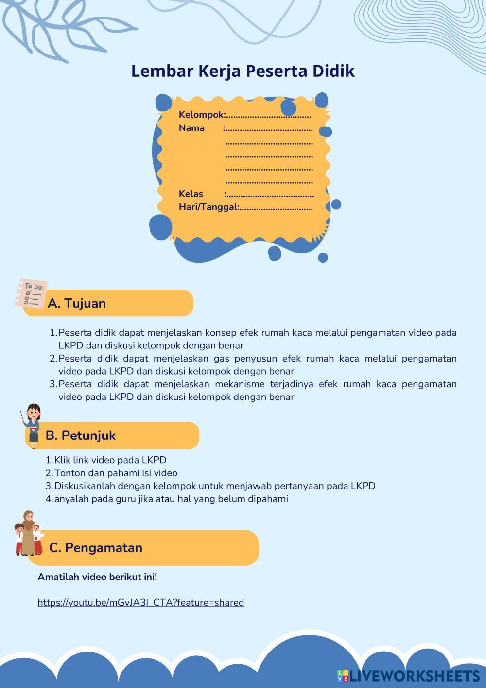 Created bySilvy Enjellina Fisika Efek Rumah Kaca Age 12+ level: 4 Indonesian Author's Instructions My Google Classroom Courses × 0 classes selected (0 students total) Quick Access Select all classes (0 classes) All Classes Loading courses... Cancel Share Share to selected Course __COURSE_NAME__ __STUDENT_NAME__ (__STUDENT_EMAIL__) LKPD EFEK RUMAH KACA Download Worksheet Validation Check my answers Emails my answers to my teacher Full name Group/level School subject Teacher's email or key code Close Submit Validating worksheet... (12) Your answers have been sent to your teacher. Good luck! OK We encountered an error submitting your answers. Please try again. OK Advertisement | Go Ad Free Created bySilvy Enjellina Fisika Efek Rumah Kaca Age 12+ level: 4 Indonesian Author's Instructions