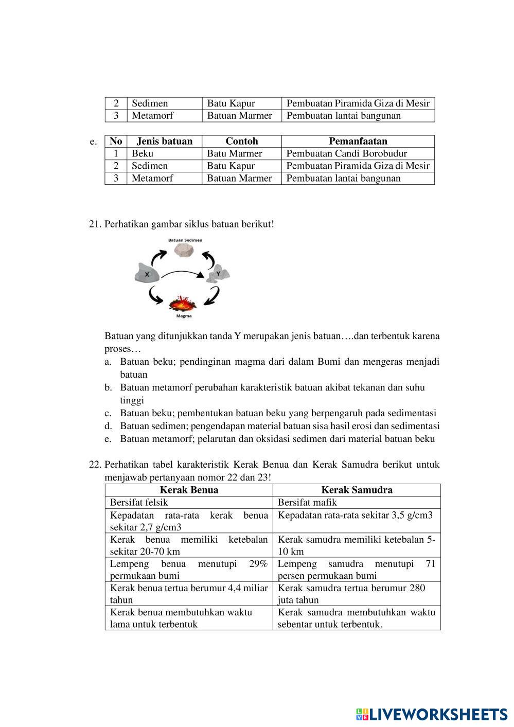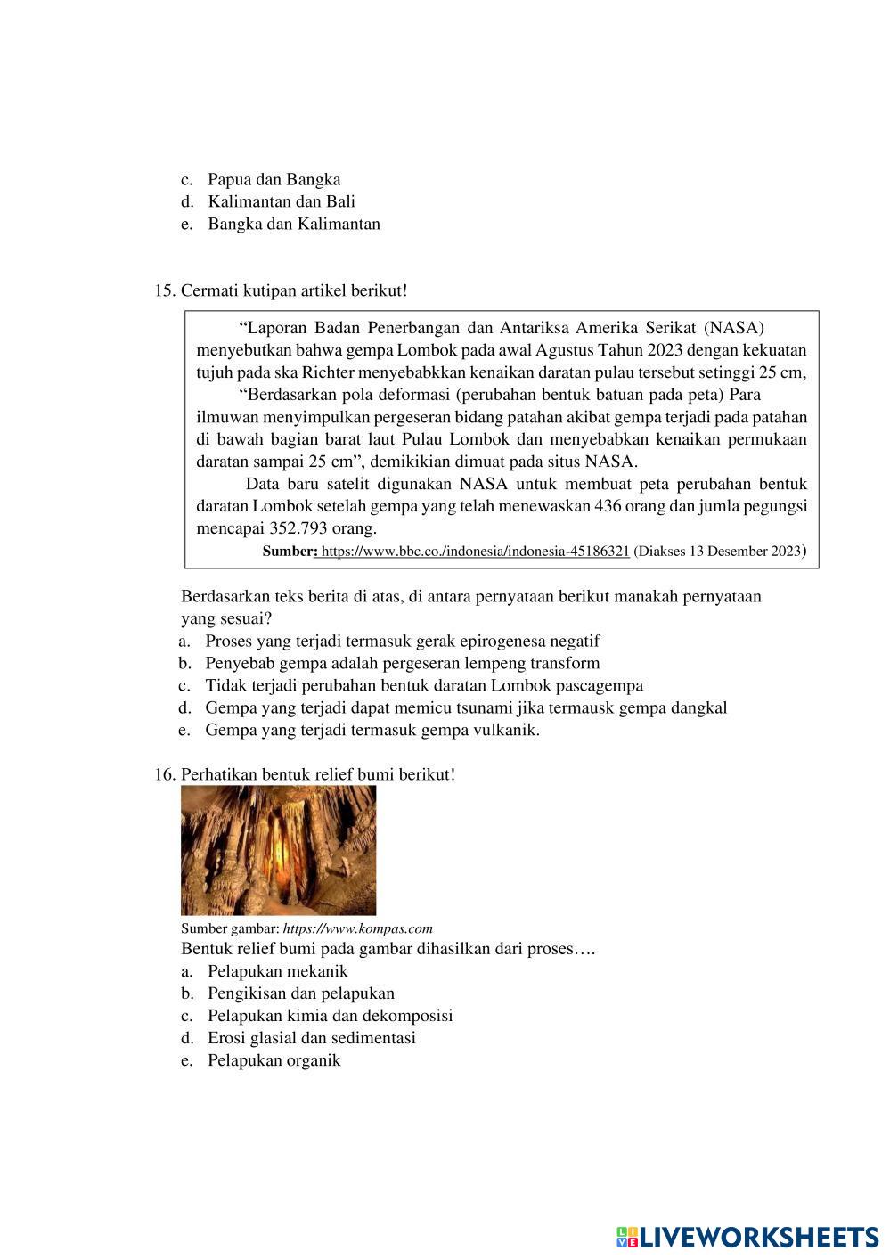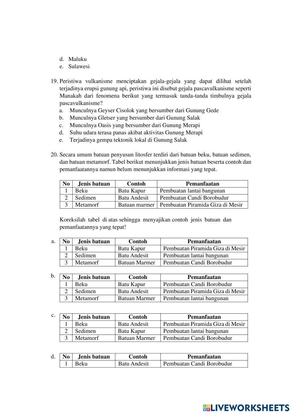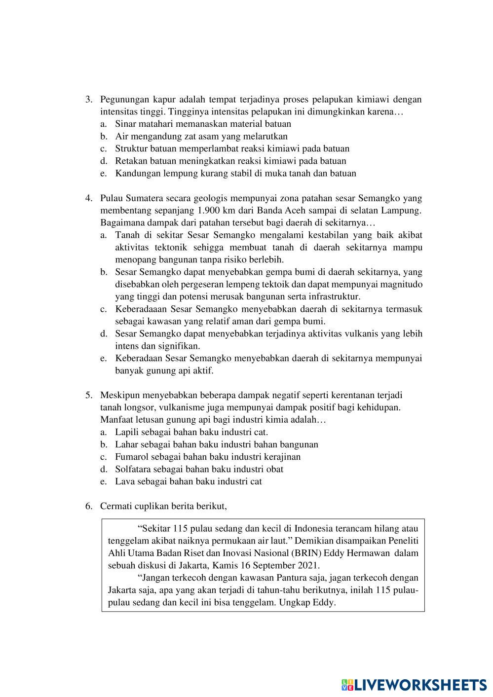 SOAL UJI COBA MATERI FENOMENA LITOSFER