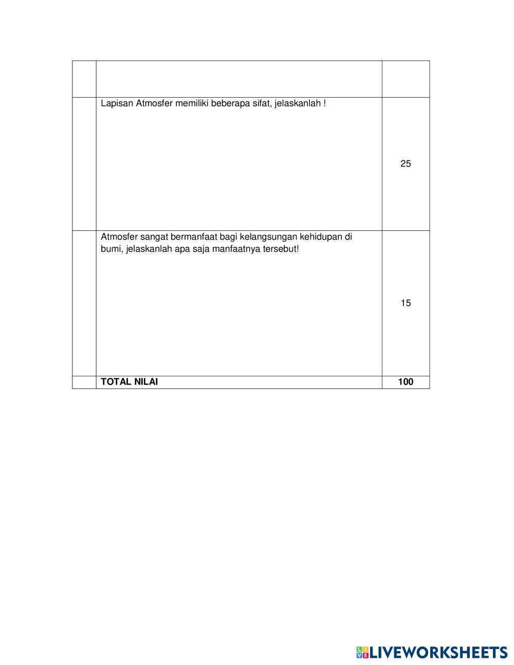 Created byRosmadina Geografi fase E ATMOSFER Age 14-18 level: Kls X Fase E Indonesian Author's Instructions My Google Classroom Courses × 0 classes selected (0 students total) Quick Access Select all classes (0 classes) All Classes Loading courses... Cancel Share Share to selected Course __COURSE_NAME__ __STUDENT_NAME__ (__STUDENT_EMAIL__) LKPD 1 Atmosfer Download Worksheet Validation Check my answers Emails my answers to my teacher Full name Group/level School subject Teacher's email or key code Close Submit Validating worksheet... (12) Your answers have been sent to your teacher. Good luck! OK We encountered an error submitting your answers. Please try again. OK Advertisement | Go Ad Free Created byRosmadina Geografi fase E ATMOSFER Age 14-18 level: Kls X Fase E Indonesian Author's Instructions