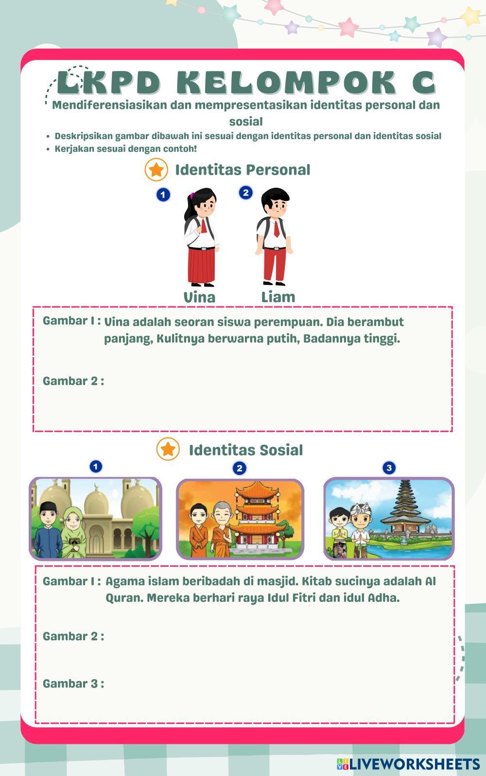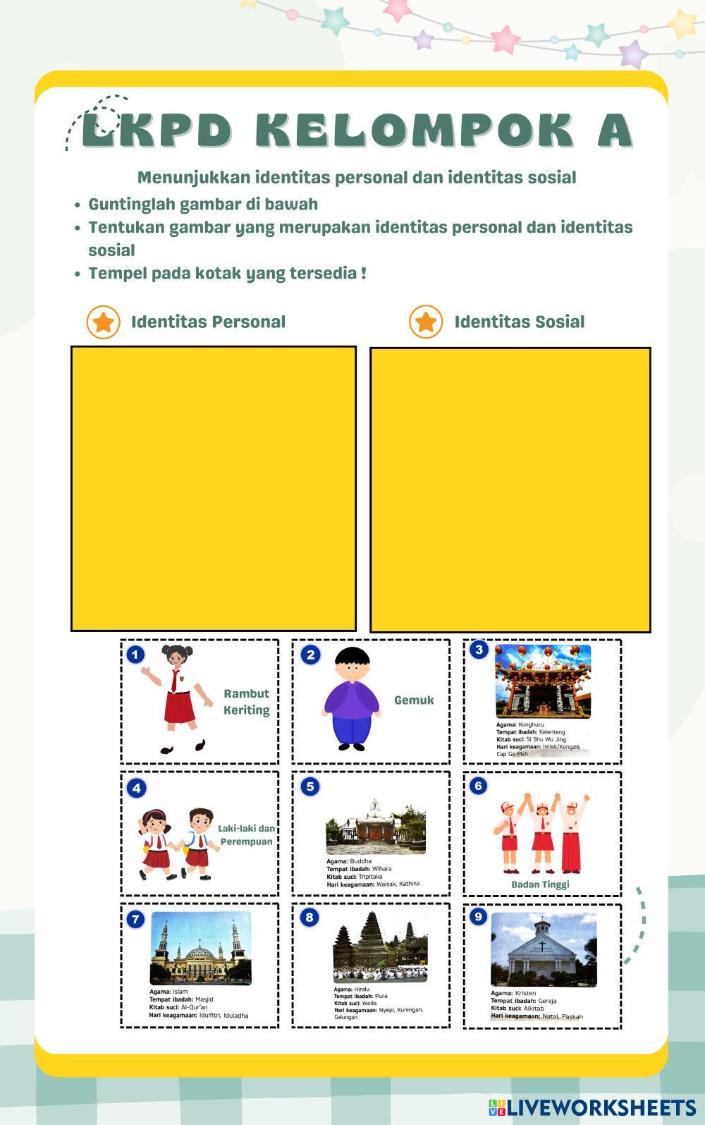 Created byFarikha Nurul Khofifah Identitas diri Identitas personal dan identitas sosial Age 7-12 level: 2 Indonesian Author's Instructions My Google Classroom Courses × 0 classes selected (0 students total) Quick Access Select all classes (0 classes) All Classes Loading courses... Cancel Share Share to selected Course __COURSE_NAME__ __STUDENT_NAME__ (__STUDENT_EMAIL__) pendidikan pancasila Download Worksheet Validation Check my answers Emails my answers to my teacher Full name Group/level School subject Teacher's email or key code Close Submit Validating worksheet... (12) Your answers have been sent to your teacher. Good luck! OK We encountered an error submitting your answers. Please try again. OK Advertisement | Go Ad Free Created byFarikha Nurul Khofifah Identitas diri Identitas personal dan identitas sosial Age 7-12 level: 2 Indonesian Author's Instructions
