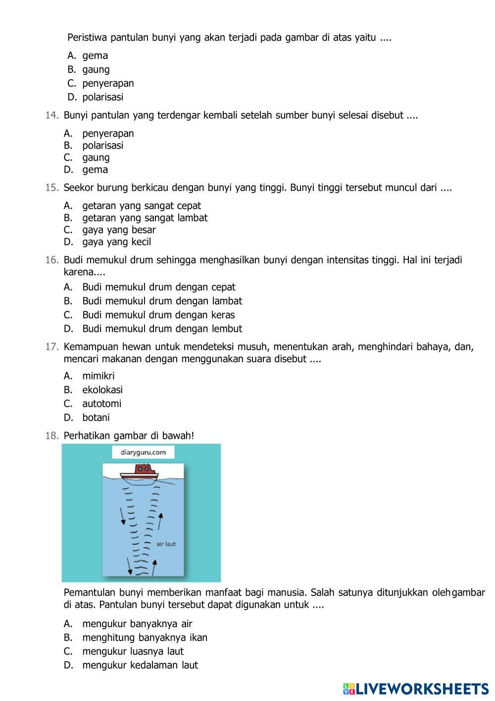 Created byMOCHALLE Ilmu Pengetahuan Alam dan Sosial (IPAS) BUNYI DAN SIFATNYA Age 10-8 level: 5 Indonesian Author's Instructions My Google Classroom Courses × 0 classes selected (0 students total) Quick Access Select all classes (0 classes) All Classes Loading courses... Cancel Share Share to selected Course __COURSE_NAME__ __STUDENT_NAME__ (__STUDENT_EMAIL__) ASESMEN IPAS Download Worksheet Validation Check my answers Emails my answers to my teacher Full name Group/level School subject Teacher's email or key code Close Submit Validating worksheet... (12) Your answers have been sent to your teacher. Good luck! OK We encountered an error submitting your answers. Please try again. OK Advertisement | Go Ad Free Created byMOCHALLE Ilmu Pengetahuan Alam dan Sosial (IPAS) BUNYI DAN SIFATNYA Age 10-8 level: 5 Indonesian Author's Instructions