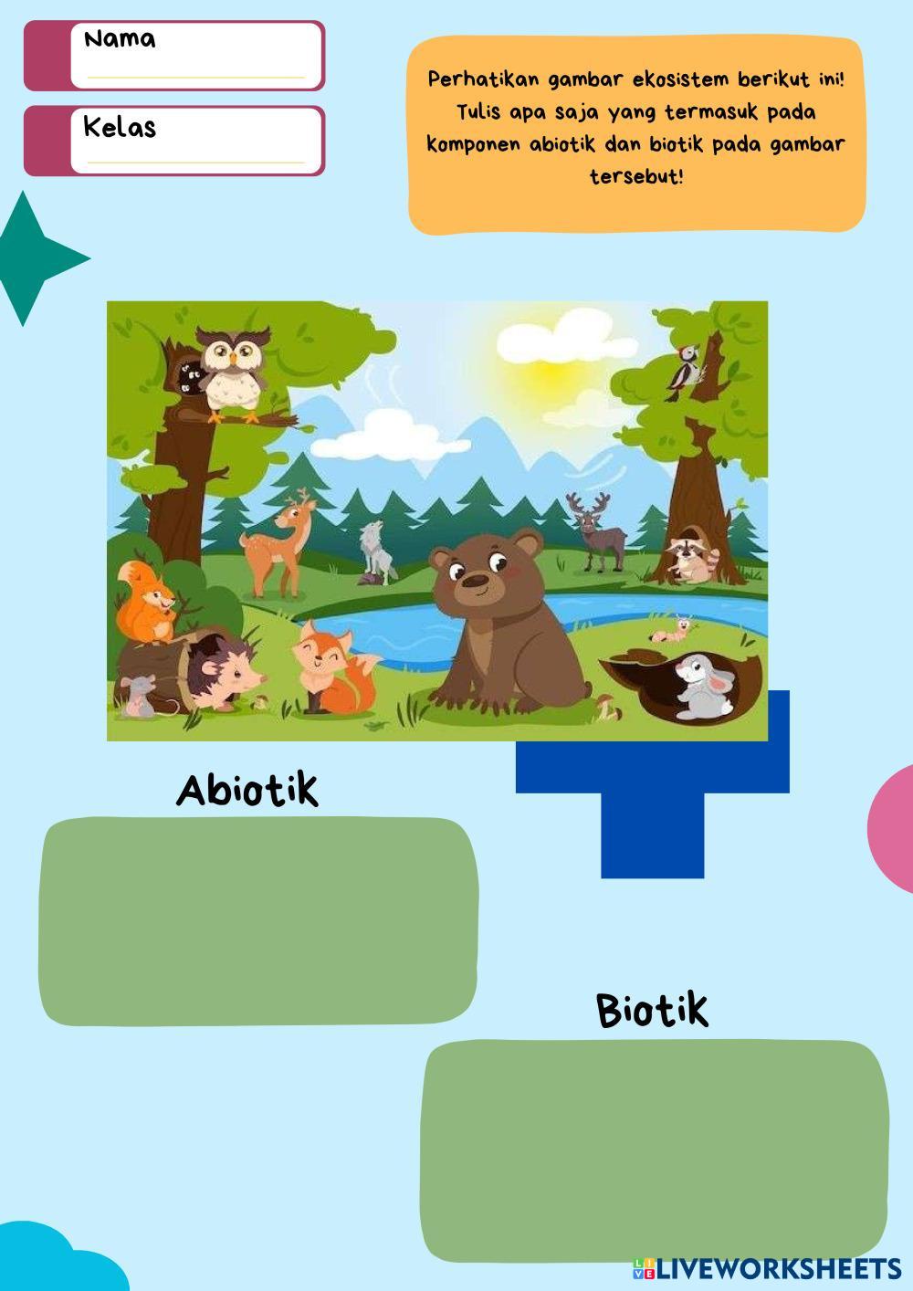 Ekosistem adalah sebuah sistem ekologi yang dibentuk dari hubungan timbal balik antara makhluk hidup dengan lingkungannya. terdapat 2 komponen dalam ekosistem berupa komponen abiotik dan komponen biotik. komponen biotik memiliki perannya berupa produsen, konsumen, dan pengurai. berdasarkan penyusunnya komponen biotik dibedakan menjadi individu, populasi, dan komunitas.