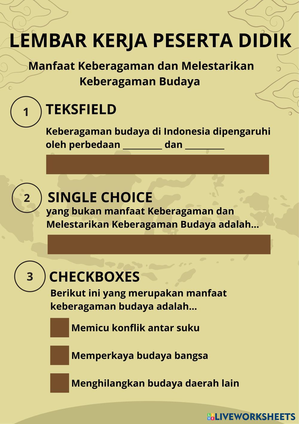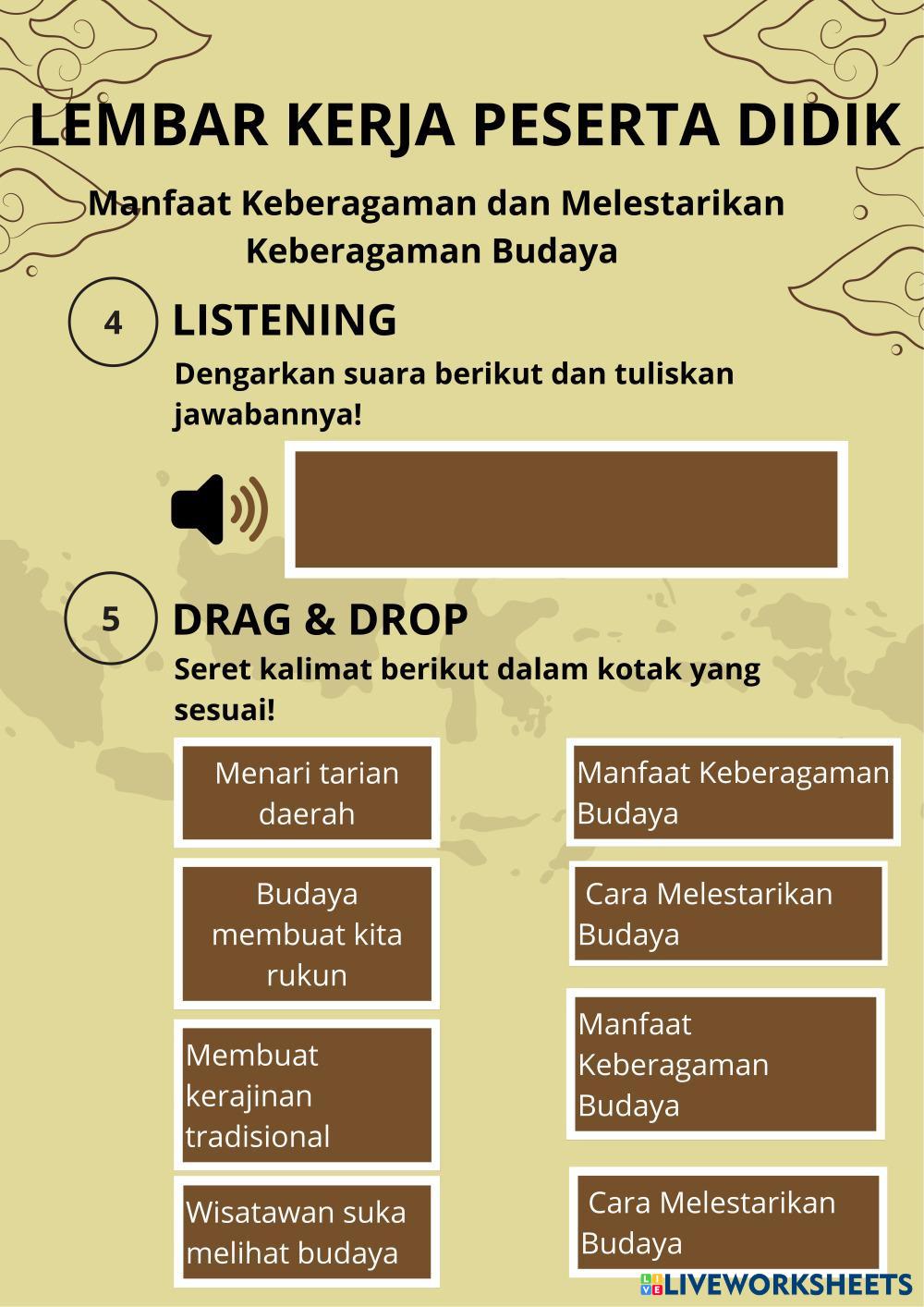 Created byHilda Eka Putri Ilmu Pengetahuan Alam dan Sosial (IPAS) Ilmu Pengetahuan Alam dan Sosial (IPAS) Age 9-13 level: 4 Indonesian Author's Instructions My Google Classroom Courses × 0 classes selected (0 students total) Quick Access Select all classes (0 classes) All Classes Loading courses... Cancel Share Share to selected Course __COURSE_NAME__ __STUDENT_NAME__ (__STUDENT_EMAIL__) Lembar Kerja Peserta Didik Download Worksheet Validation Check my answers Emails my answers to my teacher Full name Group/level School subject Teacher's email or key code Close Submit Validating worksheet... (12) Your answers have been sent to your teacher. Good luck! OK We encountered an error submitting your answers. Please try again. OK Advertisement | Go Ad Free Created byHilda Eka Putri Ilmu Pengetahuan Alam dan Sosial (IPAS) Ilmu Pengetahuan Alam dan Sosial (IPAS) Age 9-13 level: 4 Indonesian Author's Instructions