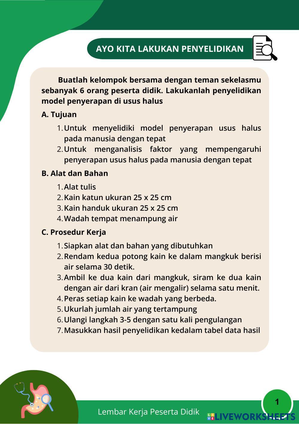 LKPD ini berisi tentang bagaimana model penyerapan di usus halus