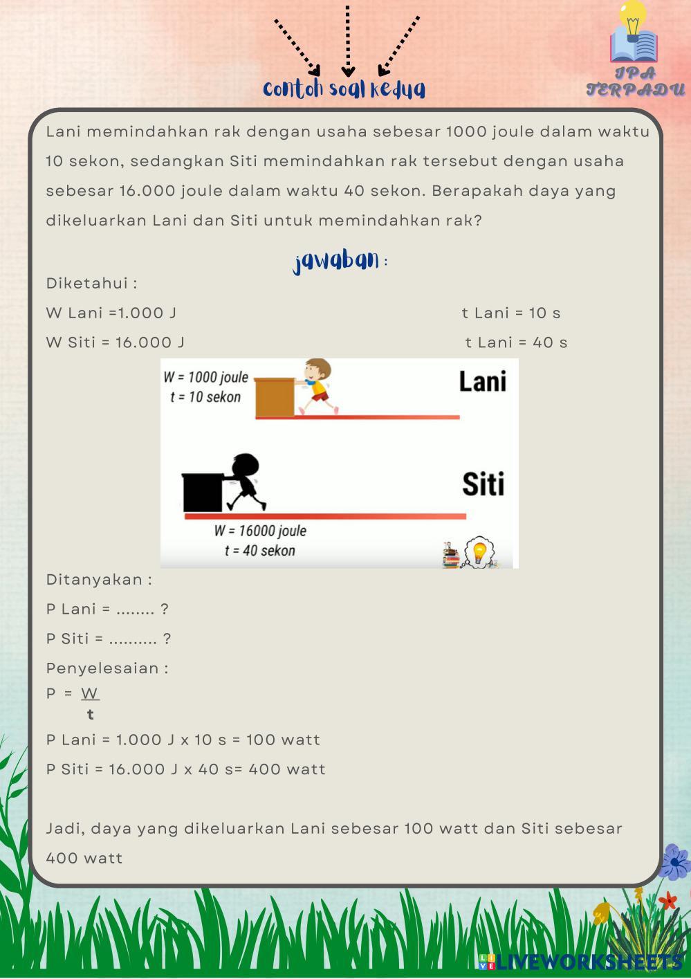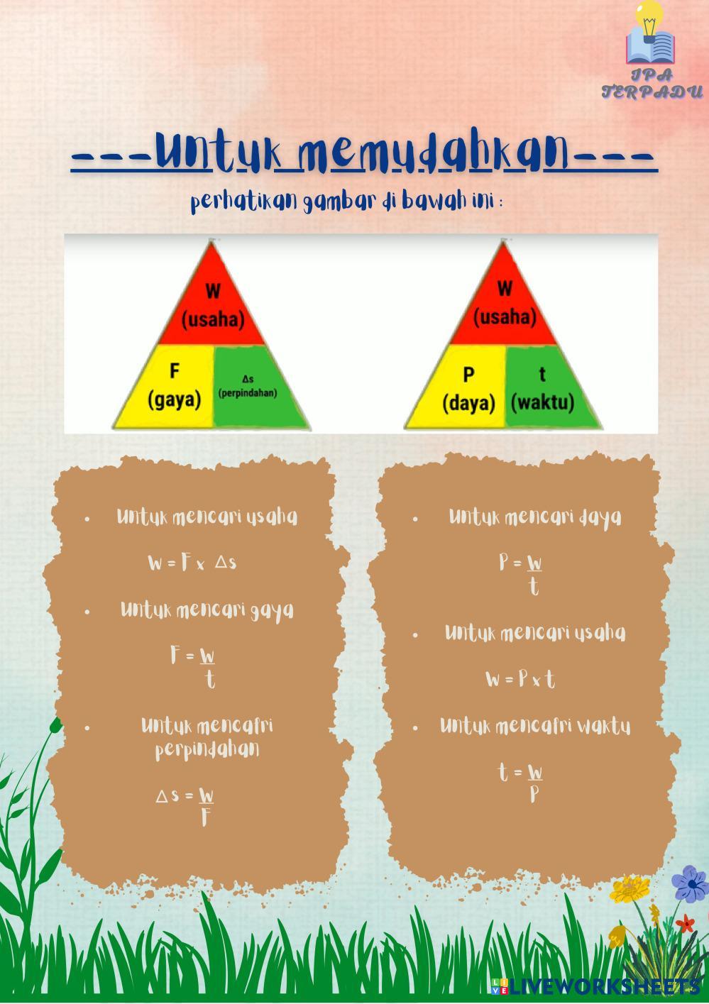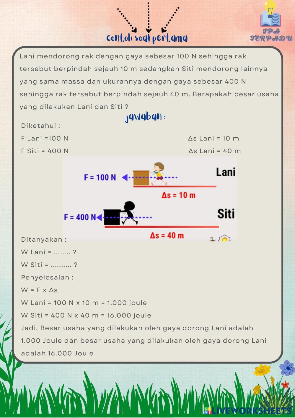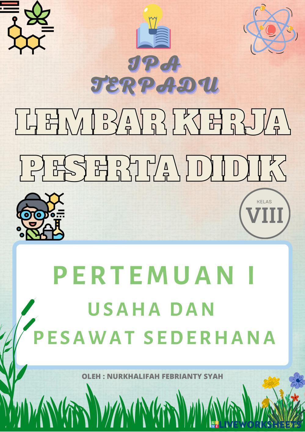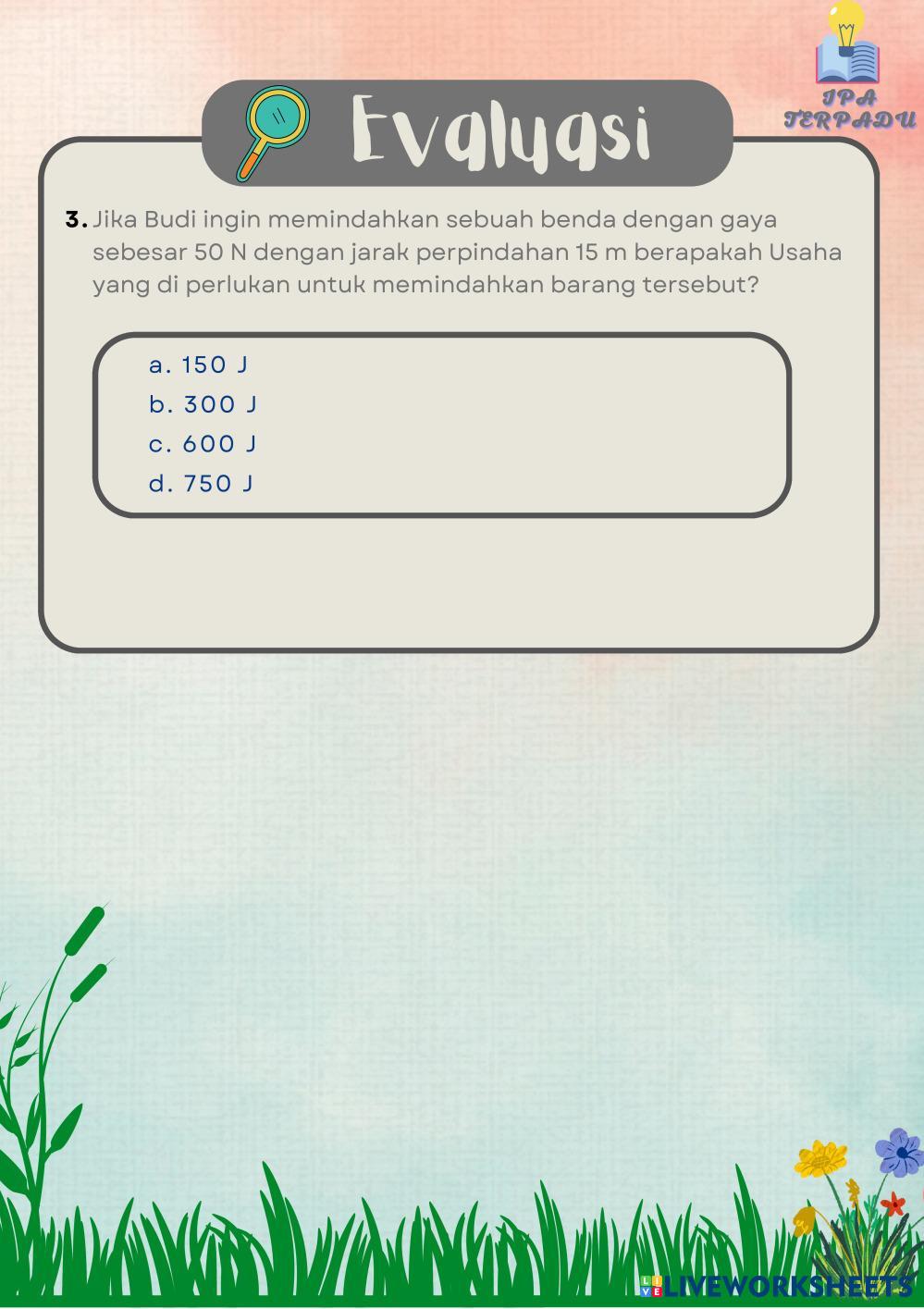 Created byNurkhalifah Febrianty Syah Ilmu Pengetahuan Alam (IPA) Usaha dan pesawat sederhana Age 11+ level: 3 Indonesian Author's Instructions My Google Classroom Courses × 0 classes selected (0 students total) Quick Access Select all classes (0 classes) All Classes Loading courses... Cancel Share Share to selected Course __COURSE_NAME__ __STUDENT_NAME__ (__STUDENT_EMAIL__) LKPD USAHA DAN PESAWAT SEDERHANA - PERTEMUAN 1 Download Worksheet Validation Check my answers Emails my answers to my teacher Full name Group/level School subject Teacher's email or key code Close Submit Validating worksheet... (12) Your answers have been sent to your teacher. Good luck! OK We encountered an error submitting your answers. Please try again. OK Advertisement | Go Ad Free Created byNurkhalifah Febrianty Syah Ilmu Pengetahuan Alam (IPA) Usaha dan pesawat sederhana Age 11+ level: 3 Indonesian Author's Instructions