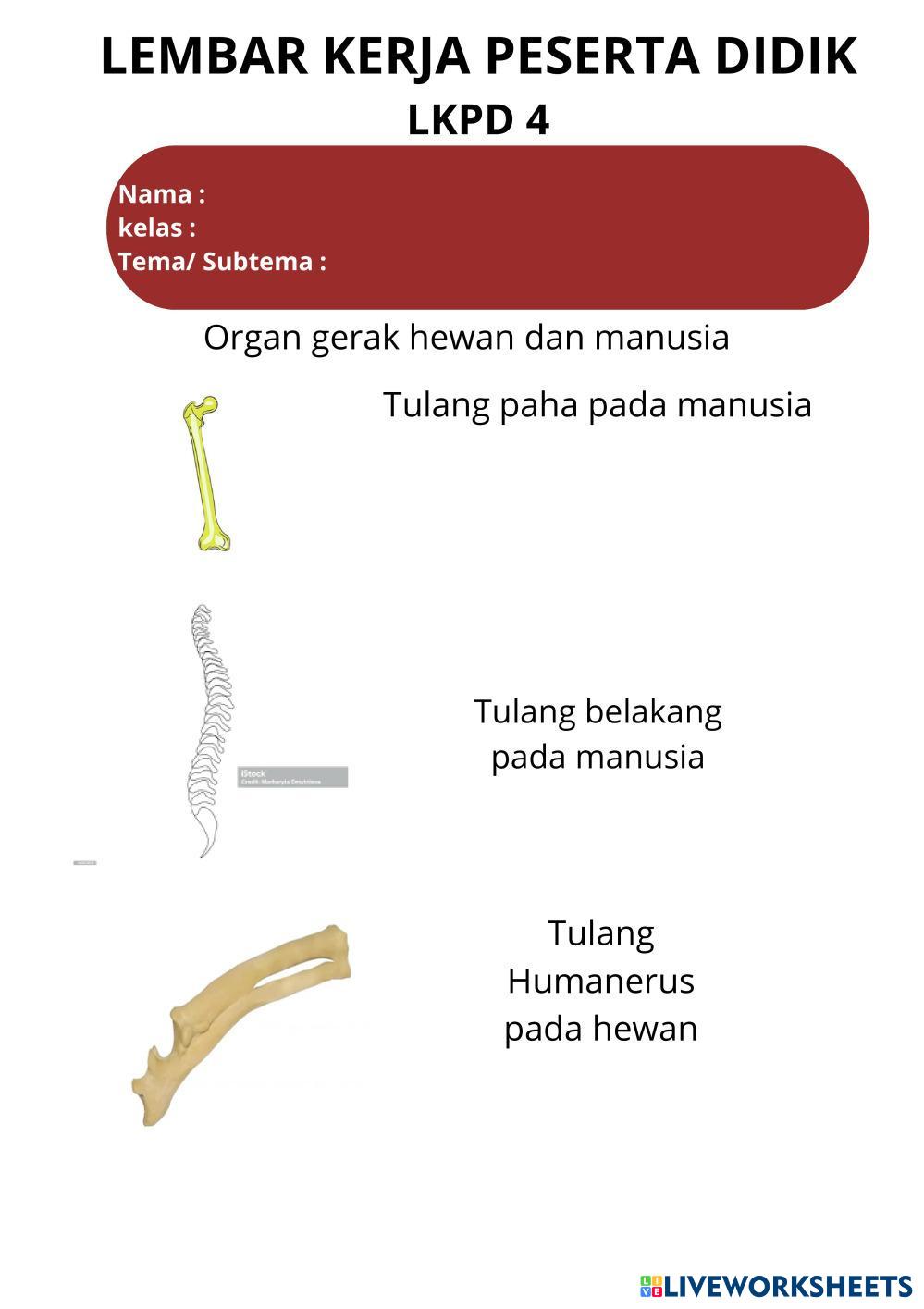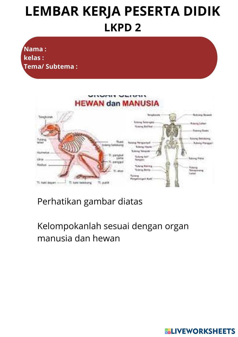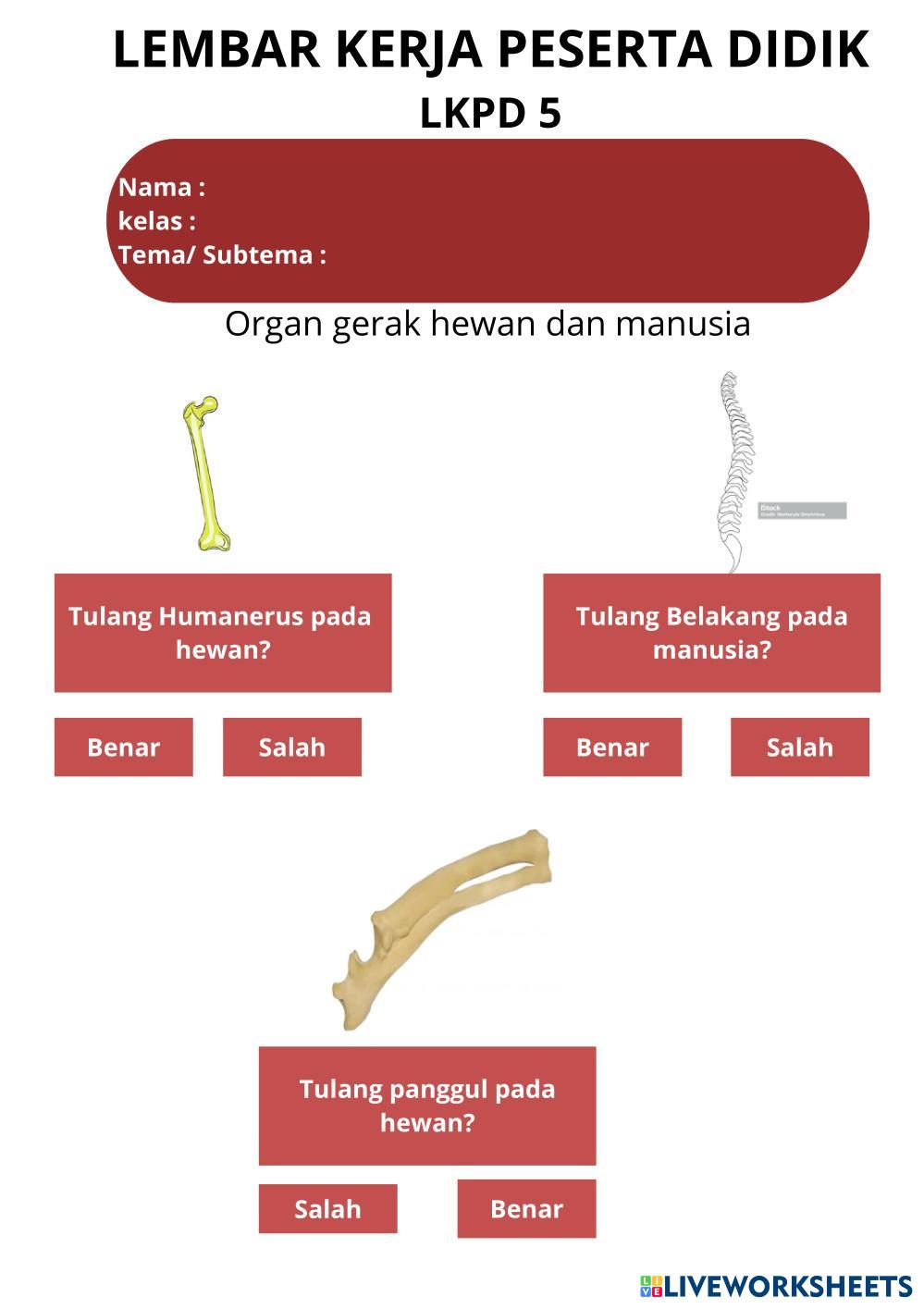 Created byPratiwi Podungge Ilmu Pengetahuan Alam (IPA) Organ Gerak Hewan dan Manusia Age 11-15 level: 5 Indonesian Author's Instructions My Google Classroom Courses × 0 classes selected (0 students total) Quick Access Select all classes (0 classes) All Classes Loading courses... Cancel Share Share to selected Course __COURSE_NAME__ __STUDENT_NAME__ (__STUDENT_EMAIL__) Organ gerak manusia dan hewan Download Worksheet Validation Check my answers Emails my answers to my teacher Full name Group/level School subject Teacher's email or key code Close Submit Validating worksheet... (12) Your answers have been sent to your teacher. Good luck! OK We encountered an error submitting your answers. Please try again. OK Advertisement | Go Ad Free Created byPratiwi Podungge Ilmu Pengetahuan Alam (IPA) Organ Gerak Hewan dan Manusia Age 11-15 level: 5 Indonesian Author's Instructions