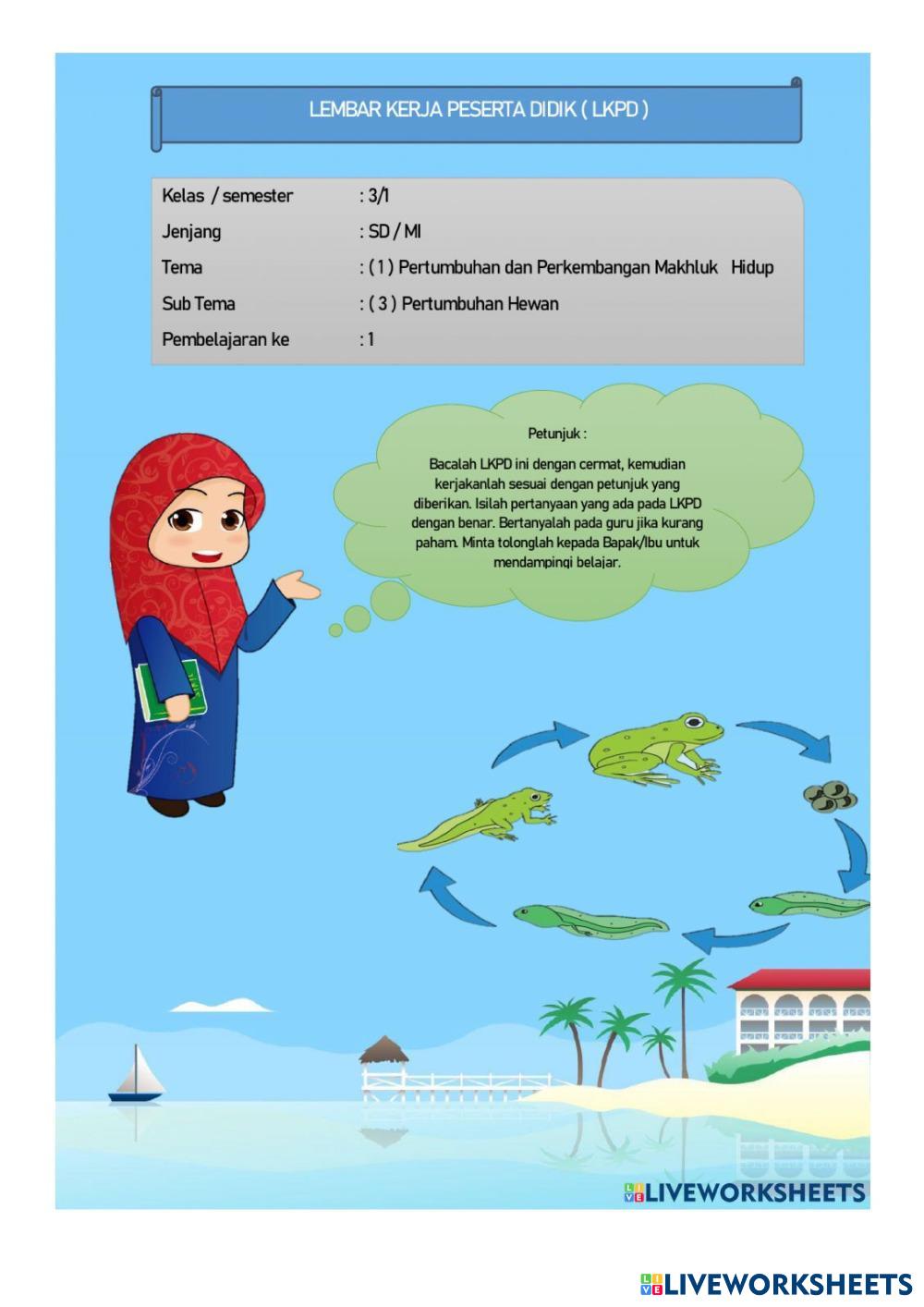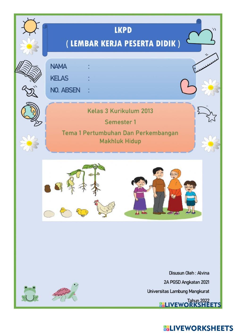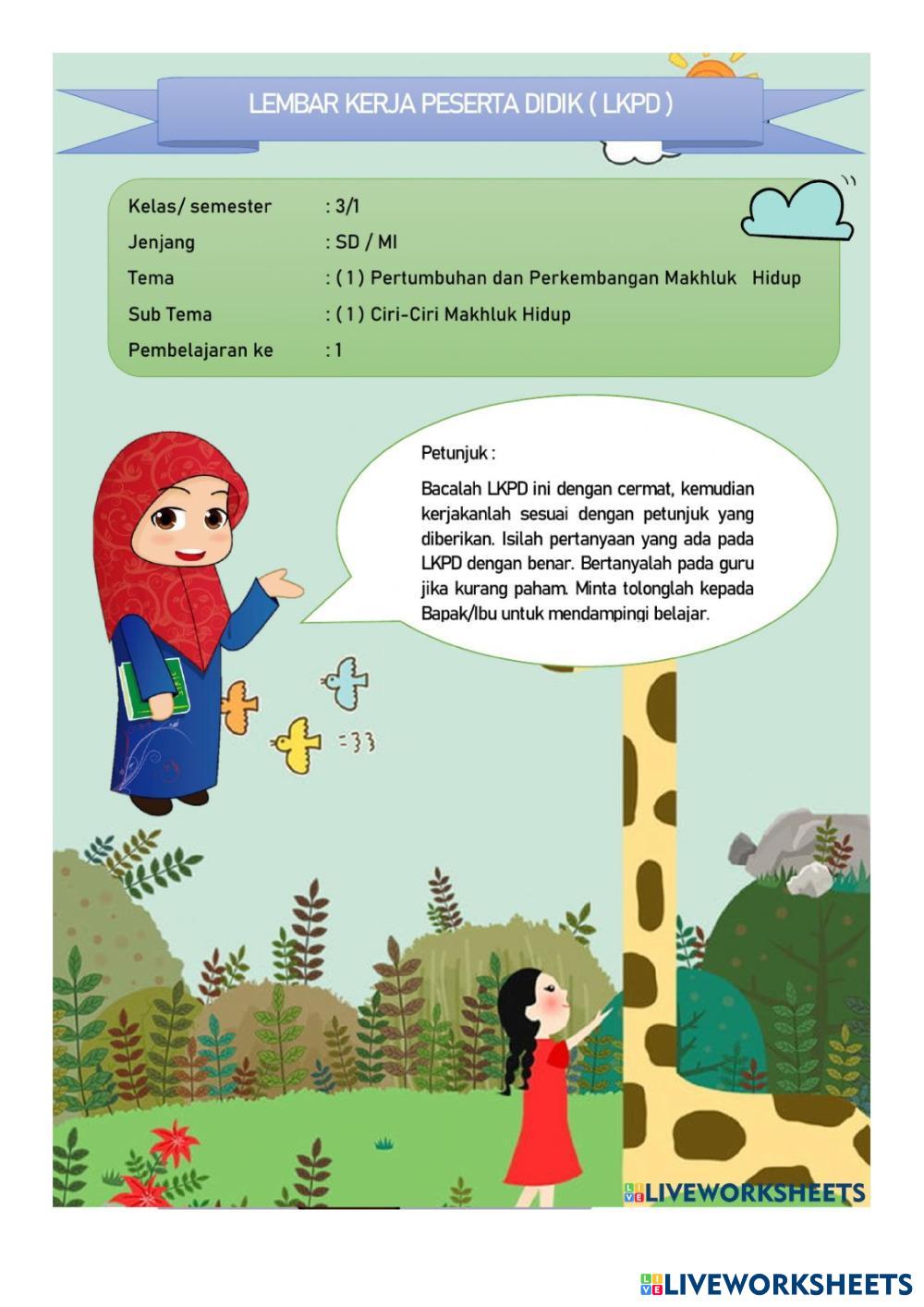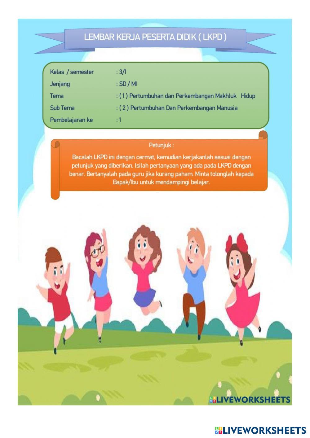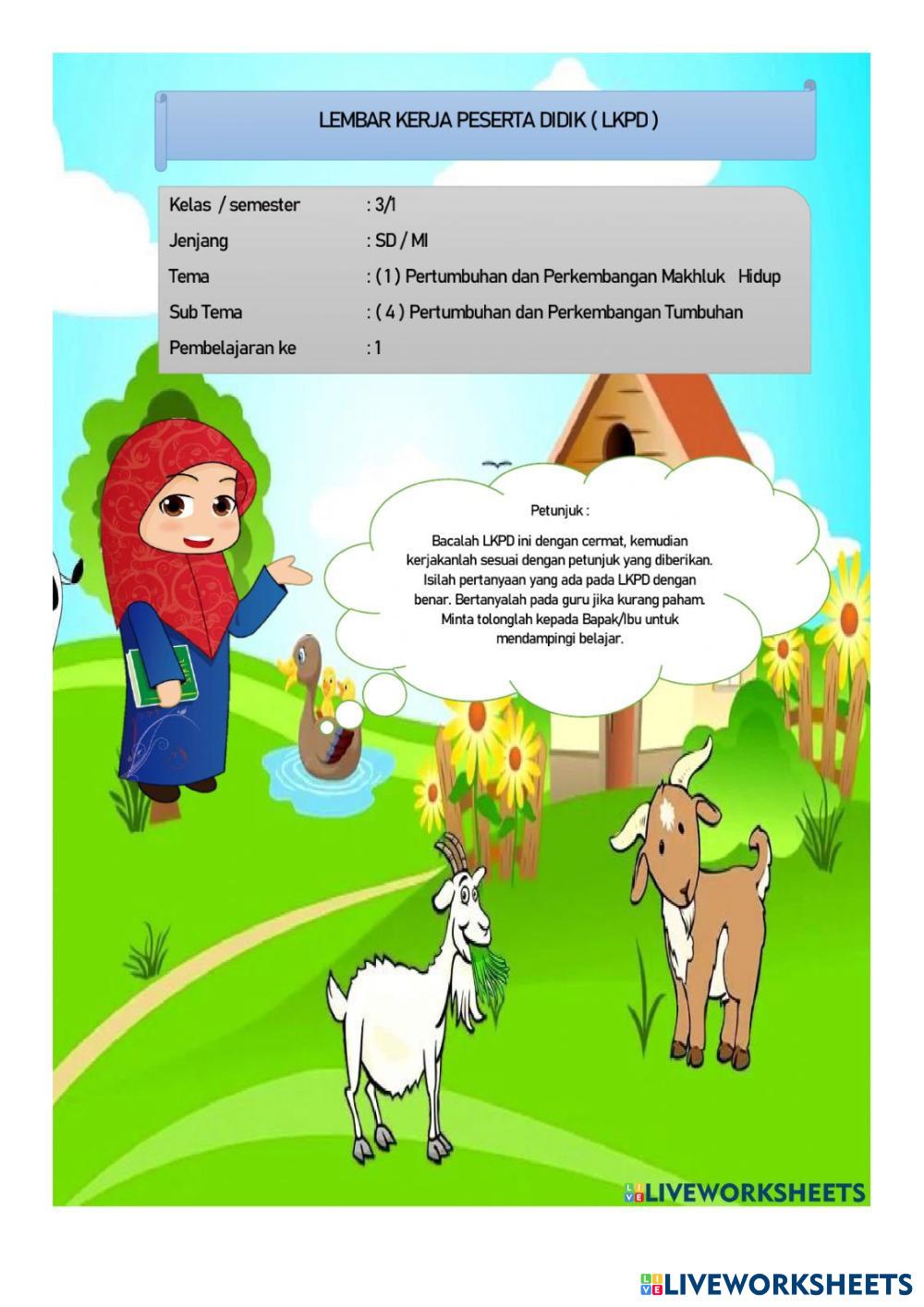 Assalamualaikum anak-anak sebagai nilai ulangan harian kali ini silakan kerjakan LKPD (Lembar Kerja Peserta Didik) yang telah ibu sediakan. Materi kali ini adalah "Pertumbuhan dan Perkembangan Makhluk Hidup".Kerjakan dengan cermat, hikmat, dan awali dengan basmallah. Semangatt !!!