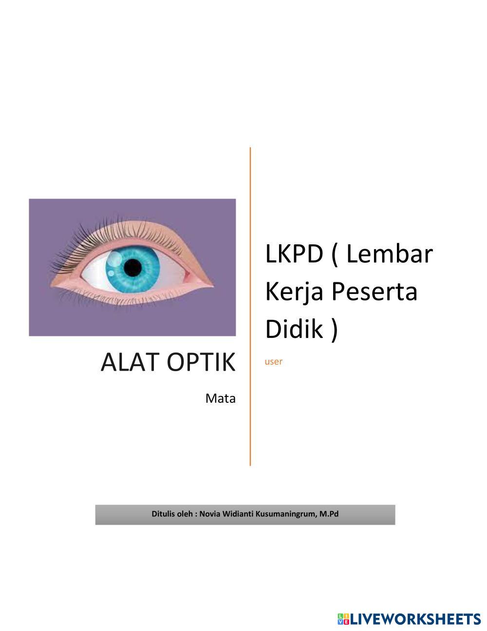 Alat optik adalah alat yang menggunakan lensa, cermin, atau keduanya untuk memanfaatkan sifat cahaya yang dapat dipantulkan dan dapat dibiaskan. Ada dua jenis alat optik, yaitu alat optik alami dan alat optik buatan. Alat optik alami yaitu mata, alat optik buatan diantaranya kacamata, kamera, lup, mikroskop, teropong.
