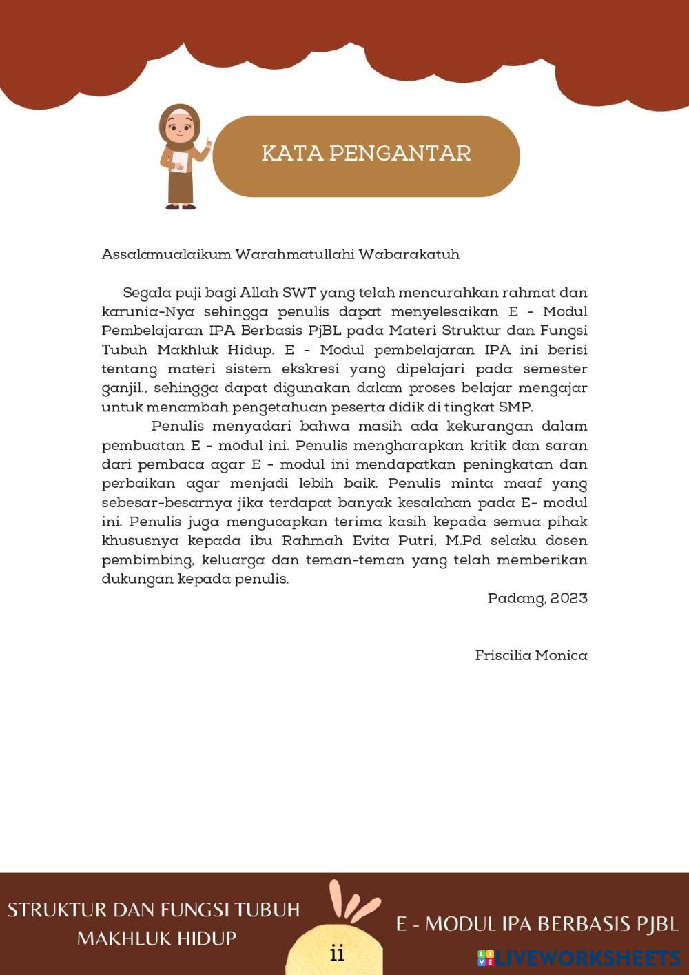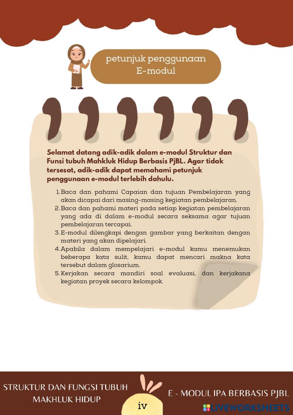 Created byFriscilia monica Ilmu Pengetahuan Alam (IPA) Struktur dan Fungsi Tubuh Makhluk Hidup Age 13-18 level: SMP Indonesian Author's Instructions My Google Classroom Courses × 0 classes selected (0 students total) Quick Access Select all classes (0 classes) All Classes Loading courses... Cancel Share Share to selected Course __COURSE_NAME__ __STUDENT_NAME__ (__STUDENT_EMAIL__) E-Modul Download Worksheet Validation Check my answers Emails my answers to my teacher Full name Group/level School subject Teacher's email or key code Close Submit Validating worksheet... (12) Your answers have been sent to your teacher. Good luck! OK We encountered an error submitting your answers. Please try again. OK Advertisement | Go Ad Free Created byFriscilia monica Ilmu Pengetahuan Alam (IPA) Struktur dan Fungsi Tubuh Makhluk Hidup Age 13-18 level: SMP Indonesian Author's Instructions