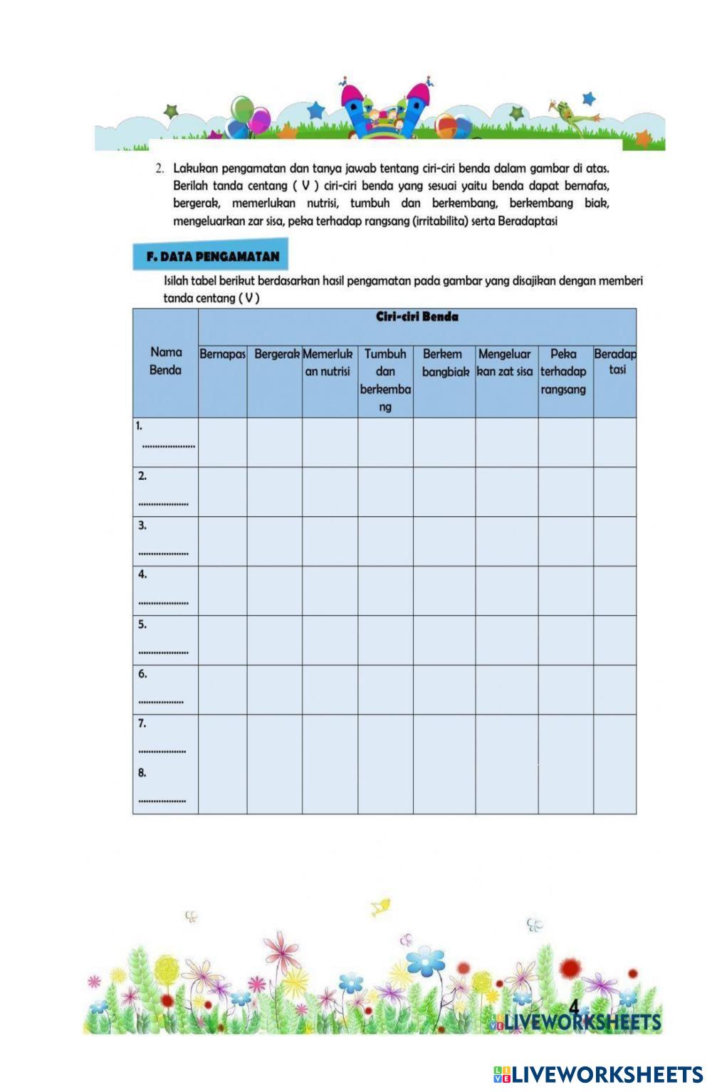 Created byhariyanto Ilmu Pengetahuan Alam (IPA) Klasifikasi Makhluk Hidup Age 12-16 level: kelas 7 Indonesian Author's Instructions My Google Classroom Courses × 0 classes selected (0 students total) Quick Access Select all classes (0 classes) All Classes Loading courses... Cancel Share Share to selected Course __COURSE_NAME__ __STUDENT_NAME__ (__STUDENT_EMAIL__) E-LKPD KLASIFIKASI MAKHLUK HIDUP Download Worksheet Validation Check my answers Emails my answers to my teacher Full name Group/level School subject Teacher's email or key code Close Submit Validating worksheet... (12) Your answers have been sent to your teacher. Good luck! OK We encountered an error submitting your answers. Please try again. OK Advertisement | Go Ad Free Created byhariyanto Ilmu Pengetahuan Alam (IPA) Klasifikasi Makhluk Hidup Age 12-16 level: kelas 7 Indonesian Author's Instructions