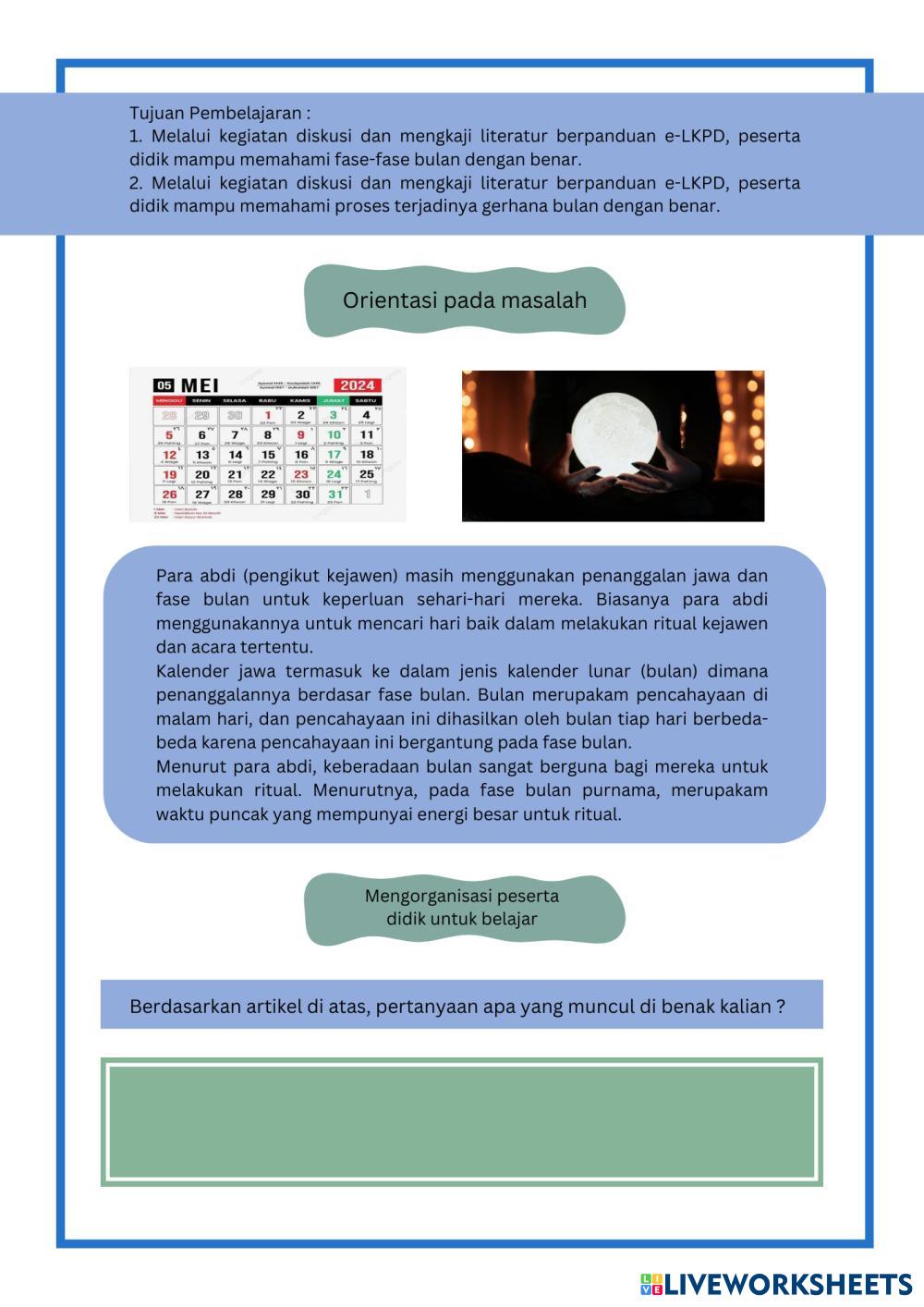 Created byLutiatun Hikmah Ilmu Pengetahuan Alam (IPA) Bumi dan Satelitnya Age 10-18 level: D Indonesian Author's Instructions My Google Classroom Courses × 0 classes selected (0 students total) Quick Access Select all classes (0 classes) All Classes Loading courses... Cancel Share Share to selected Course __COURSE_NAME__ __STUDENT_NAME__ (__STUDENT_EMAIL__) LKPD Bumi dan Satelitnya Download Worksheet Validation Check my answers Emails my answers to my teacher Full name Group/level School subject Teacher's email or key code Close Submit Validating worksheet... (12) Your answers have been sent to your teacher. Good luck! OK We encountered an error submitting your answers. Please try again. OK Advertisement | Go Ad Free Created byLutiatun Hikmah Ilmu Pengetahuan Alam (IPA) Bumi dan Satelitnya Age 10-18 level: D Indonesian Author's Instructions