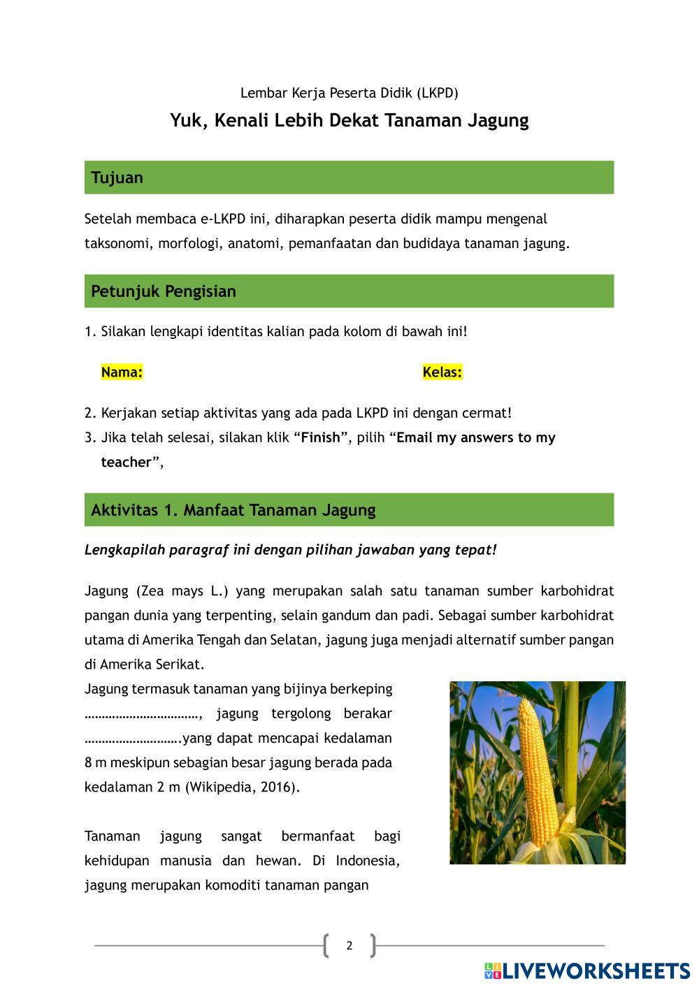 LKPD berisi tentang bagaimana budidaya tanaman jagung supaya lebih bagus pertumbuhannya