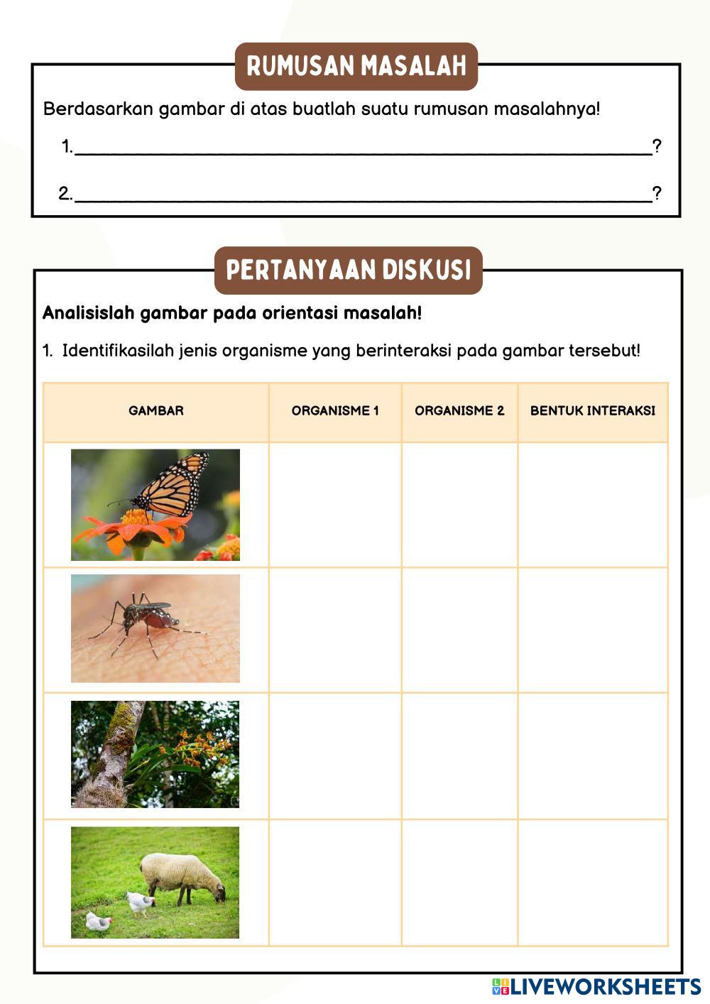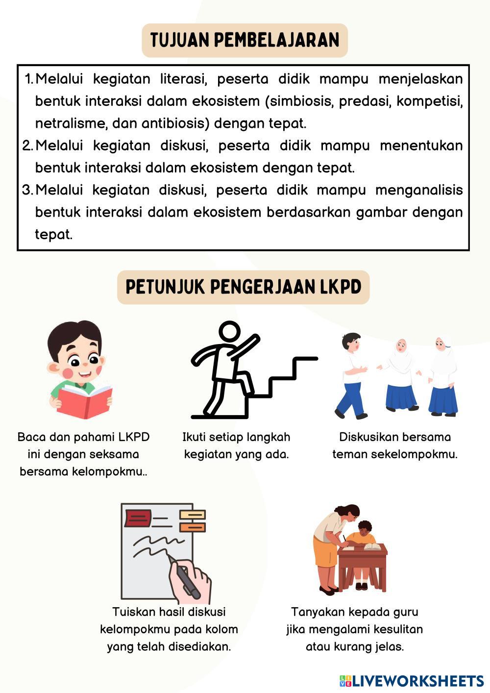 Created byMonica Dwi Arini Ilmu Pengetahuan Alam (IPA) Simbiosis Age 12+ level: VII Indonesian Author's Instructions My Google Classroom Courses × 0 classes selected (0 students total) Quick Access Select all classes (0 classes) All Classes Loading courses... Cancel Share Share to selected Course __COURSE_NAME__ __STUDENT_NAME__ (__STUDENT_EMAIL__) LKPD TIPE A - BENTUK INTERAKSI MAKHLUK HIDUP Download Worksheet Validation Check my answers Emails my answers to my teacher Full name Group/level School subject Teacher's email or key code Close Submit Validating worksheet... (12) Your answers have been sent to your teacher. Good luck! OK We encountered an error submitting your answers. Please try again. OK Advertisement | Go Ad Free Created byMonica Dwi Arini Ilmu Pengetahuan Alam (IPA) Simbiosis Age 12+ level: VII Indonesian Author's Instructions