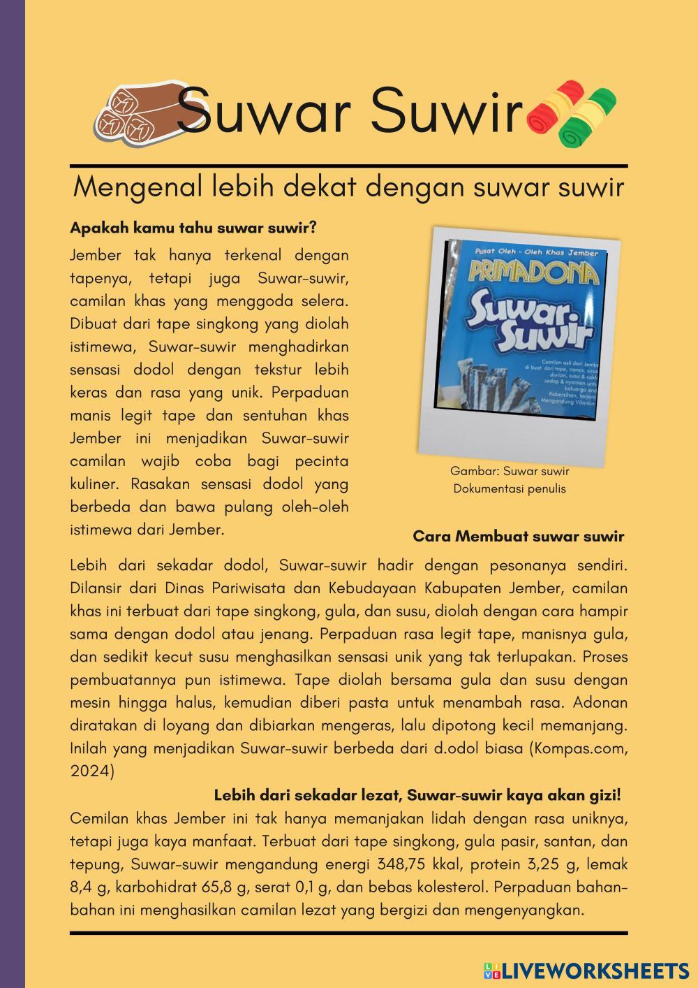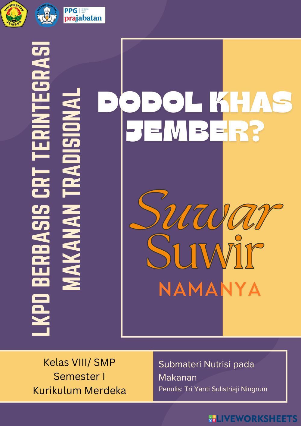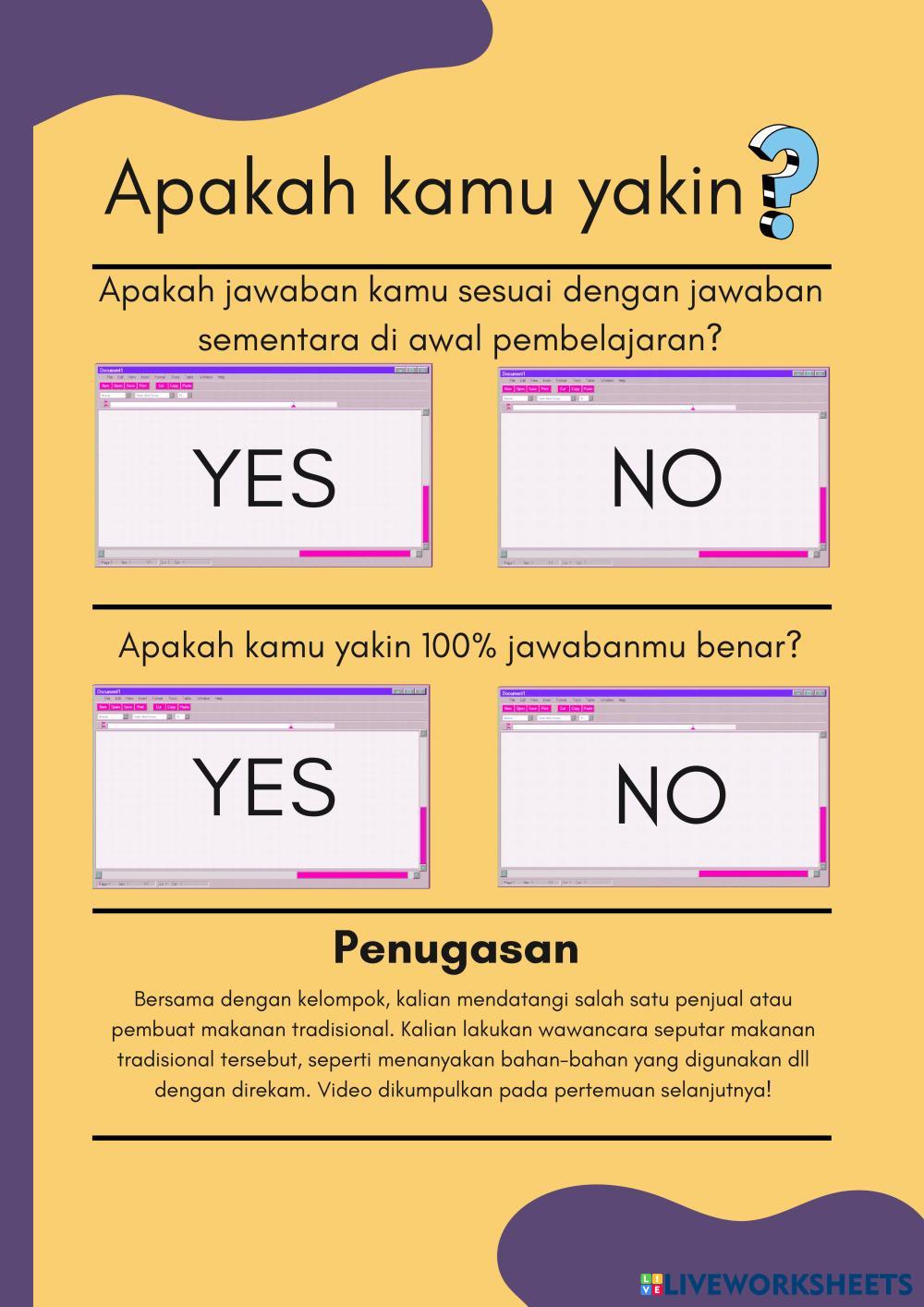 Created byTri Ningrum Ilmu Pengetahuan Alam (IPA) Nutrisi Pada Makanan Age 13-18 level: Kelas 8 SMP Indonesian Author's Instructions My Google Classroom Courses × 0 classes selected (0 students total) Quick Access Select all classes (0 classes) All Classes Loading courses... Cancel Share Share to selected Course __COURSE_NAME__ __STUDENT_NAME__ (__STUDENT_EMAIL__) LKPD Berbasis CRT Terintegrasi Makanan Tradisional Suwar-suwir Download Worksheet Validation Check my answers Emails my answers to my teacher Full name Group/level School subject Teacher's email or key code Close Submit Validating worksheet... (12) Your answers have been sent to your teacher. Good luck! OK We encountered an error submitting your answers. Please try again. OK Advertisement | Go Ad Free Created byTri Ningrum Ilmu Pengetahuan Alam (IPA) Nutrisi Pada Makanan Age 13-18 level: Kelas 8 SMP Indonesian Author's Instructions