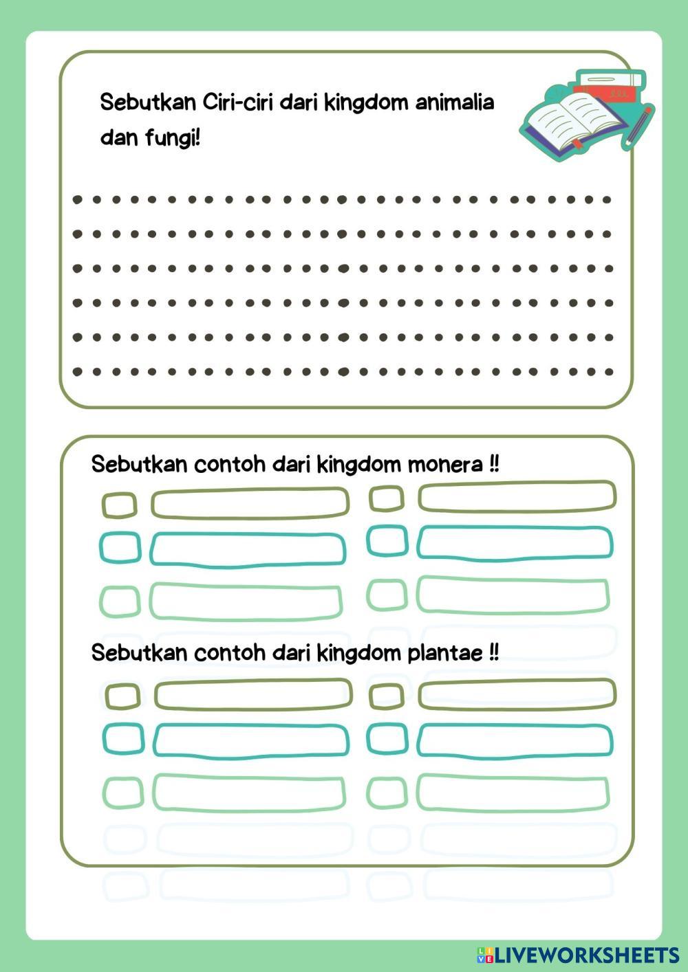 Created bynanana Ilmu Pengetahuan Alam (IPA) Ilmu Pengetahuan Alam (IPA) Age 10+ level: 1 Indonesian Author's Instructions My Google Classroom Courses × 0 classes selected (0 students total) Quick Access Select all classes (0 classes) All Classes Loading courses... Cancel Share Share to selected Course __COURSE_NAME__ __STUDENT_NAME__ (__STUDENT_EMAIL__) Kingdom Download Worksheet Validation Check my answers Emails my answers to my teacher Full name Group/level School subject Teacher's email or key code Close Submit Validating worksheet... (12) Your answers have been sent to your teacher. Good luck! OK We encountered an error submitting your answers. Please try again. OK Advertisement | Go Ad Free Created bynanana Ilmu Pengetahuan Alam (IPA) Ilmu Pengetahuan Alam (IPA) Age 10+ level: 1 Indonesian Author's Instructions