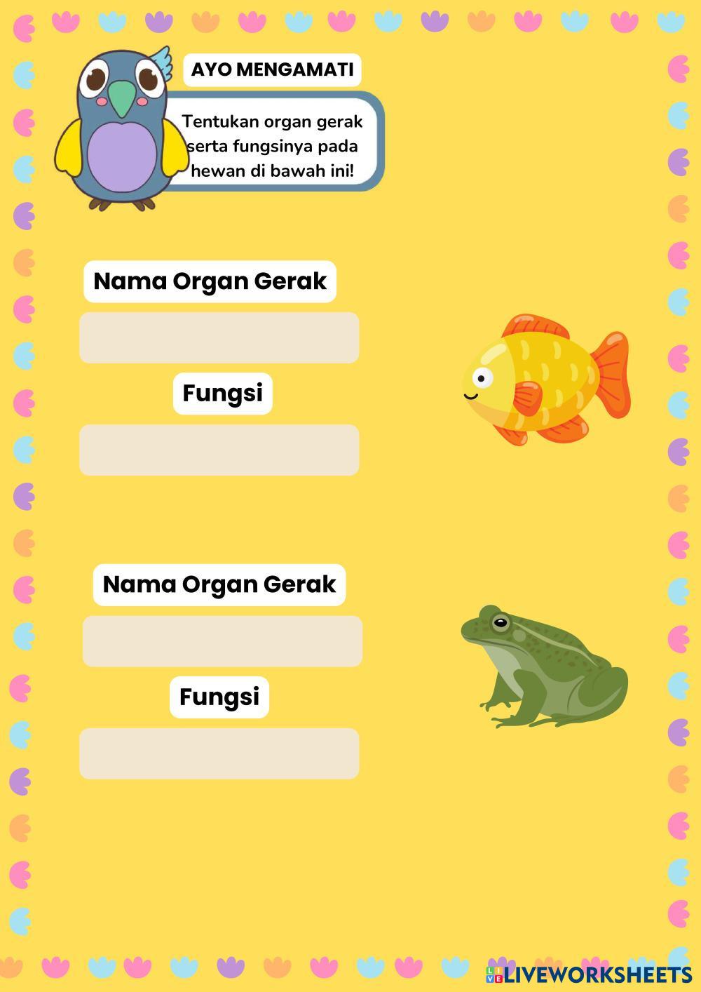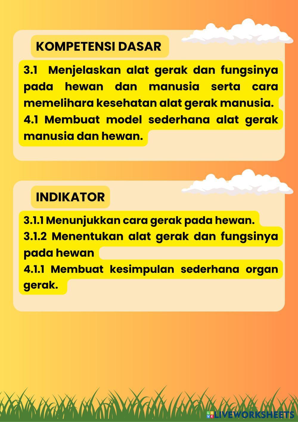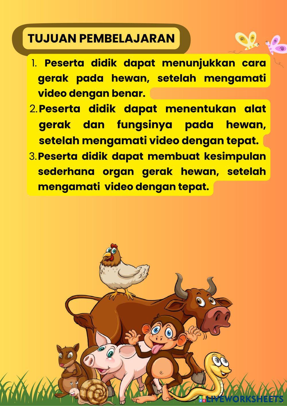 Created byCharoline Tata Indrian Ilmu Pengetahuan Alam (IPA) Organ Gerak Hewan Age 10-15 level: 3 Indonesian Author's Instructions Organ Gerak Pada Hewan Kelas 5 My Google Classroom Courses × 0 classes selected (0 students total) Quick Access Select all classes (0 classes) All Classes Loading courses... Cancel Share Share to selected Course __COURSE_NAME__ __STUDENT_NAME__ (__STUDENT_EMAIL__) Organ Gerak Hewan Download Worksheet Validation Check my answers Emails my answers to my teacher Full name Group/level School subject Teacher's email or key code Close Submit Validating worksheet... (12) Your answers have been sent to your teacher. Good luck! OK We encountered an error submitting your answers. Please try again. OK Advertisement | Go Ad Free Created byCharoline Tata Indrian Ilmu Pengetahuan Alam (IPA) Organ Gerak Hewan Age 10-15 level: 3 Indonesian Author's Instructions Organ Gerak Pada Hewan Kelas 5