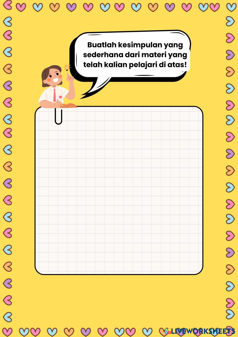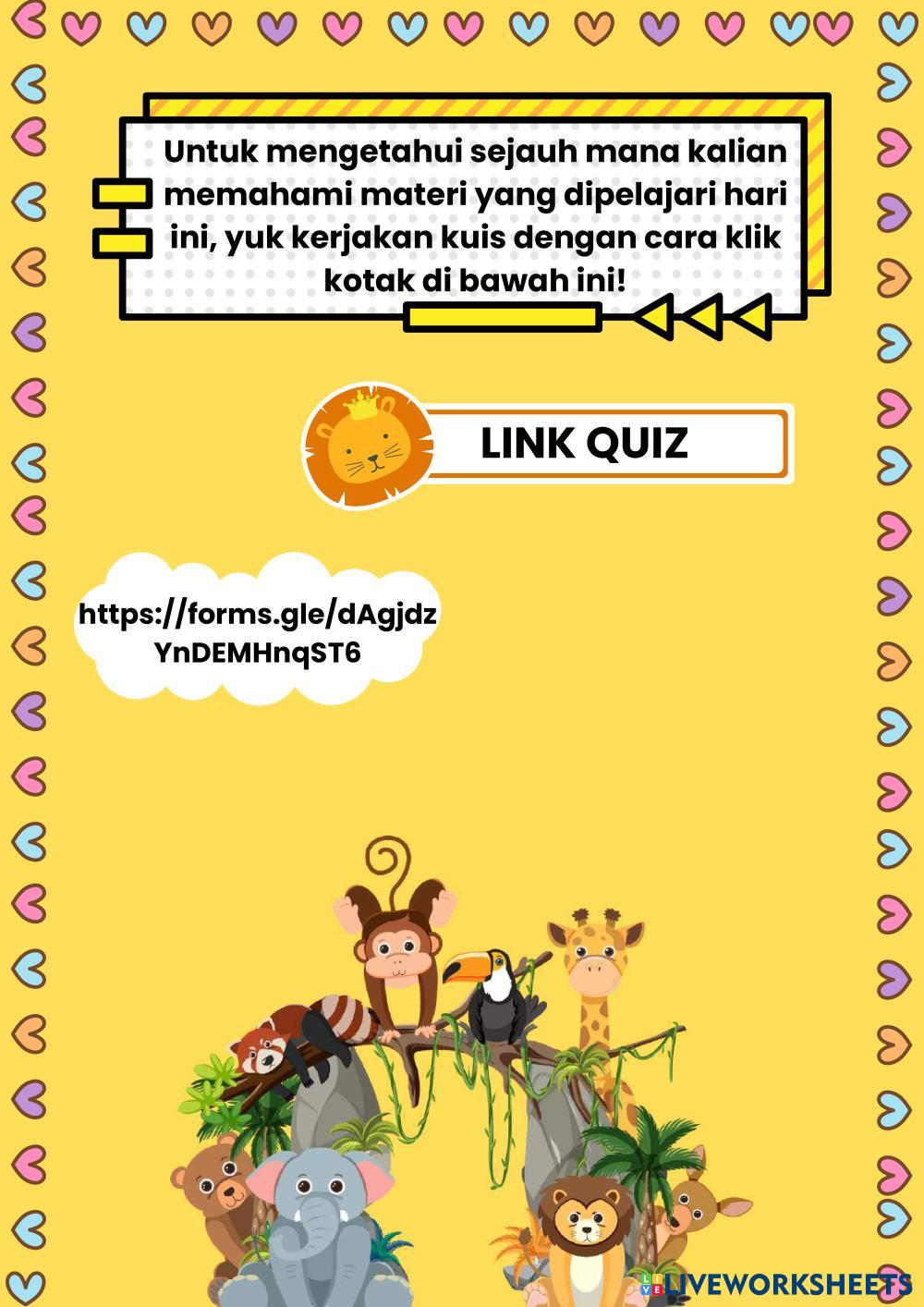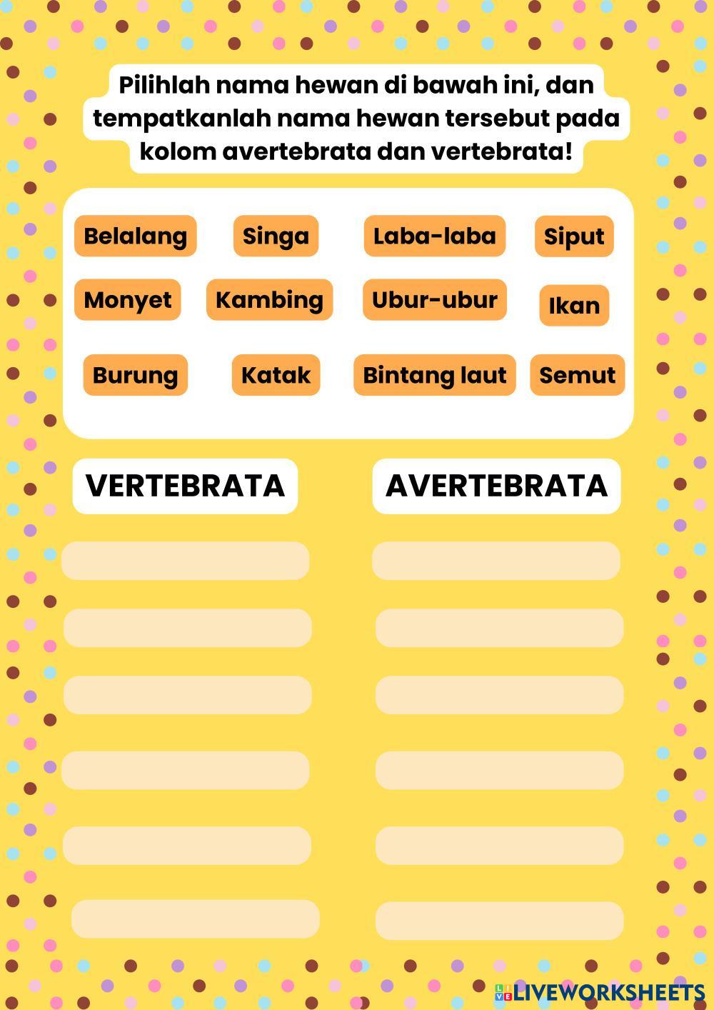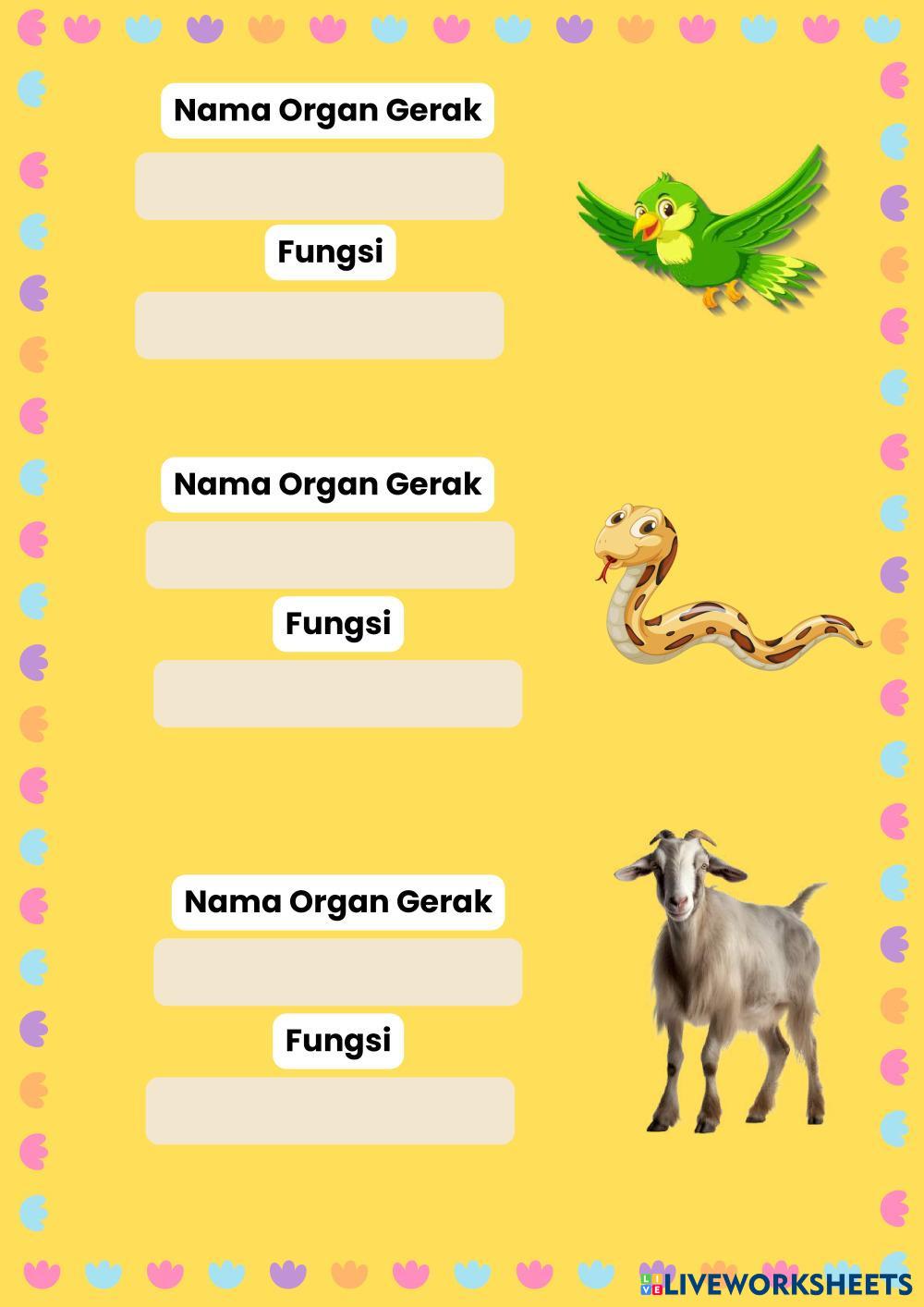 Created byCharoline Tata Indrian Ilmu Pengetahuan Alam (IPA) Organ Gerak Hewan Age 10-15 level: 3 Indonesian Author's Instructions Organ Gerak Pada Hewan Kelas 5 My Google Classroom Courses × 0 classes selected (0 students total) Quick Access Select all classes (0 classes) All Classes Loading courses... Cancel Share Share to selected Course __COURSE_NAME__ __STUDENT_NAME__ (__STUDENT_EMAIL__) Organ Gerak Hewan Download Worksheet Validation Check my answers Emails my answers to my teacher Full name Group/level School subject Teacher's email or key code Close Submit Validating worksheet... (12) Your answers have been sent to your teacher. Good luck! OK We encountered an error submitting your answers. Please try again. OK Advertisement | Go Ad Free Created byCharoline Tata Indrian Ilmu Pengetahuan Alam (IPA) Organ Gerak Hewan Age 10-15 level: 3 Indonesian Author's Instructions Organ Gerak Pada Hewan Kelas 5