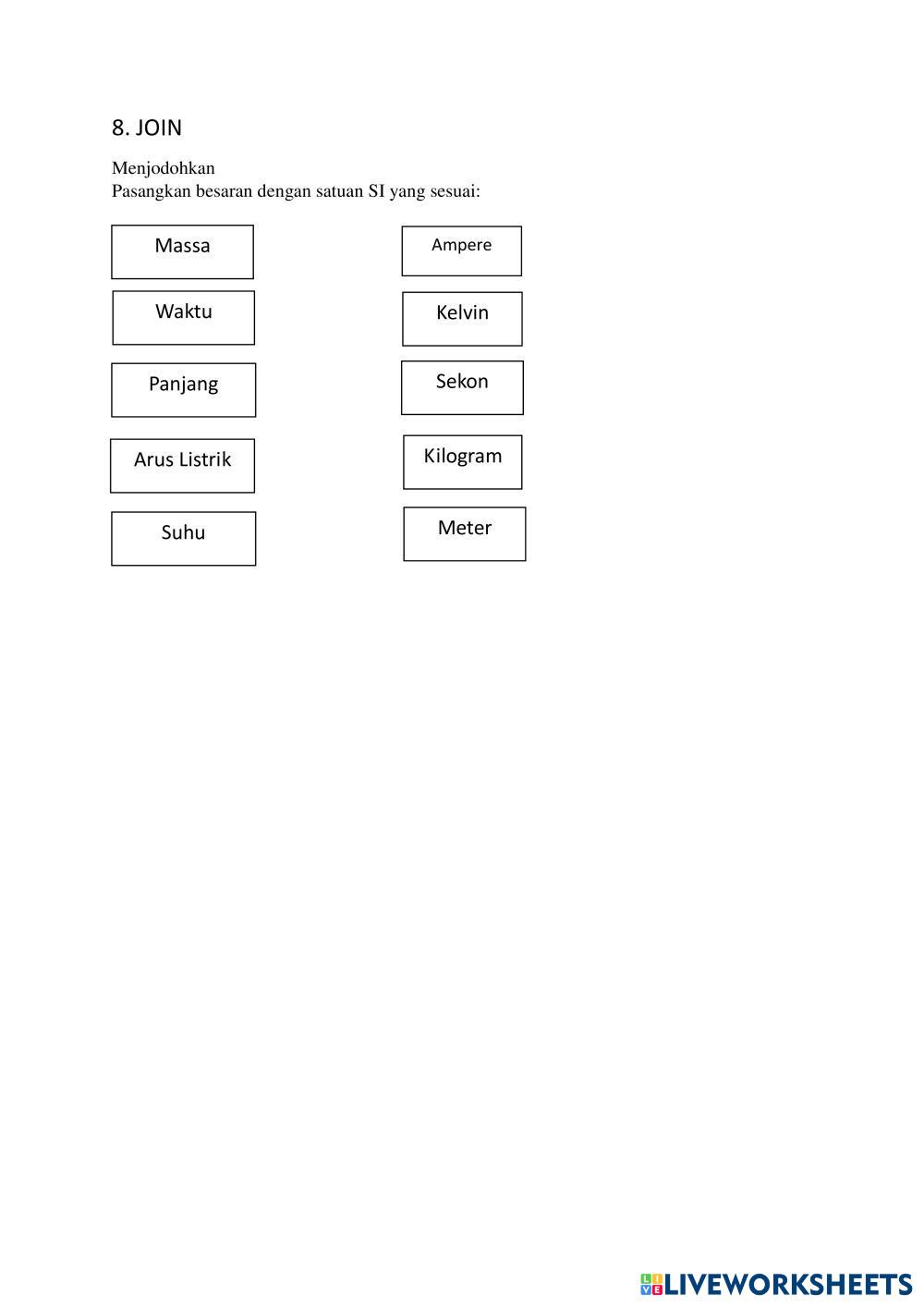 Created byMukhson Ilmu Pengetahuan Alam (IPA) Besaran dan satuan Age 12-18 level: 7 Indonesian Author's Instructions My Google Classroom Courses × 0 classes selected (0 students total) Quick Access Select all classes (0 classes) All Classes Loading courses... Cancel Share Share to selected Course __COURSE_NAME__ __STUDENT_NAME__ (__STUDENT_EMAIL__) besaran dan satuan Download Worksheet Validation Check my answers Emails my answers to my teacher Full name Group/level School subject Teacher's email or key code Close Submit Validating worksheet... (12) Your answers have been sent to your teacher. Good luck! OK We encountered an error submitting your answers. Please try again. OK Advertisement | Go Ad Free Created byMukhson Ilmu Pengetahuan Alam (IPA) Besaran dan satuan Age 12-18 level: 7 Indonesian Author's Instructions