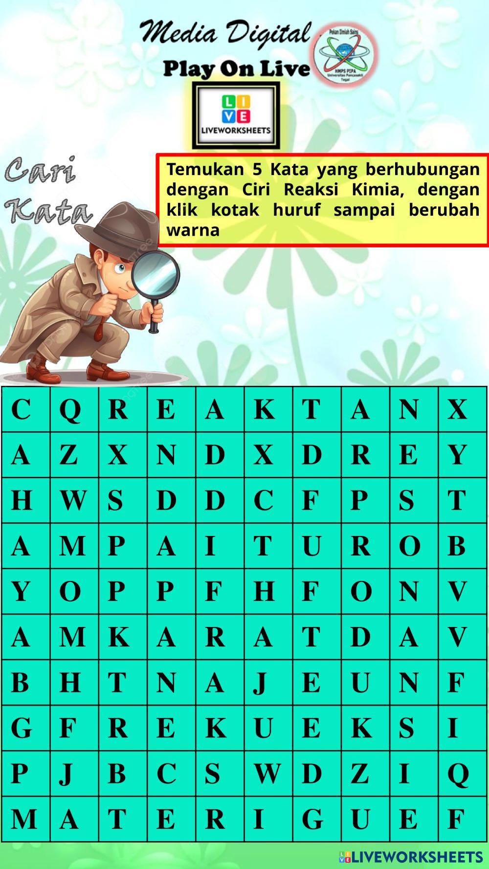 Created byNanang Sofiyullah Ilmu Pengetahuan Alam (IPA) Reaksi Kimia Age 12+ level: 7 Indonesian Author's Instructions My Google Classroom Courses × 0 classes selected (0 students total) Quick Access Select all classes (0 classes) All Classes Loading courses... Cancel Share Share to selected Course __COURSE_NAME__ __STUDENT_NAME__ (__STUDENT_EMAIL__) IPA Download Worksheet Validation Check my answers Emails my answers to my teacher Full name Group/level School subject Teacher's email or key code Close Submit Validating worksheet... (12) Your answers have been sent to your teacher. Good luck! OK We encountered an error submitting your answers. Please try again. OK Advertisement | Go Ad Free Created byNanang Sofiyullah Ilmu Pengetahuan Alam (IPA) Reaksi Kimia Age 12+ level: 7 Indonesian Author's Instructions