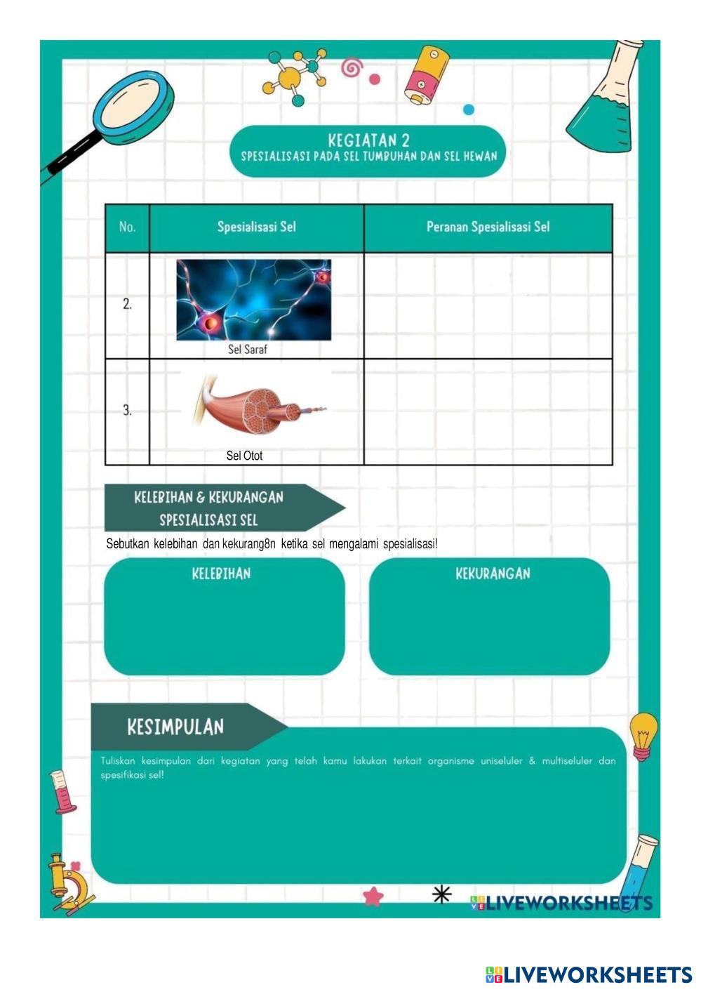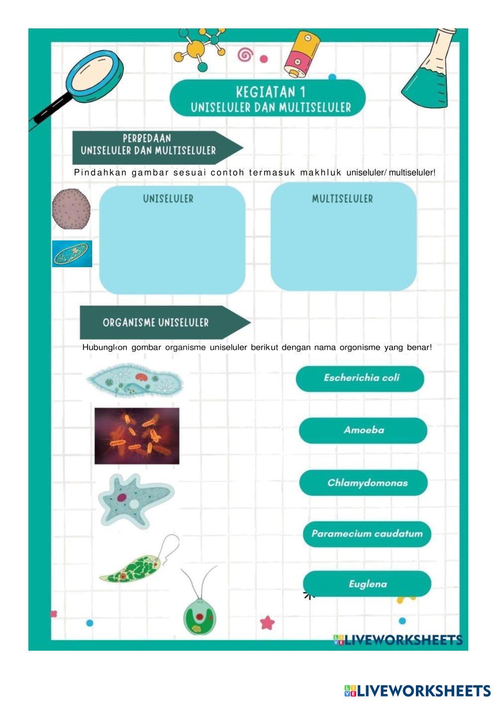 Created byEndang Tri Hastuti Ilmu Pengetahuan Alam (IPA) Pengenalan Sel Age 13-18 level: 8 Indonesian Author's Instructions Membedakan makluk hidup uniseluler dan multiseluler My Google Classroom Courses × 0 classes selected (0 students total) Quick Access Select all classes (0 classes) All Classes Loading courses... Cancel Share Share to selected Course __COURSE_NAME__ __STUDENT_NAME__ (__STUDENT_EMAIL__) Pengenalan Sel Download Worksheet Validation Check my answers Emails my answers to my teacher Full name Group/level School subject Teacher's email or key code Close Submit Validating worksheet... (12) Your answers have been sent to your teacher. Good luck! OK We encountered an error submitting your answers. Please try again. OK Advertisement | Go Ad Free Created byEndang Tri Hastuti Ilmu Pengetahuan Alam (IPA) Pengenalan Sel Age 13-18 level: 8 Indonesian Author's Instructions Membedakan makluk hidup uniseluler dan multiseluler