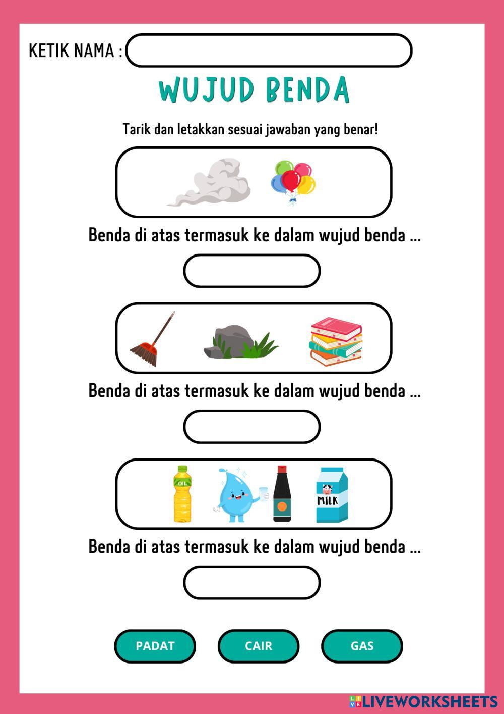 Created byMartin Purbaningtiyas Ilmu Pengetahuan Alam (IPA) Wujud benda Age 9-15 level: 4 Indonesian Author's Instructions My Google Classroom Courses × 0 classes selected (0 students total) Quick Access Select all classes (0 classes) All Classes Loading courses... Cancel Share Share to selected Course __COURSE_NAME__ __STUDENT_NAME__ (__STUDENT_EMAIL__) WUJUD BENDA Download Worksheet Validation Check my answers Emails my answers to my teacher Full name Group/level School subject Teacher's email or key code Close Submit Validating worksheet... (12) Your answers have been sent to your teacher. Good luck! OK We encountered an error submitting your answers. Please try again. OK Advertisement | Go Ad Free Created byMartin Purbaningtiyas Ilmu Pengetahuan Alam (IPA) Wujud benda Age 9-15 level: 4 Indonesian Author's Instructions