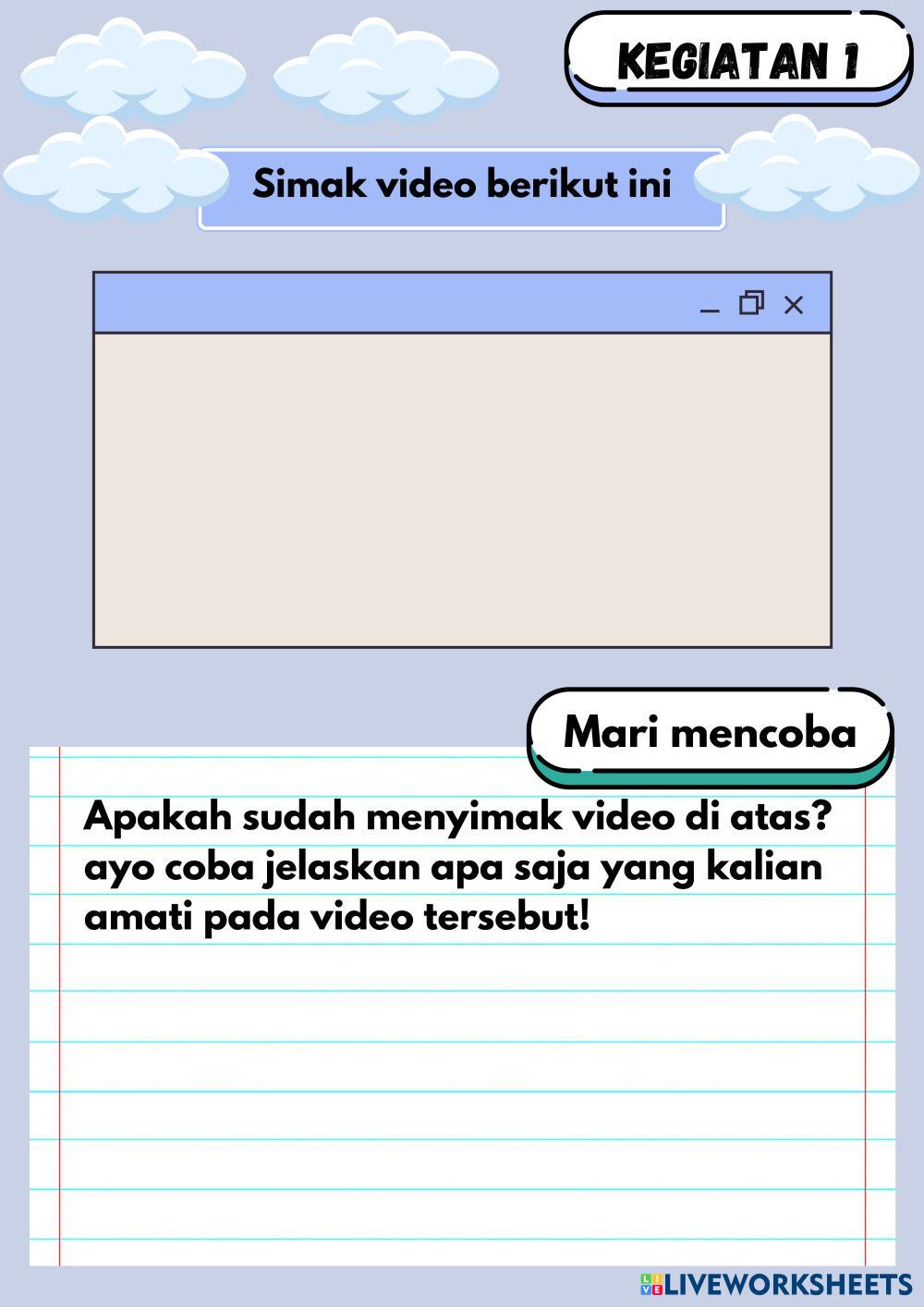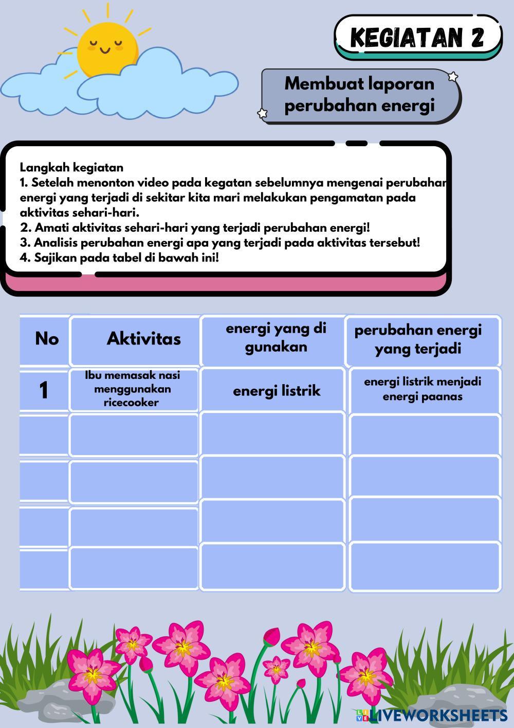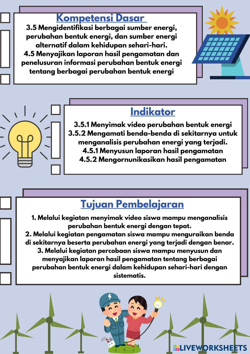 Created byTika Yuningsih Ilmu Pengetahuan Alam (IPA) Perubahan bentuk energi Age 10-12 level: 4 Indonesian Author's Instructions My Google Classroom Courses × 0 classes selected (0 students total) Quick Access Select all classes (0 classes) All Classes Loading courses... Cancel Share Share to selected Course __COURSE_NAME__ __STUDENT_NAME__ (__STUDENT_EMAIL__) Perubahan Bentuk Energi Download Worksheet Validation Check my answers Emails my answers to my teacher Full name Group/level School subject Teacher's email or key code Close Submit Validating worksheet... (12) Your answers have been sent to your teacher. Good luck! OK We encountered an error submitting your answers. Please try again. OK Advertisement | Go Ad Free Created byTika Yuningsih Ilmu Pengetahuan Alam (IPA) Perubahan bentuk energi Age 10-12 level: 4 Indonesian Author's Instructions