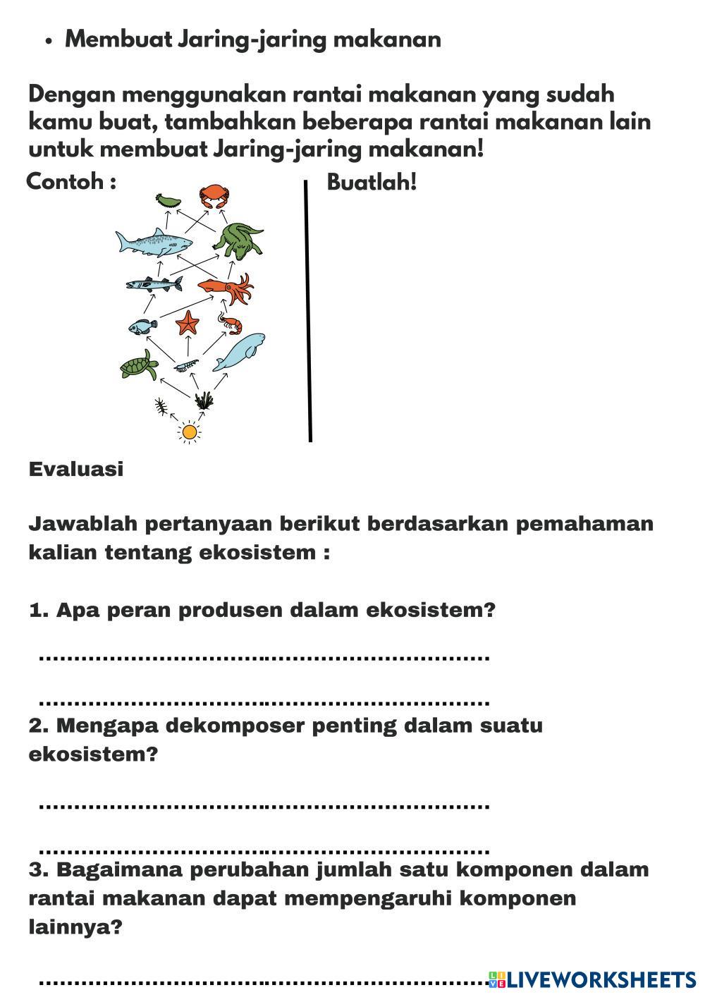 Created byMia Hermawati Ilmu Pengetahuan Alam (IPA) Komponen ekosistem Age 9+ level: Kelas 5 Indonesian Author's Instructions My Google Classroom Courses × 0 classes selected (0 students total) Quick Access Select all classes (0 classes) All Classes Loading courses... Cancel Share Share to selected Course __COURSE_NAME__ __STUDENT_NAME__ (__STUDENT_EMAIL__) Komponen Ekosistem Download Worksheet Validation Check my answers Emails my answers to my teacher Full name Group/level School subject Teacher's email or key code Close Submit Validating worksheet... (12) Your answers have been sent to your teacher. Good luck! OK We encountered an error submitting your answers. Please try again. OK Advertisement | Go Ad Free Created byMia Hermawati Ilmu Pengetahuan Alam (IPA) Komponen ekosistem Age 9+ level: Kelas 5 Indonesian Author's Instructions