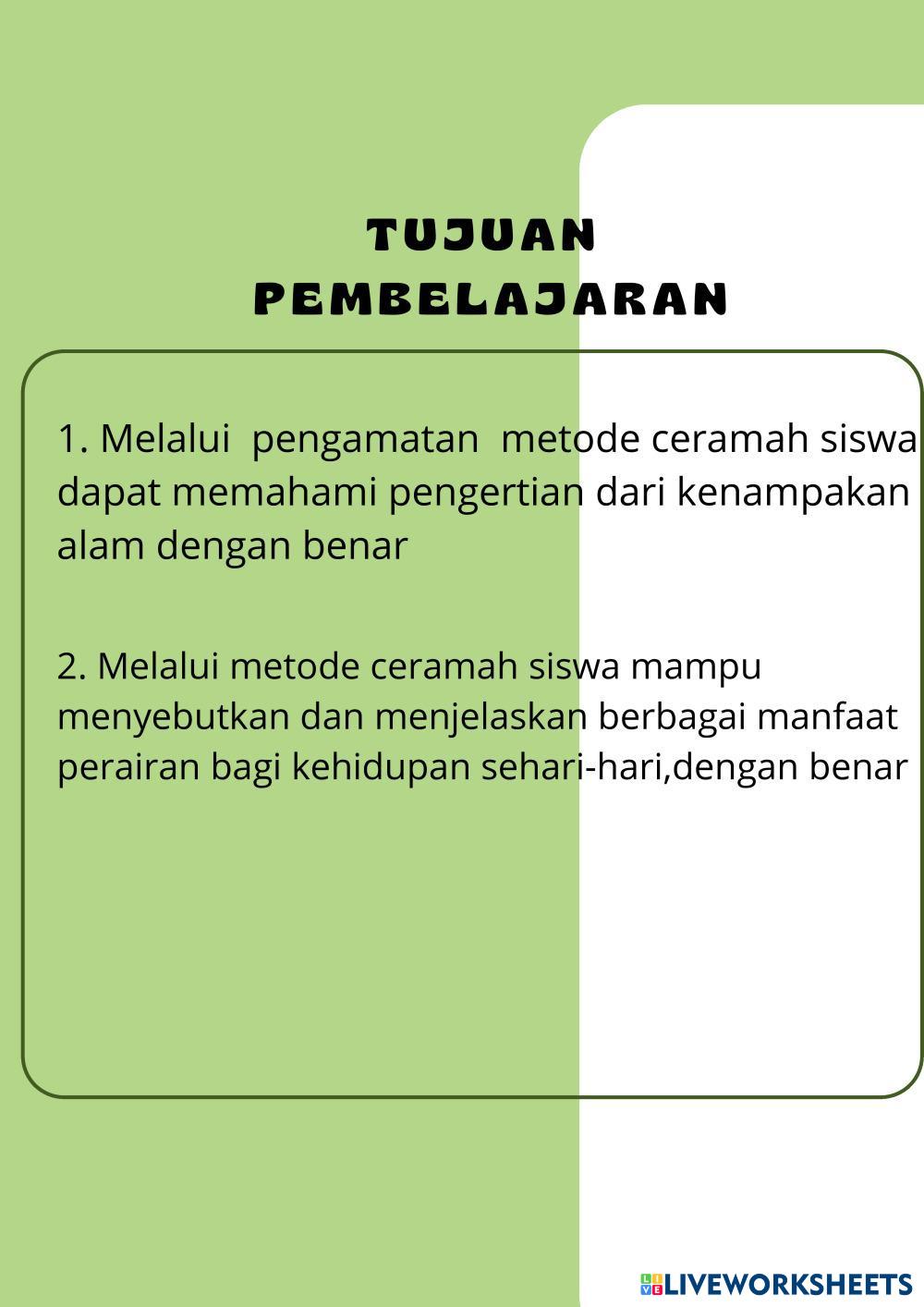 Created bylia aprilia Ilmu Pengetahuan Alam (IPA) Kenampakan Alam Age 9-14 level: 4 Indonesian Author's Instructions My Google Classroom Courses × 0 classes selected (0 students total) Quick Access Select all classes (0 classes) All Classes Loading courses... Cancel Share Share to selected Course __COURSE_NAME__ __STUDENT_NAME__ (__STUDENT_EMAIL__) Kenampakan Alam Perairan Download Worksheet Validation Check my answers Emails my answers to my teacher Full name Group/level School subject Teacher's email or key code Close Submit Validating worksheet... (12) Your answers have been sent to your teacher. Good luck! OK We encountered an error submitting your answers. Please try again. OK Advertisement | Go Ad Free Created bylia aprilia Ilmu Pengetahuan Alam (IPA) Kenampakan Alam Age 9-14 level: 4 Indonesian Author's Instructions