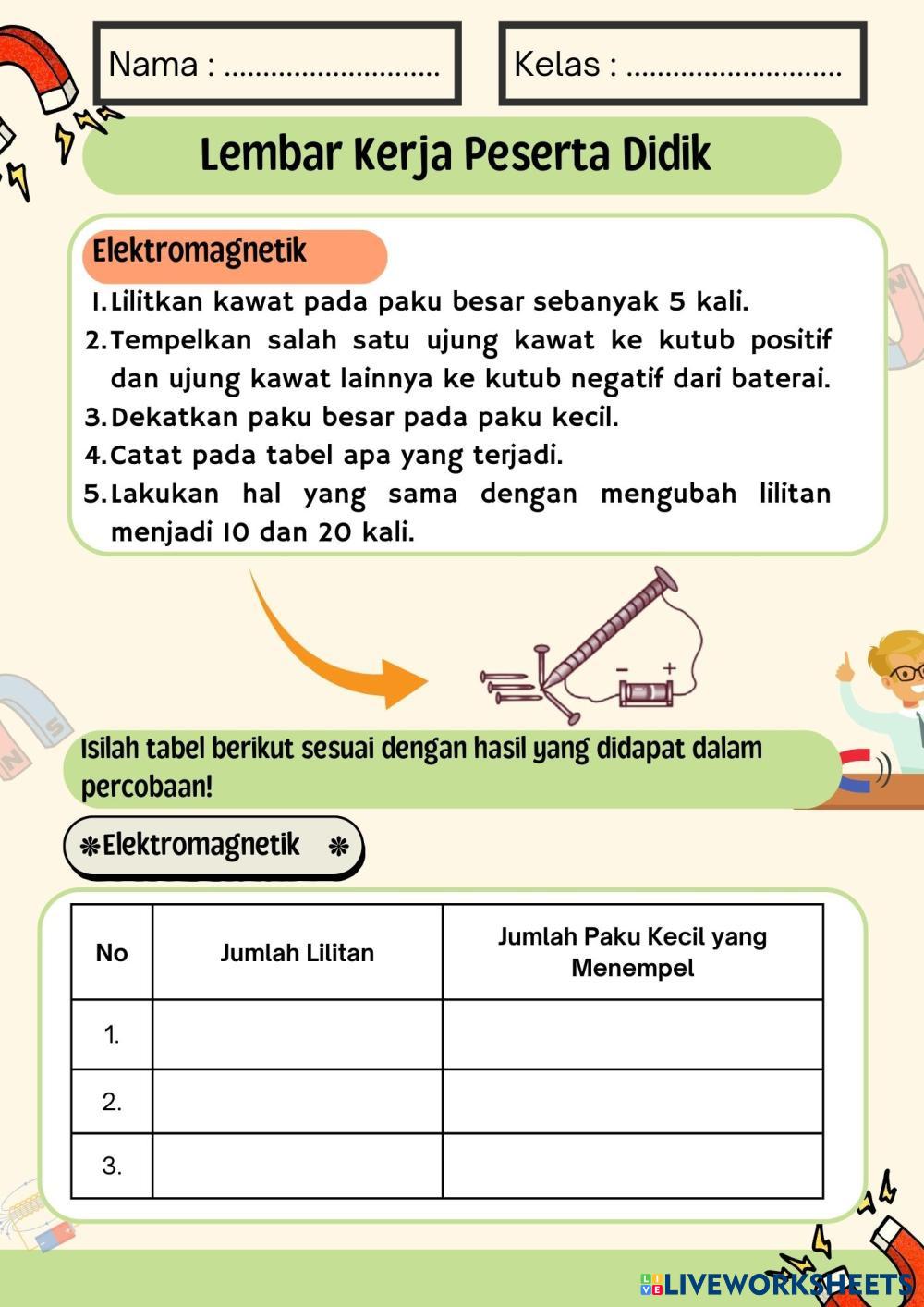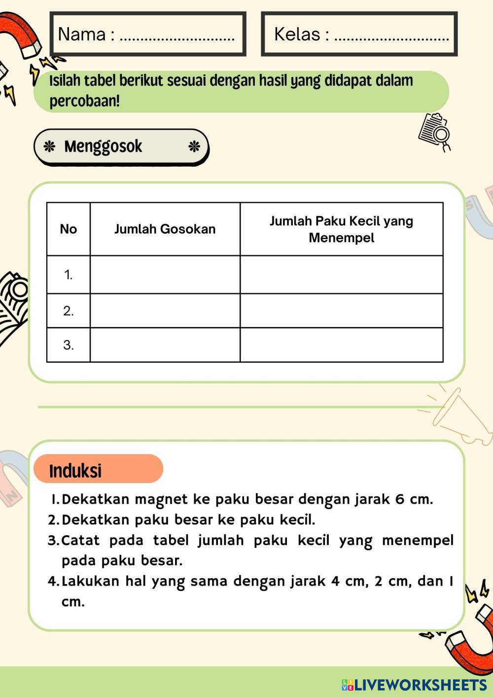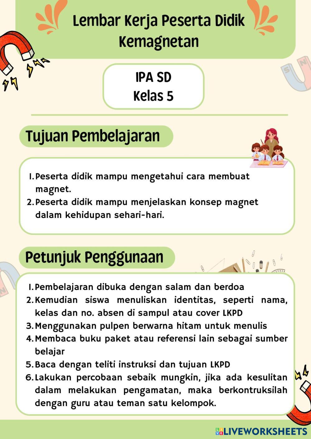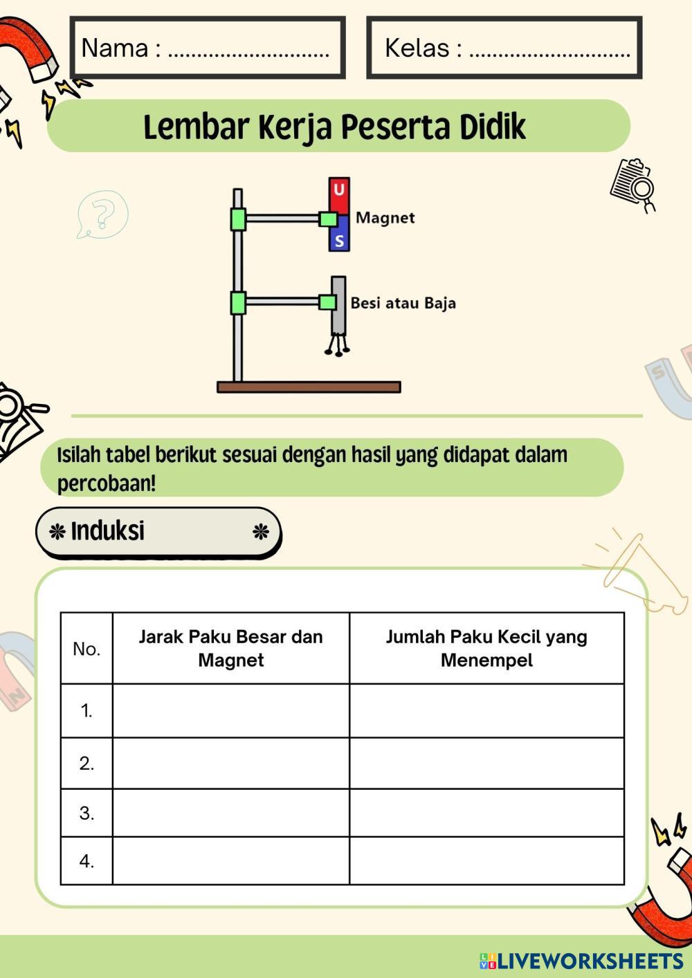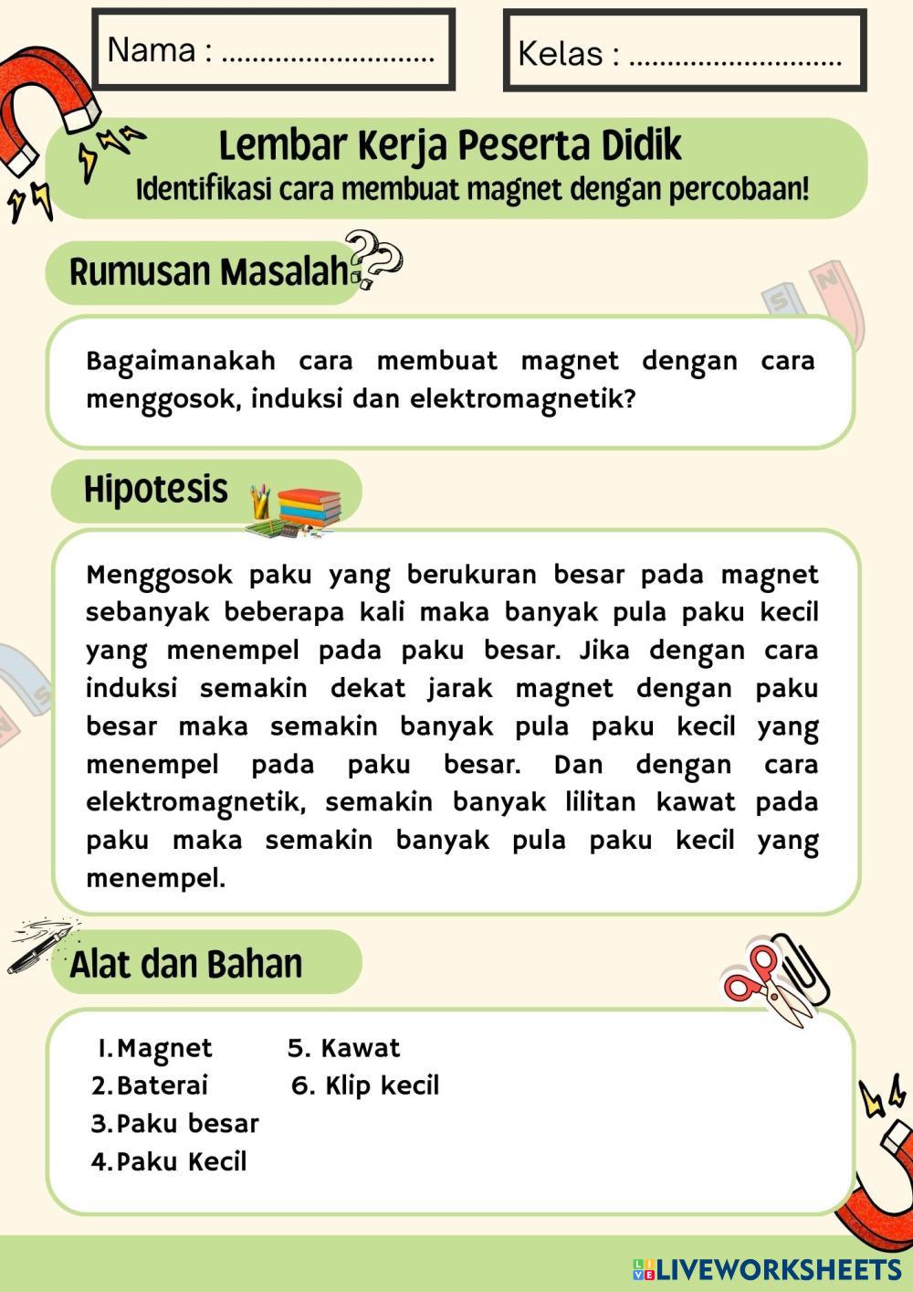 Created byNi nengah Nopi Artini Ilmu Pengetahuan Alam (IPA) Membuat magnet Age 5-9 level: 5 Indonesian Author's Instructions My Google Classroom Courses × 0 classes selected (0 students total) Quick Access Select all classes (0 classes) All Classes Loading courses... Cancel Share Share to selected Course __COURSE_NAME__ __STUDENT_NAME__ (__STUDENT_EMAIL__) Ni Luh Resa Sulastri Download Worksheet Validation Check my answers Emails my answers to my teacher Full name Group/level School subject Teacher's email or key code Close Submit Validating worksheet... (12) Your answers have been sent to your teacher. Good luck! OK We encountered an error submitting your answers. Please try again. OK Advertisement | Go Ad Free Created byNi nengah Nopi Artini Ilmu Pengetahuan Alam (IPA) Membuat magnet Age 5-9 level: 5 Indonesian Author's Instructions