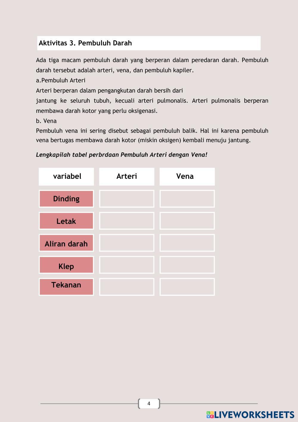 Created byNabilah Apriliani Ilmu Pengetahuan Alam (IPA) Sistem Peredaran Darah Manusia Age 15+ level: 11 Indonesian Author's Instructions My Google Classroom Courses × 0 classes selected (0 students total) Quick Access Select all classes (0 classes) All Classes Loading courses... Cancel Share Share to selected Course __COURSE_NAME__ __STUDENT_NAME__ (__STUDENT_EMAIL__) LKPD Peredaran Darah pada Manusia Download Worksheet Validation Check my answers Emails my answers to my teacher Full name Group/level School subject Teacher's email or key code Close Submit Validating worksheet... (12) Your answers have been sent to your teacher. Good luck! OK We encountered an error submitting your answers. Please try again. OK Advertisement | Go Ad Free Created byNabilah Apriliani Ilmu Pengetahuan Alam (IPA) Sistem Peredaran Darah Manusia Age 15+ level: 11 Indonesian Author's Instructions