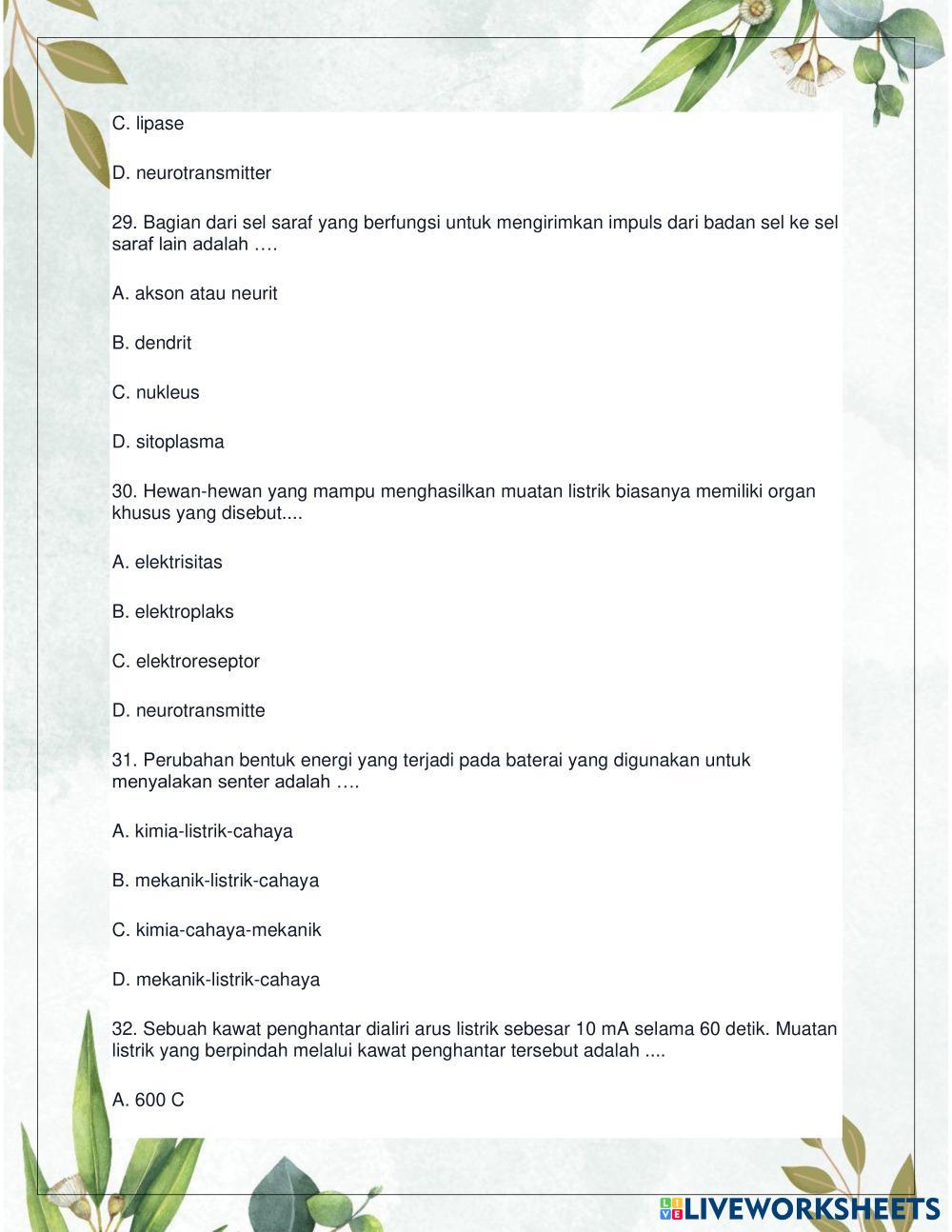 Created byTurisna Ilmu Pengetahuan Alam (IPA) Ilmu Pengetahuan Alam (IPA) Age 15-18 level: 9 Indonesian Author's Instructions My Google Classroom Courses × 0 classes selected (0 students total) Quick Access Select all classes (0 classes) All Classes Loading courses... Cancel Share Share to selected Course __COURSE_NAME__ __STUDENT_NAME__ (__STUDENT_EMAIL__) TURISNA Download Worksheet Validation Check my answers Emails my answers to my teacher Full name Group/level School subject Teacher's email or key code Close Submit Validating worksheet... (12) Your answers have been sent to your teacher. Good luck! OK We encountered an error submitting your answers. Please try again. OK Advertisement | Go Ad Free Created byTurisna Ilmu Pengetahuan Alam (IPA) Ilmu Pengetahuan Alam (IPA) Age 15-18 level: 9 Indonesian Author's Instructions