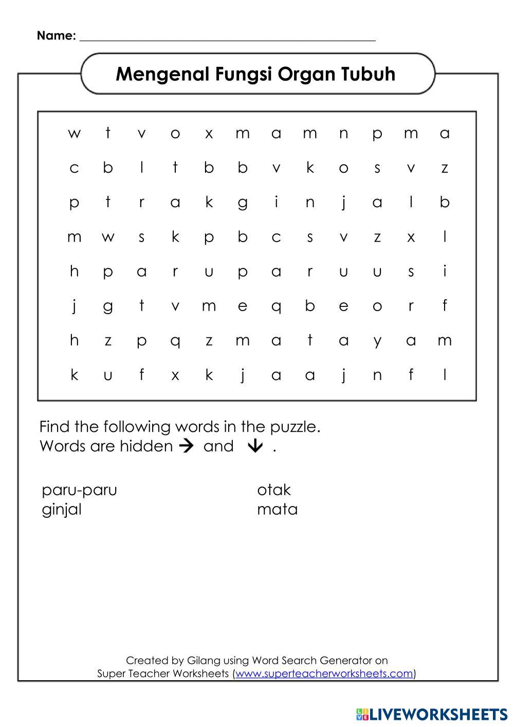 Created byRonalJuwanda Ilmu Pengetahuan Alam (IPA) Struktur dan Fungsi Tubuh Makhluk Hidup Age 10-17 level: Dasar Indonesian Author's Instructions My Google Classroom Courses × 0 classes selected (0 students total) Quick Access Select all classes (0 classes) All Classes Loading courses... Cancel Share Share to selected Course __COURSE_NAME__ __STUDENT_NAME__ (__STUDENT_EMAIL__) MENGENAL FUNGSI TUBUH Download Worksheet Validation Check my answers Emails my answers to my teacher Full name Group/level School subject Teacher's email or key code Close Submit Validating worksheet... (12) Your answers have been sent to your teacher. Good luck! OK We encountered an error submitting your answers. Please try again. OK Advertisement | Go Ad Free Created byRonalJuwanda Ilmu Pengetahuan Alam (IPA) Struktur dan Fungsi Tubuh Makhluk Hidup Age 10-17 level: Dasar Indonesian Author's Instructions