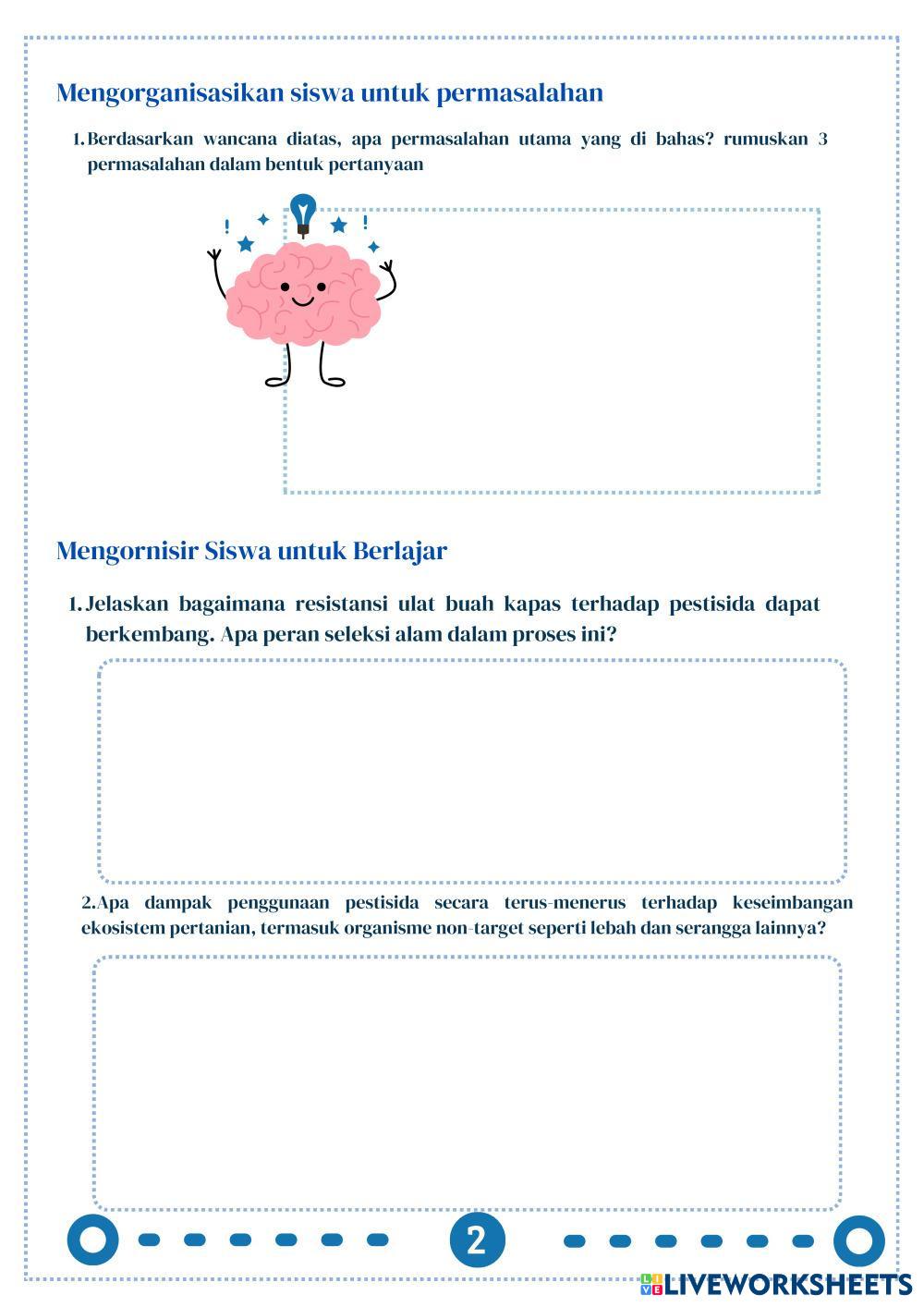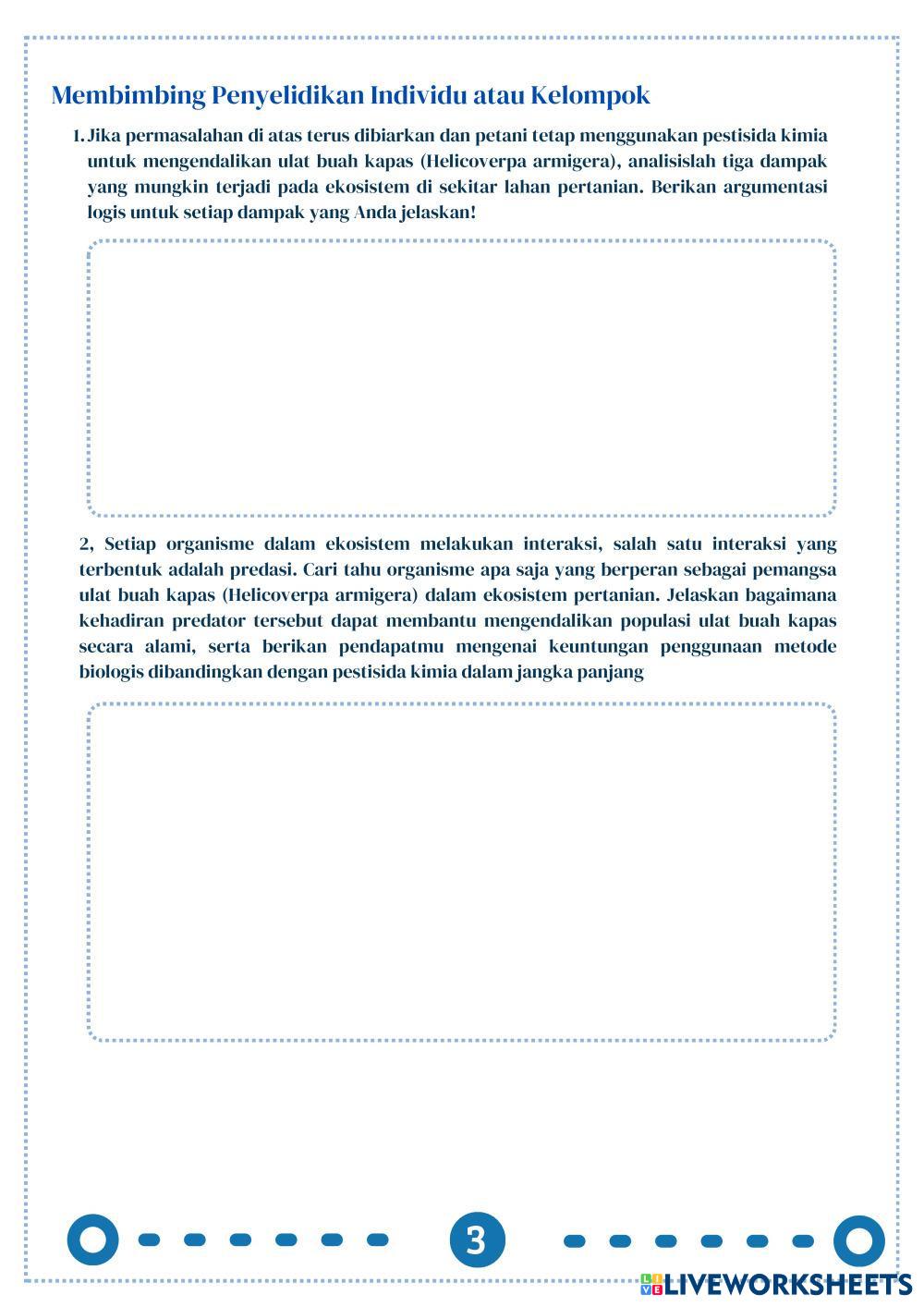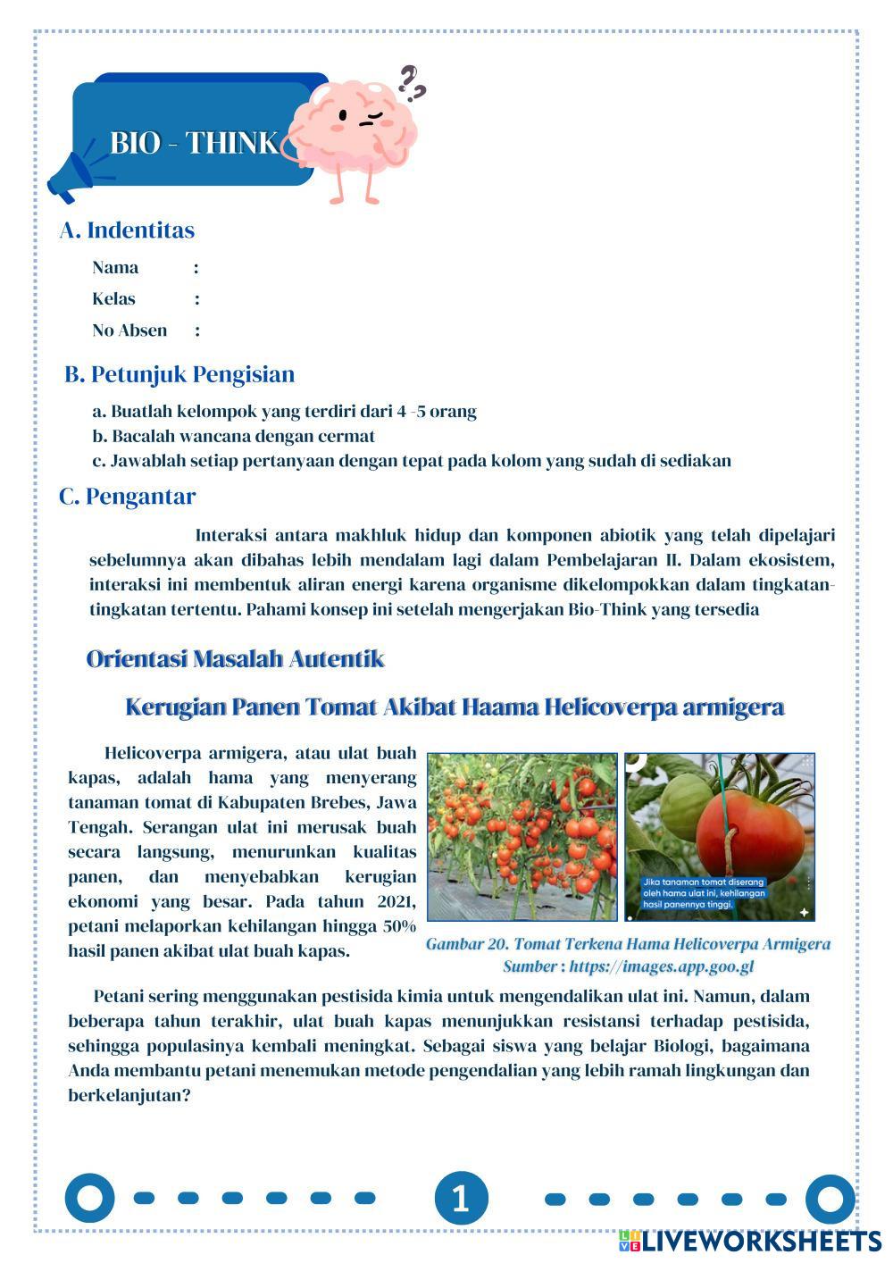 Created byMarsanda Ilmu Pengetahuan Alam (IPA) Aliran Energi dan Piramida Ekologi Age 10+ level: X Indonesian Author's Instructions My Google Classroom Courses × 0 classes selected (0 students total) Quick Access Select all classes (0 classes) All Classes Loading courses... Cancel Share Share to selected Course __COURSE_NAME__ __STUDENT_NAME__ (__STUDENT_EMAIL__) BIO - THINK 2 Download Worksheet Validation Check my answers Emails my answers to my teacher Full name Group/level School subject Teacher's email or key code Close Submit Validating worksheet... (12) Your answers have been sent to your teacher. Good luck! OK We encountered an error submitting your answers. Please try again. OK Advertisement | Go Ad Free Created byMarsanda Ilmu Pengetahuan Alam (IPA) Aliran Energi dan Piramida Ekologi Age 10+ level: X Indonesian Author's Instructions