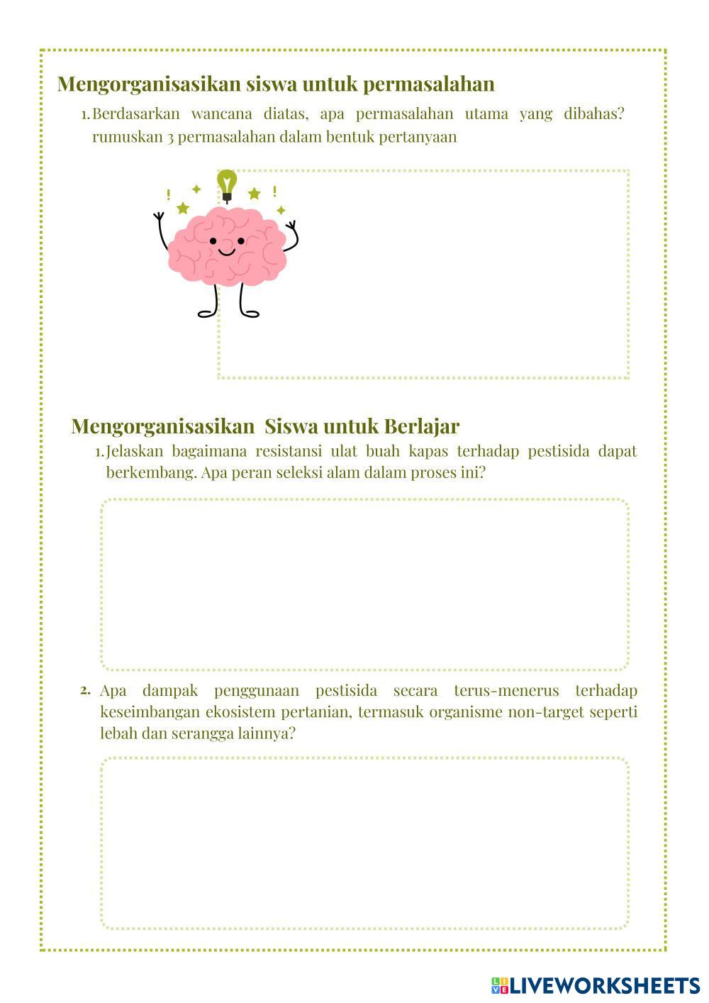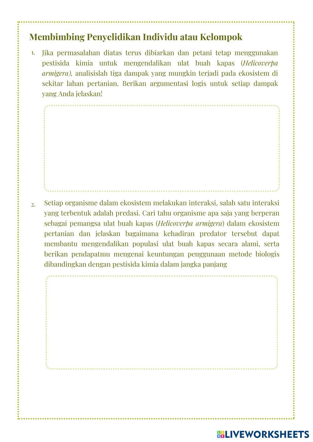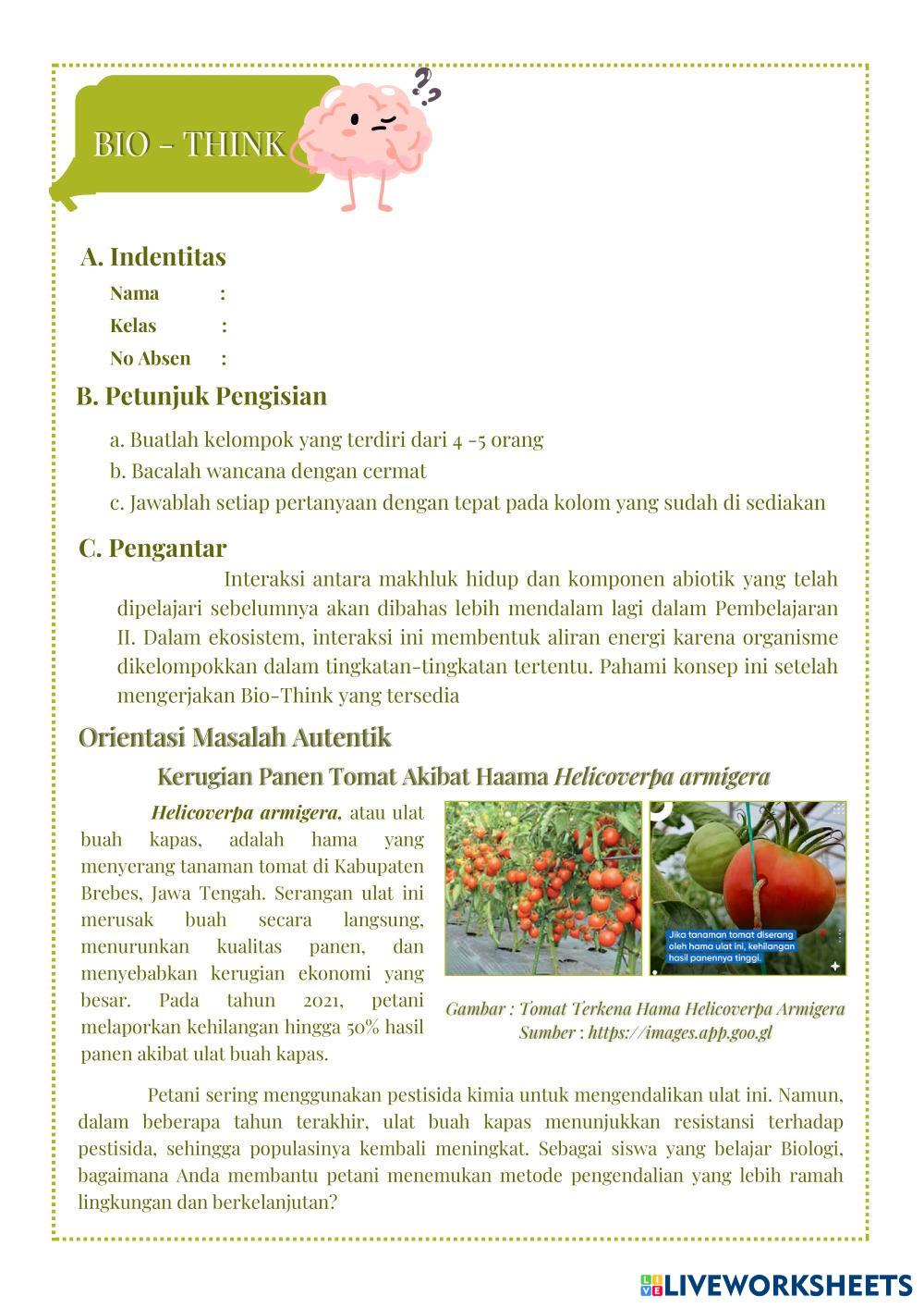 Created byMarsanda Ilmu Pengetahuan Alam (IPA) Aliran Energi dan Piramida Ekologi Age 11+ level: X Indonesian Author's Instructions My Google Classroom Courses × 0 classes selected (0 students total) Quick Access Select all classes (0 classes) All Classes Loading courses... Cancel Share Share to selected Course __COURSE_NAME__ __STUDENT_NAME__ (__STUDENT_EMAIL__) BIO - THINK PERTEMUAN KE 2 Download Worksheet Validation Check my answers Emails my answers to my teacher Full name Group/level School subject Teacher's email or key code Close Submit Validating worksheet... (12) Your answers have been sent to your teacher. Good luck! OK We encountered an error submitting your answers. Please try again. OK Advertisement | Go Ad Free Created byMarsanda Ilmu Pengetahuan Alam (IPA) Aliran Energi dan Piramida Ekologi Age 11+ level: X Indonesian Author's Instructions