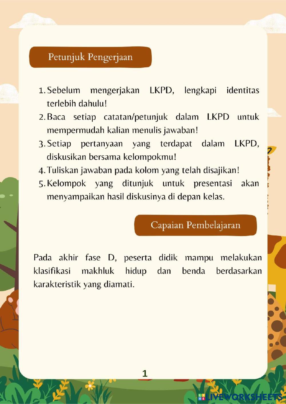 LKPD Materi Pengelompokkan Makhluk Hidup