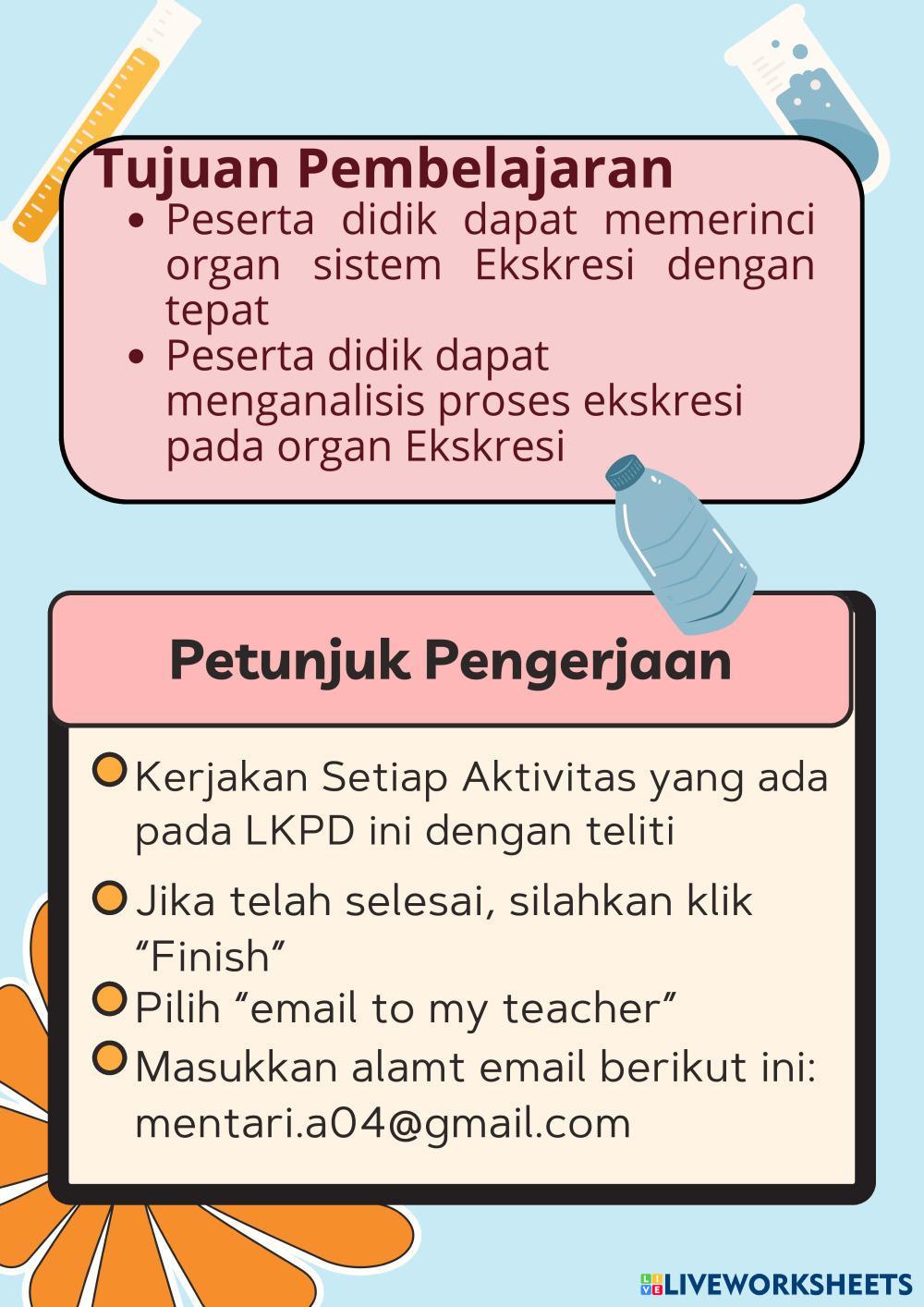 LKP Sistem Ekskresi Manusia berisi mengenai soal-soal yang berkaitan dengan organ pada sistem ekskresi