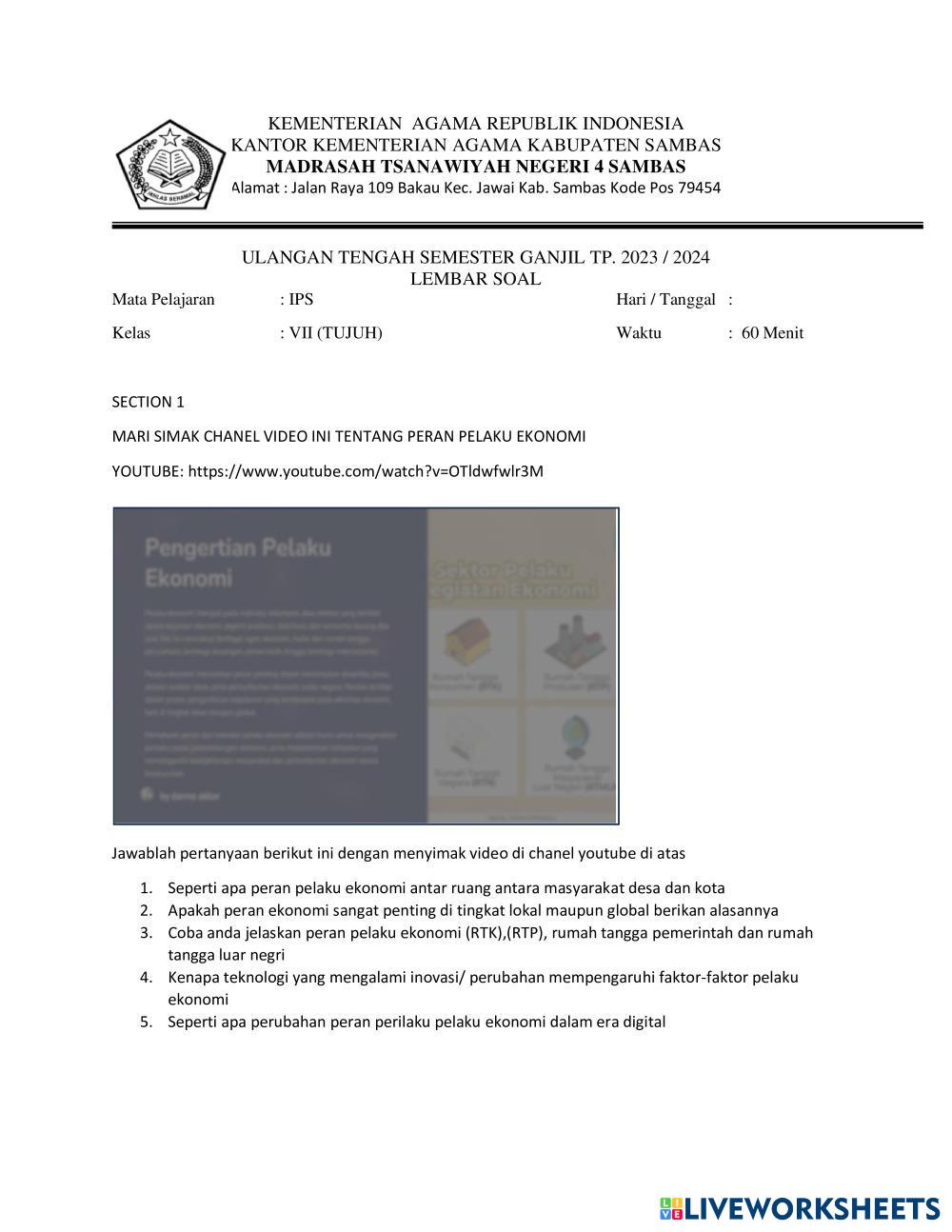 Created byDarma Akbar Ilmu Pengetahuan Sosial (IPS) Peran Pelaku Ekonomi Age 12-17 level: kelas 8 Indonesian Author's Instructions My Google Classroom Courses × 0 classes selected (0 students total) Quick Access Select all classes (0 classes) All Classes Loading courses... Cancel Share Share to selected Course __COURSE_NAME__ __STUDENT_NAME__ (__STUDENT_EMAIL__) LKPD IPS KELAS 8 SEM 2 Download Worksheet Validation Check my answers Emails my answers to my teacher Full name Group/level School subject Teacher's email or key code Close Submit Validating worksheet... (12) Your answers have been sent to your teacher. Good luck! OK We encountered an error submitting your answers. Please try again. OK Advertisement | Go Ad Free Created byDarma Akbar Ilmu Pengetahuan Sosial (IPS) Peran Pelaku Ekonomi Age 12-17 level: kelas 8 Indonesian Author's Instructions