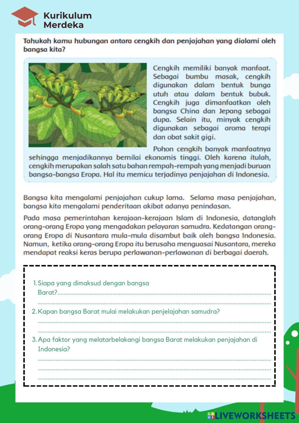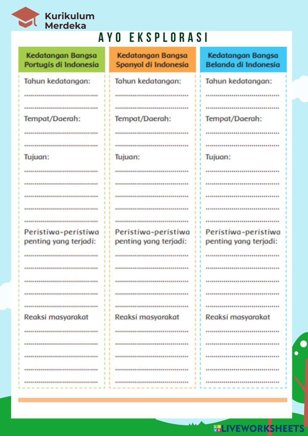 Created byfidyanur Ilmu Pengetahuan Sosial (IPS) Peristiwa kedatangan bangsa barat Age 9-15 level: Kelas 5 Indonesian Author's Instructions My Google Classroom Courses × 0 classes selected (0 students total) Quick Access Select all classes (0 classes) All Classes Loading courses... Cancel Share Share to selected Course __COURSE_NAME__ __STUDENT_NAME__ (__STUDENT_EMAIL__) LKPD Peristiwa datanghya bangsa barat Download Worksheet Validation Check my answers Emails my answers to my teacher Full name Group/level School subject Teacher's email or key code Close Submit Validating worksheet... (12) Your answers have been sent to your teacher. Good luck! OK We encountered an error submitting your answers. Please try again. OK Advertisement | Go Ad Free Created byfidyanur Ilmu Pengetahuan Sosial (IPS) Peristiwa kedatangan bangsa barat Age 9-15 level: Kelas 5 Indonesian Author's Instructions