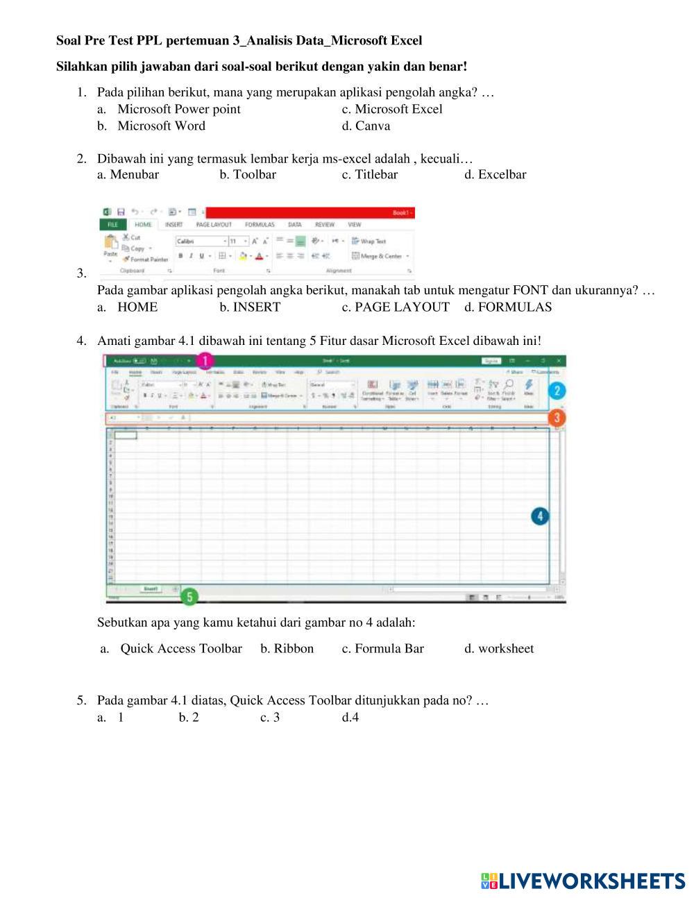 Soal-soal pre test analsis data microsoft excel PPL 3 aksi 1
