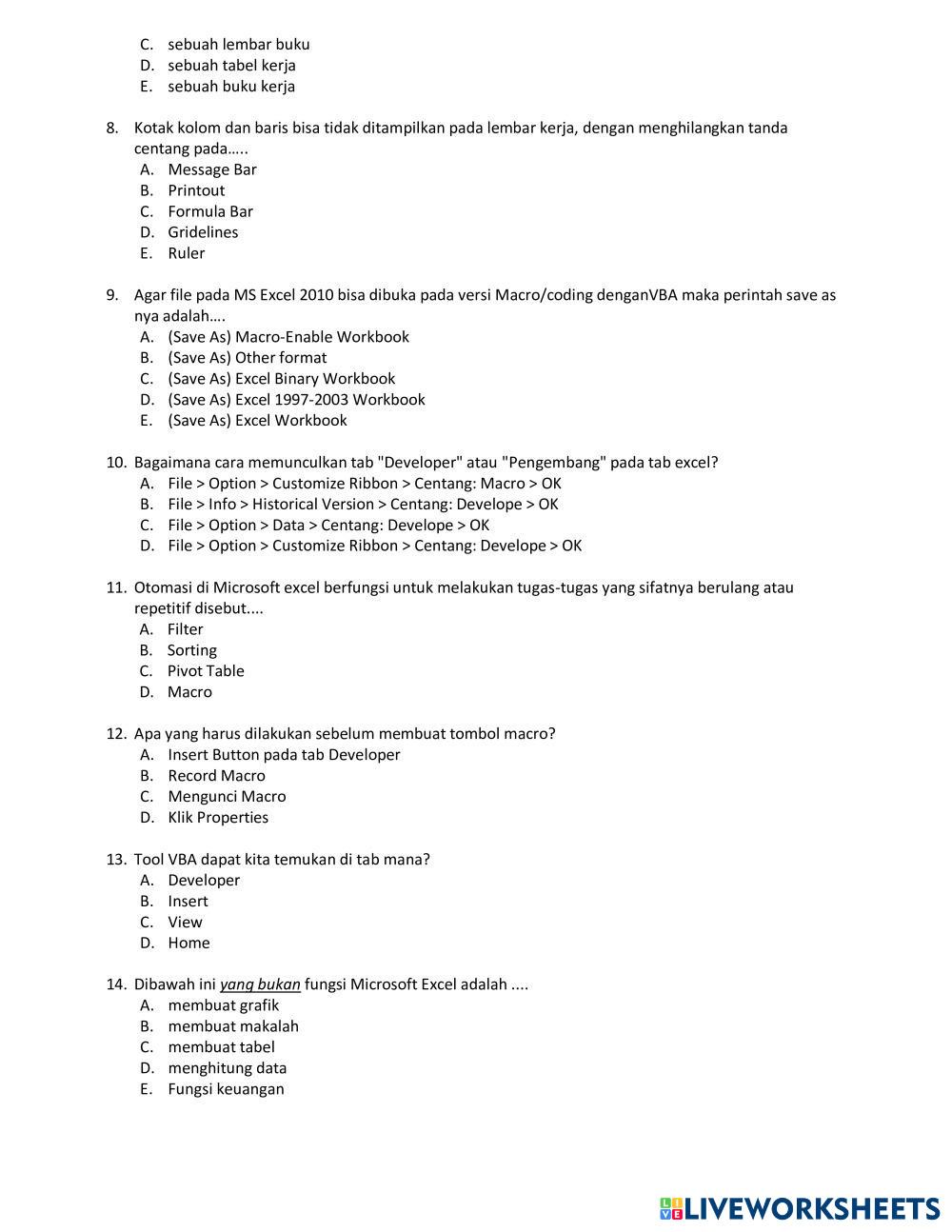 Created byChristin Informatika Berpikir Komputasional Age 15+ level: XI Indonesian Author's Instructions My Google Classroom Courses × 0 classes selected (0 students total) Quick Access Select all classes (0 classes) All Classes Loading courses... Cancel Share Share to selected Course __COURSE_NAME__ __STUDENT_NAME__ (__STUDENT_EMAIL__) Christin Y Download Worksheet Validation Check my answers Emails my answers to my teacher Full name Group/level School subject Teacher's email or key code Close Submit Validating worksheet... (12) Your answers have been sent to your teacher. Good luck! OK We encountered an error submitting your answers. Please try again. OK Advertisement | Go Ad Free Created byChristin Informatika Berpikir Komputasional Age 15+ level: XI Indonesian Author's Instructions