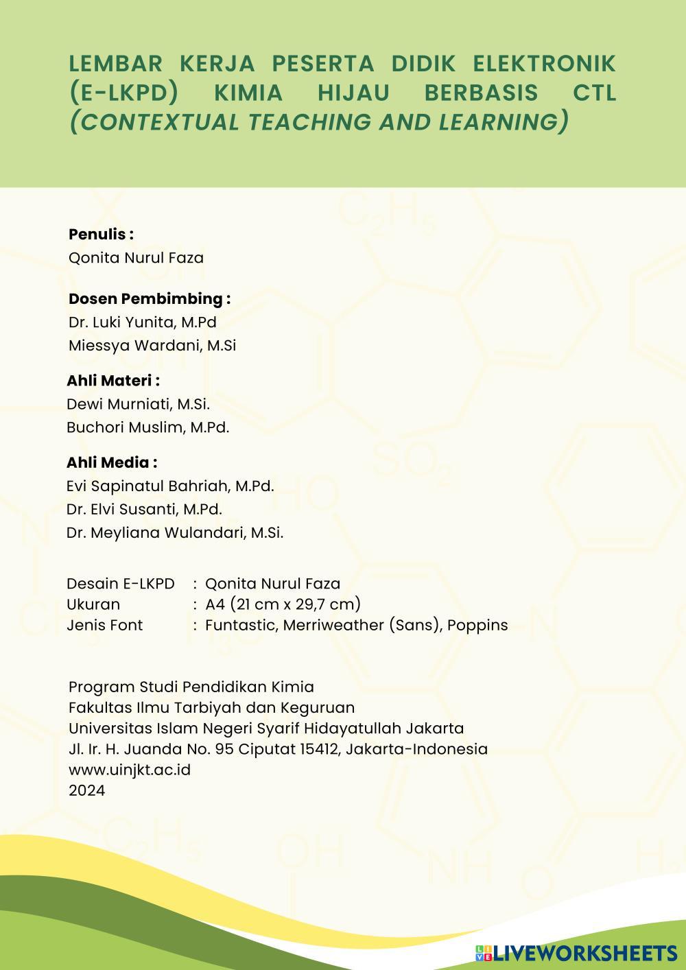 Created byQonita Nurul Faza Kimia SMA Kimia hijau Age 17+ level: 1 Indonesian Author's Instructions My Google Classroom Courses × 0 classes selected (0 students total) Quick Access Select all classes (0 classes) All Classes Loading courses... Cancel Share Share to selected Course __COURSE_NAME__ __STUDENT_NAME__ (__STUDENT_EMAIL__) Kimia Hijau Download Worksheet Validation Check my answers Emails my answers to my teacher Full name Group/level School subject Teacher's email or key code Close Submit Validating worksheet... (12) Your answers have been sent to your teacher. Good luck! OK We encountered an error submitting your answers. Please try again. OK Advertisement | Go Ad Free Created byQonita Nurul Faza Kimia SMA Kimia hijau Age 17+ level: 1 Indonesian Author's Instructions