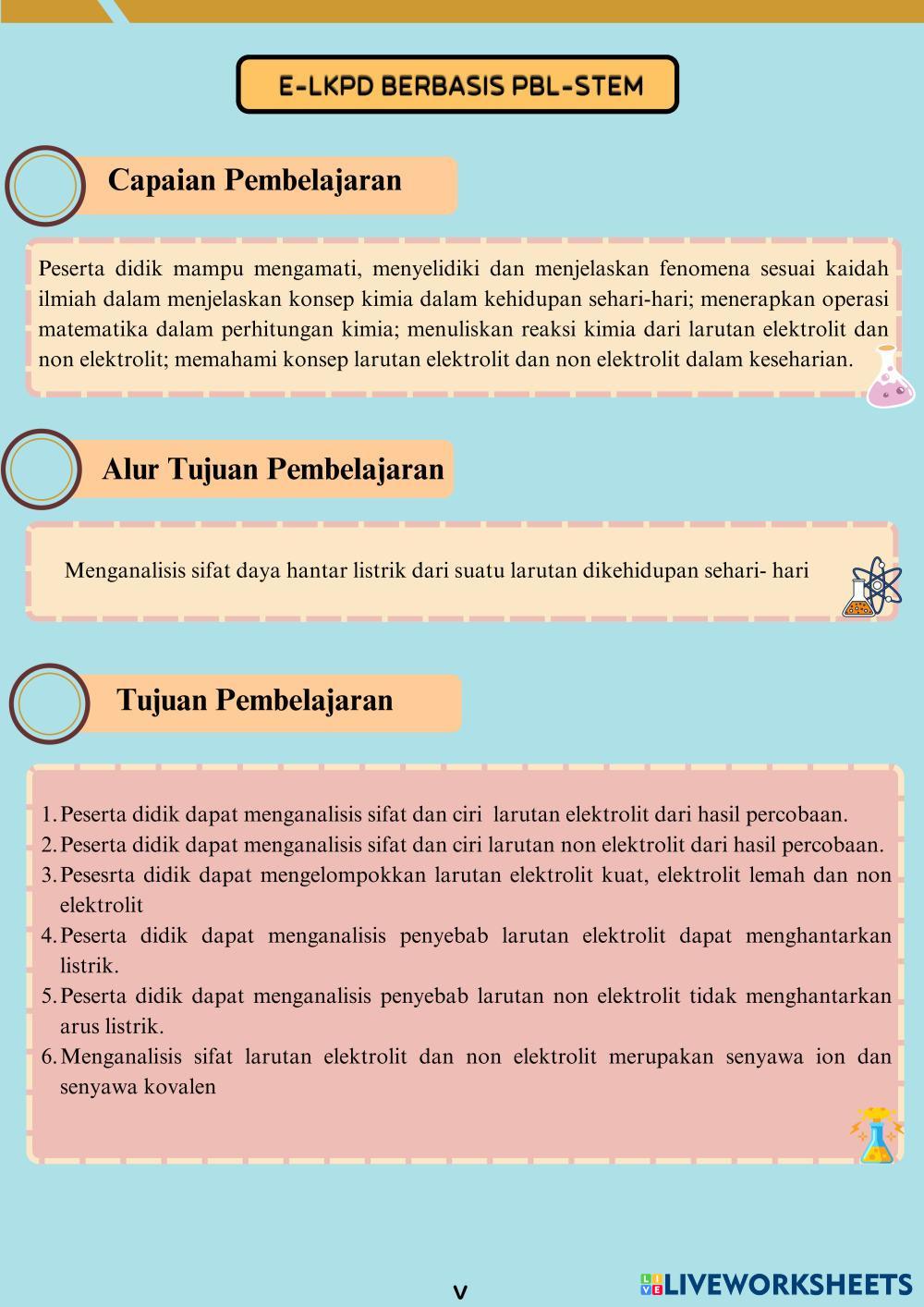 Created byRamiaaaa KIMIA Larutan Elektrolit dan Non Elektrolit Age 15+ level: X Fase E2 Indonesian Author's Instructions My Google Classroom Courses × 0 classes selected (0 students total) Quick Access Select all classes (0 classes) All Classes Loading courses... Cancel Share Share to selected Course __COURSE_NAME__ __STUDENT_NAME__ (__STUDENT_EMAIL__) Larutan elektrolit dan non elektrolit Download Worksheet Validation Check my answers Emails my answers to my teacher Full name Group/level School subject Teacher's email or key code Close Submit Validating worksheet... (12) Your answers have been sent to your teacher. Good luck! OK We encountered an error submitting your answers. Please try again. OK Advertisement | Go Ad Free Created byRamiaaaa KIMIA Larutan Elektrolit dan Non Elektrolit Age 15+ level: X Fase E2 Indonesian Author's Instructions