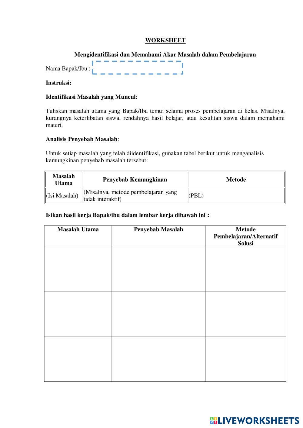 Created byAnika Purwantiningsih Kuesioner Pembelajaran Age 16+ level: Mudah Indonesian Author's Instructions My Google Classroom Courses × 0 classes selected (0 students total) Quick Access Select all classes (0 classes) All Classes Loading courses... Cancel Share Share to selected Course __COURSE_NAME__ __STUDENT_NAME__ (__STUDENT_EMAIL__) Instrumen SMK Download Worksheet Validation Check my answers Emails my answers to my teacher Full name Group/level School subject Teacher's email or key code Close Submit Validating worksheet... (12) Your answers have been sent to your teacher. Good luck! OK We encountered an error submitting your answers. Please try again. OK Advertisement | Go Ad Free Created byAnika Purwantiningsih Kuesioner Pembelajaran Age 16+ level: Mudah Indonesian Author's Instructions