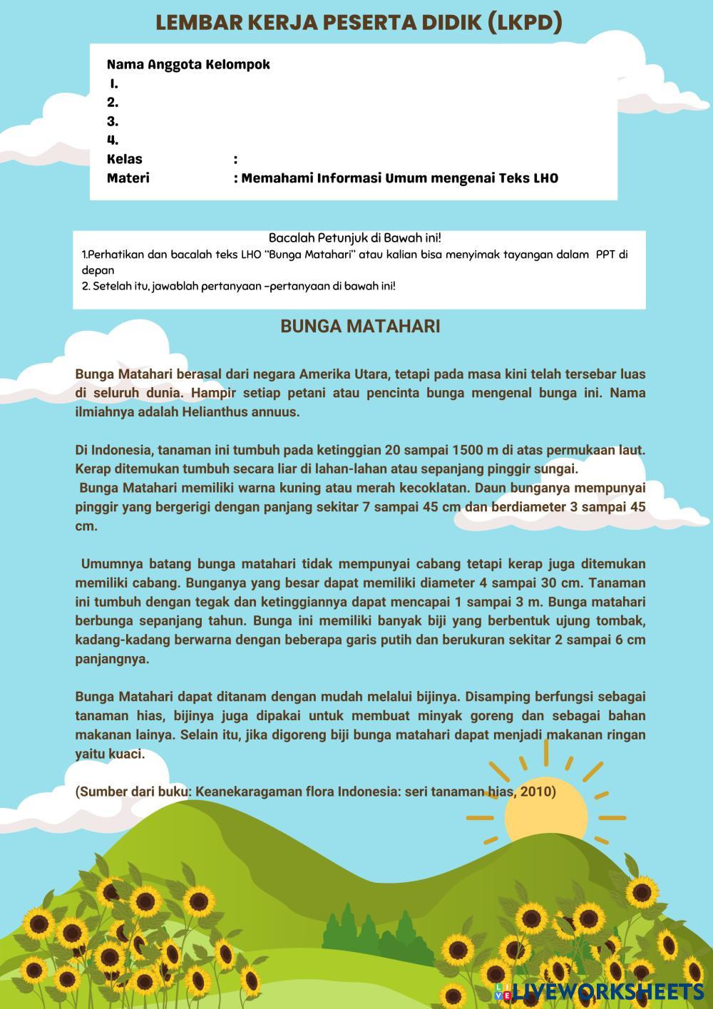 - Lembar Kerja Peserta Didik "Memahami Informasi Umum dalam Teks Laporan Hasil Observasi"