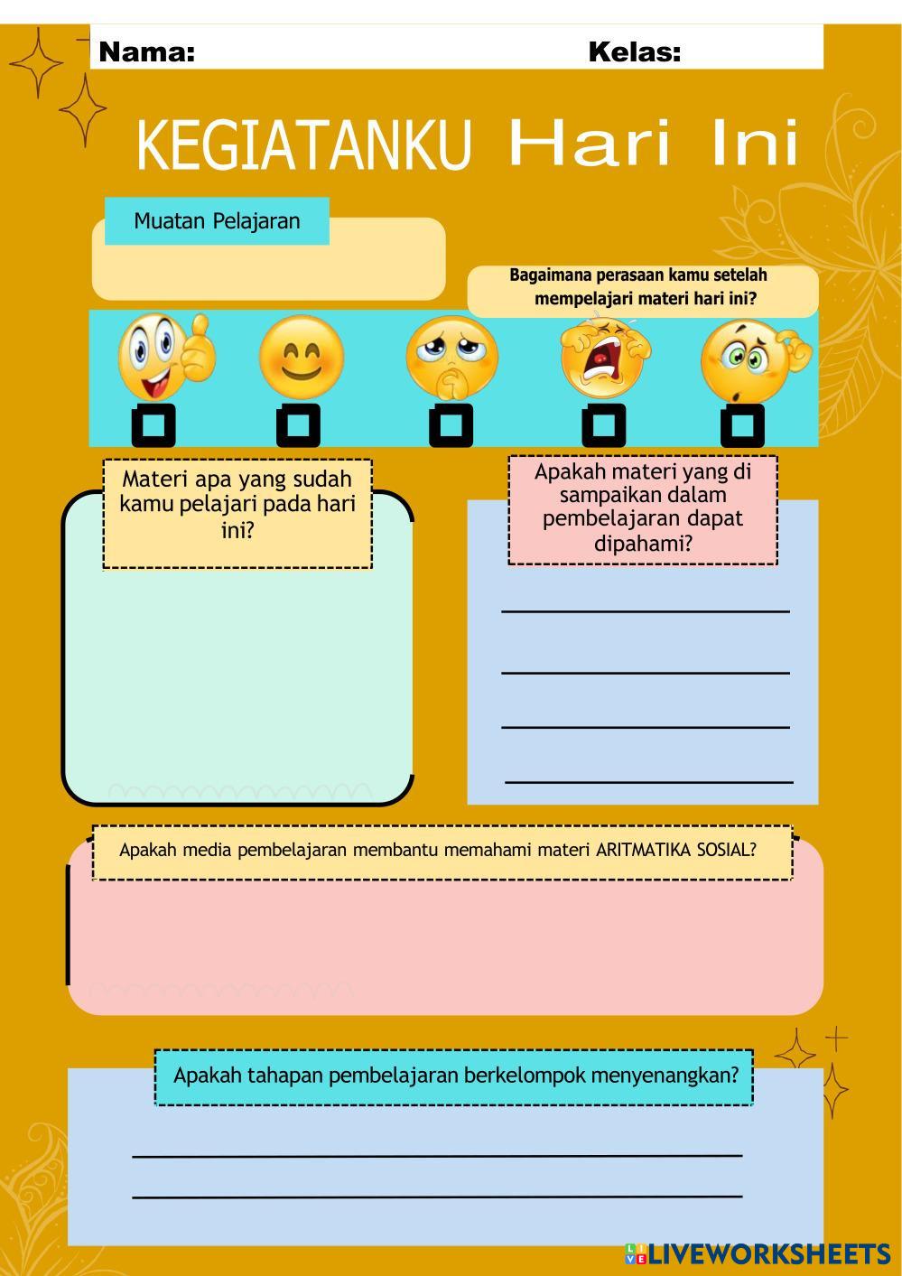 Created byneli nopitasanti Lembar refleksi Matematika Age 13-17 level: smp Indonesian Author's Instructions My Google Classroom Courses × 0 classes selected (0 students total) Quick Access Select all classes (0 classes) All Classes Loading courses... Cancel Share Share to selected Course __COURSE_NAME__ __STUDENT_NAME__ (__STUDENT_EMAIL__) Refleksi Peserta didik Download Worksheet Validation Check my answers Emails my answers to my teacher Full name Group/level School subject Teacher's email or key code Close Submit Validating worksheet... (12) Your answers have been sent to your teacher. Good luck! OK We encountered an error submitting your answers. Please try again. OK Advertisement | Go Ad Free Created byneli nopitasanti Lembar refleksi Matematika Age 13-17 level: smp Indonesian Author's Instructions