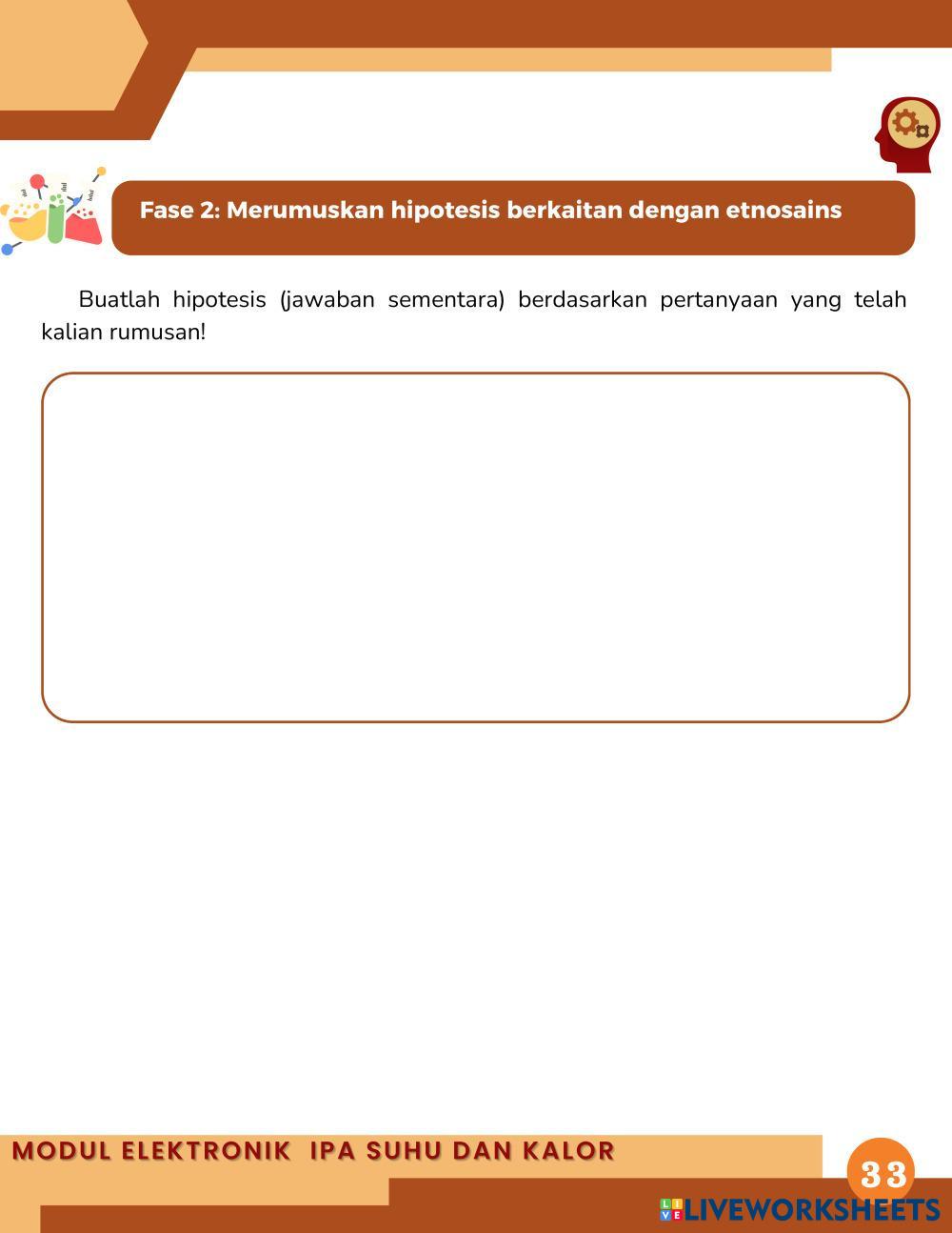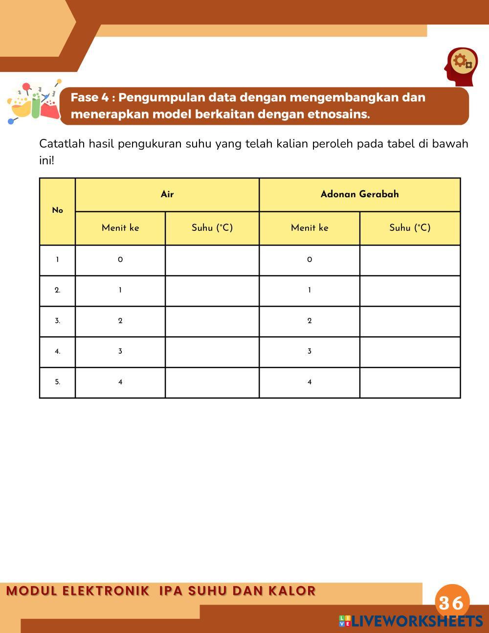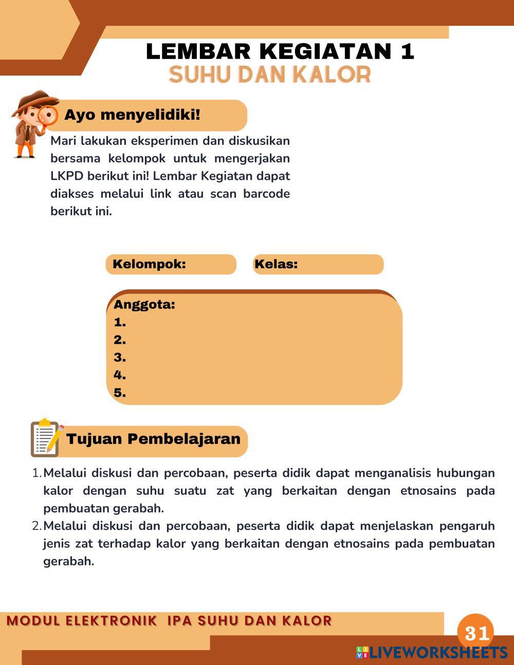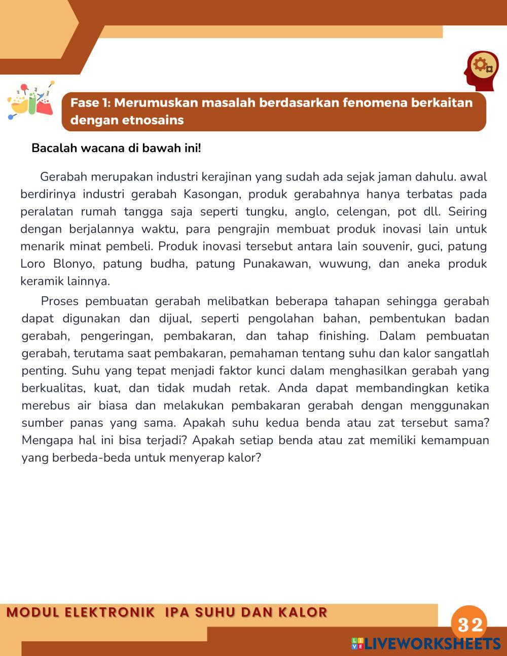 1. Melalui diskusi dan percobaan, peserta didik dapat menganalisis hubungan kalor dengan suhu suatu zat yang berkaitan dengan etnosains pada pembuatan gerabah.