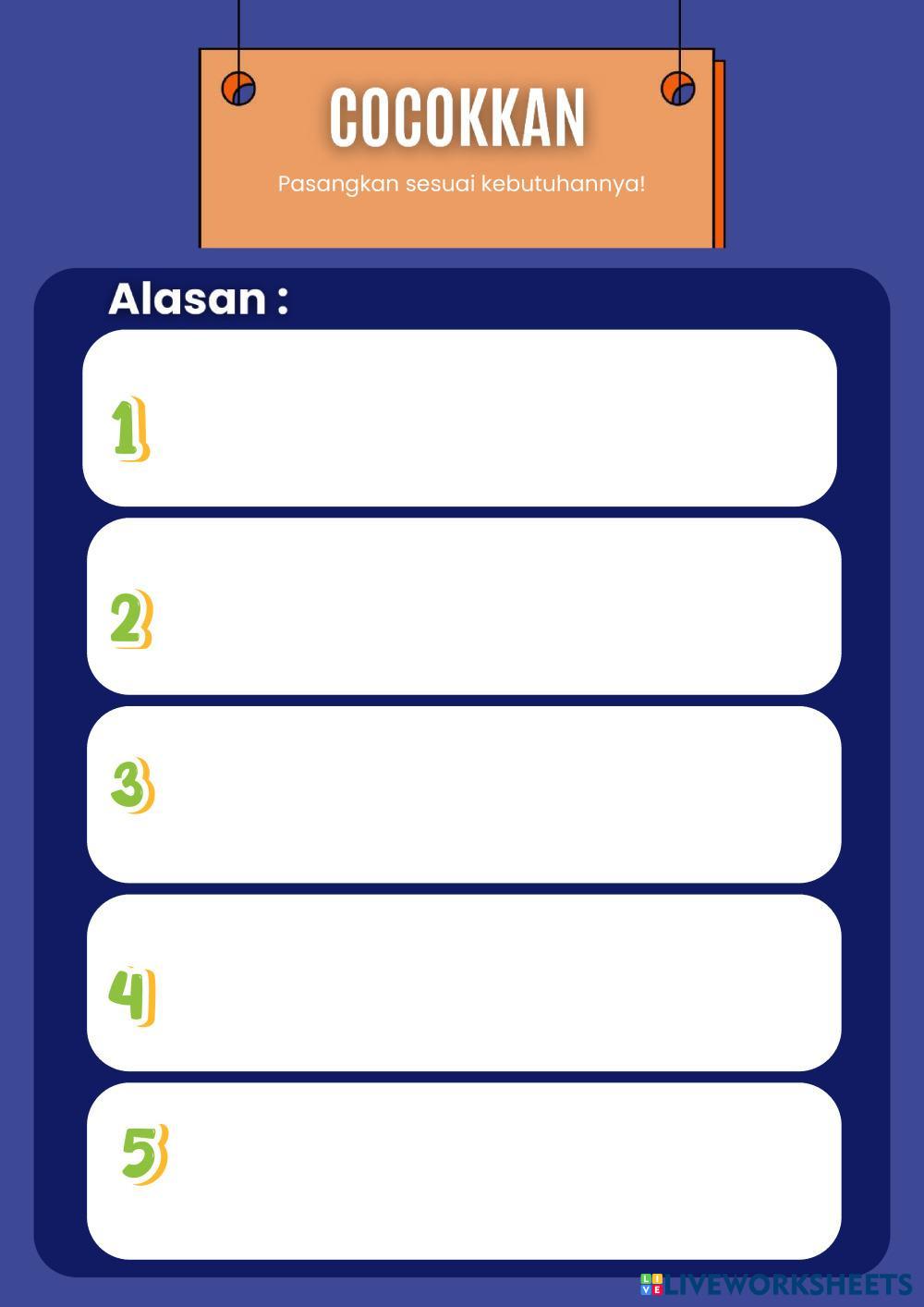 Created bysiti fauzia malihat LKPD IPAS aku dan kebutuhanku kelas 4 LKPD aku dan kebutuhanku kelas 4 Age 8-15 level: kelas 4 SD Indonesian Author's Instructions My Google Classroom Courses × 0 classes selected (0 students total) Quick Access Select all classes (0 classes) All Classes Loading courses... Cancel Share Share to selected Course __COURSE_NAME__ __STUDENT_NAME__ (__STUDENT_EMAIL__) LKPD aku dan kebutuhanku kelas 4 SD Download Worksheet Validation Check my answers Emails my answers to my teacher Full name Group/level School subject Teacher's email or key code Close Submit Validating worksheet... (12) Your answers have been sent to your teacher. Good luck! OK We encountered an error submitting your answers. Please try again. OK Advertisement | Go Ad Free Created bysiti fauzia malihat LKPD IPAS aku dan kebutuhanku kelas 4 LKPD aku dan kebutuhanku kelas 4 Age 8-15 level: kelas 4 SD Indonesian Author's Instructions