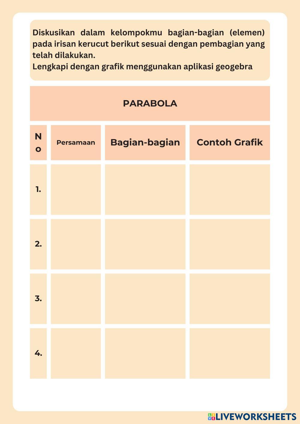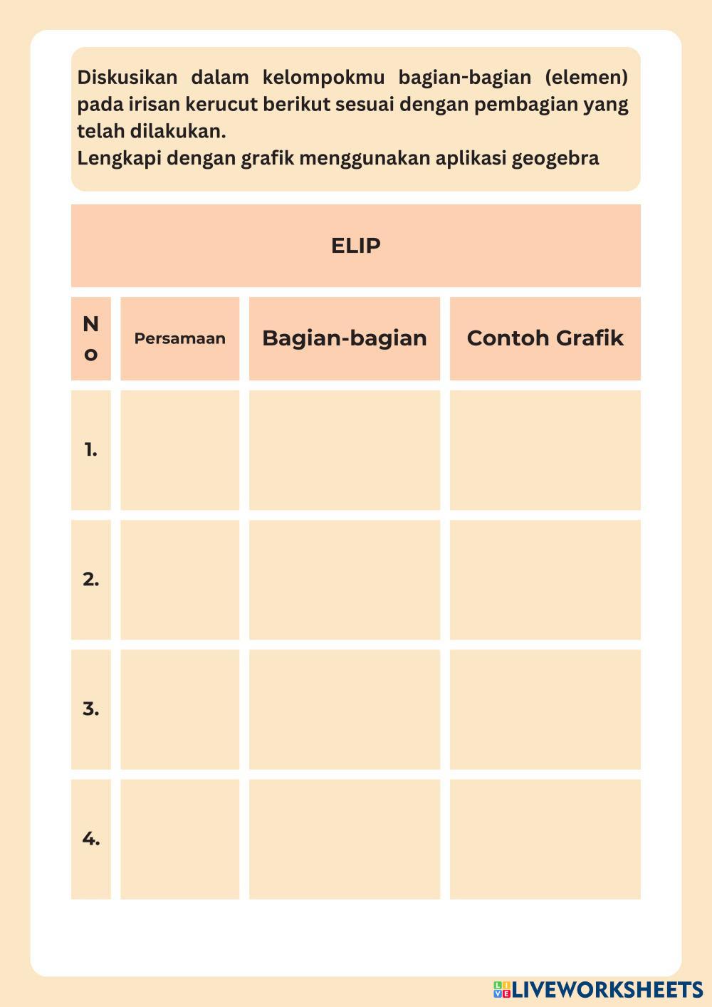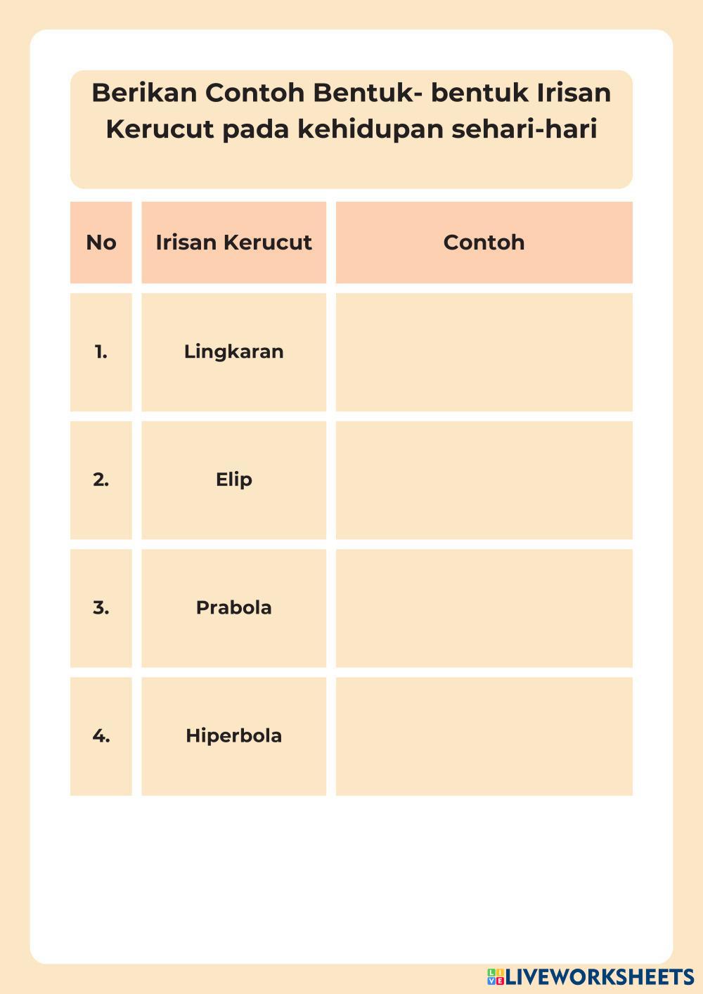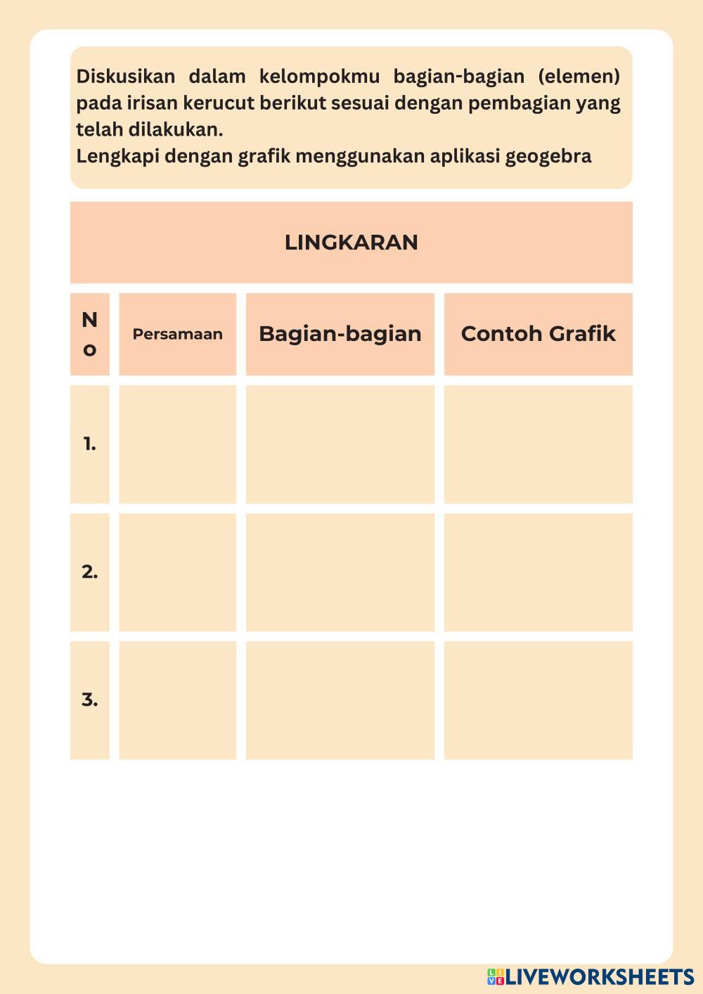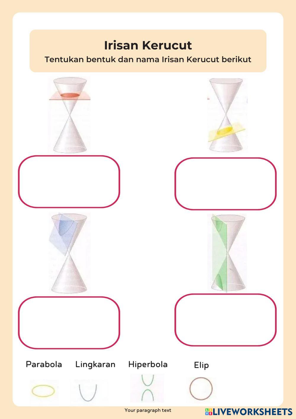 Created byrifandiya Matematika Peminatan Persamaan Lingkaran Age 16+ level: LOW, MEDIUM Indonesian Author's Instructions My Google Classroom Courses × 0 classes selected (0 students total) Quick Access Select all classes (0 classes) All Classes Loading courses... Cancel Share Share to selected Course __COURSE_NAME__ __STUDENT_NAME__ (__STUDENT_EMAIL__) Irisan Kerucut Download Worksheet Validation Check my answers Emails my answers to my teacher Full name Group/level School subject Teacher's email or key code Close Submit Validating worksheet... (12) Your answers have been sent to your teacher. Good luck! OK We encountered an error submitting your answers. Please try again. OK Advertisement | Go Ad Free Created byrifandiya Matematika Peminatan Persamaan Lingkaran Age 16+ level: LOW, MEDIUM Indonesian Author's Instructions