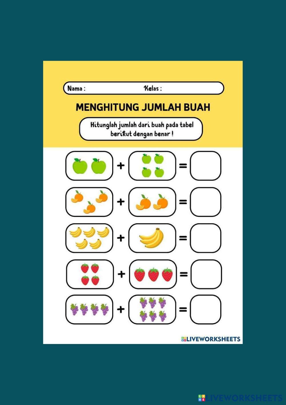 Created byWilda Asry Matematika Penjumlahan Kelas 1 Matematika Penjumlahan Kelas 1 Age 6-12 level: 1 Indonesian Author's Instructions My Google Classroom Courses × 0 classes selected (0 students total) Quick Access Select all classes (0 classes) All Classes Loading courses... Cancel Share Share to selected Course __COURSE_NAME__ __STUDENT_NAME__ (__STUDENT_EMAIL__) Wilda asry Download Worksheet Validation Check my answers Emails my answers to my teacher Full name Group/level School subject Teacher's email or key code Close Submit Validating worksheet... (12) Your answers have been sent to your teacher. Good luck! OK We encountered an error submitting your answers. Please try again. OK Advertisement | Go Ad Free Created byWilda Asry Matematika Penjumlahan Kelas 1 Matematika Penjumlahan Kelas 1 Age 6-12 level: 1 Indonesian Author's Instructions