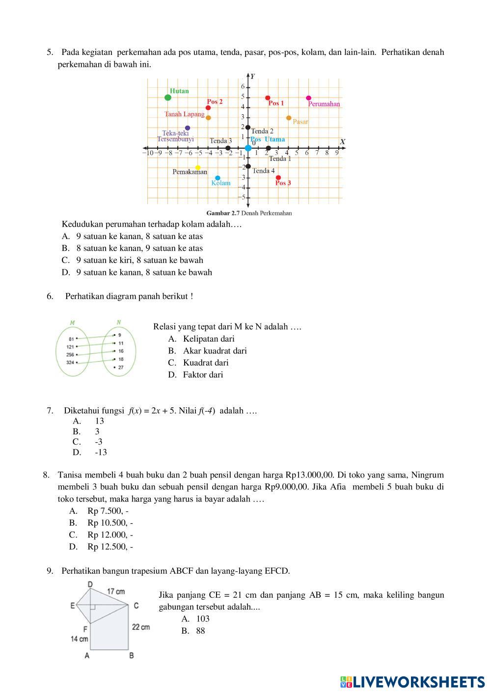 Created byIis Avriyanti Matematika Try Out Math Age 12-18 level: 9 Indonesian Author's Instructions My Google Classroom Courses × 0 classes selected (0 students total) Quick Access Select all classes (0 classes) All Classes Loading courses... Cancel Share Share to selected Course __COURSE_NAME__ __STUDENT_NAME__ (__STUDENT_EMAIL__) TRY OUT MATEMATIKA KELAS 9 SMPIT PERMATA SURABAYA Download Worksheet Validation Check my answers Emails my answers to my teacher Full name Group/level School subject Teacher's email or key code Close Submit Validating worksheet... (12) Your answers have been sent to your teacher. Good luck! OK We encountered an error submitting your answers. Please try again. OK Advertisement | Go Ad Free Created byIis Avriyanti Matematika Try Out Math Age 12-18 level: 9 Indonesian Author's Instructions